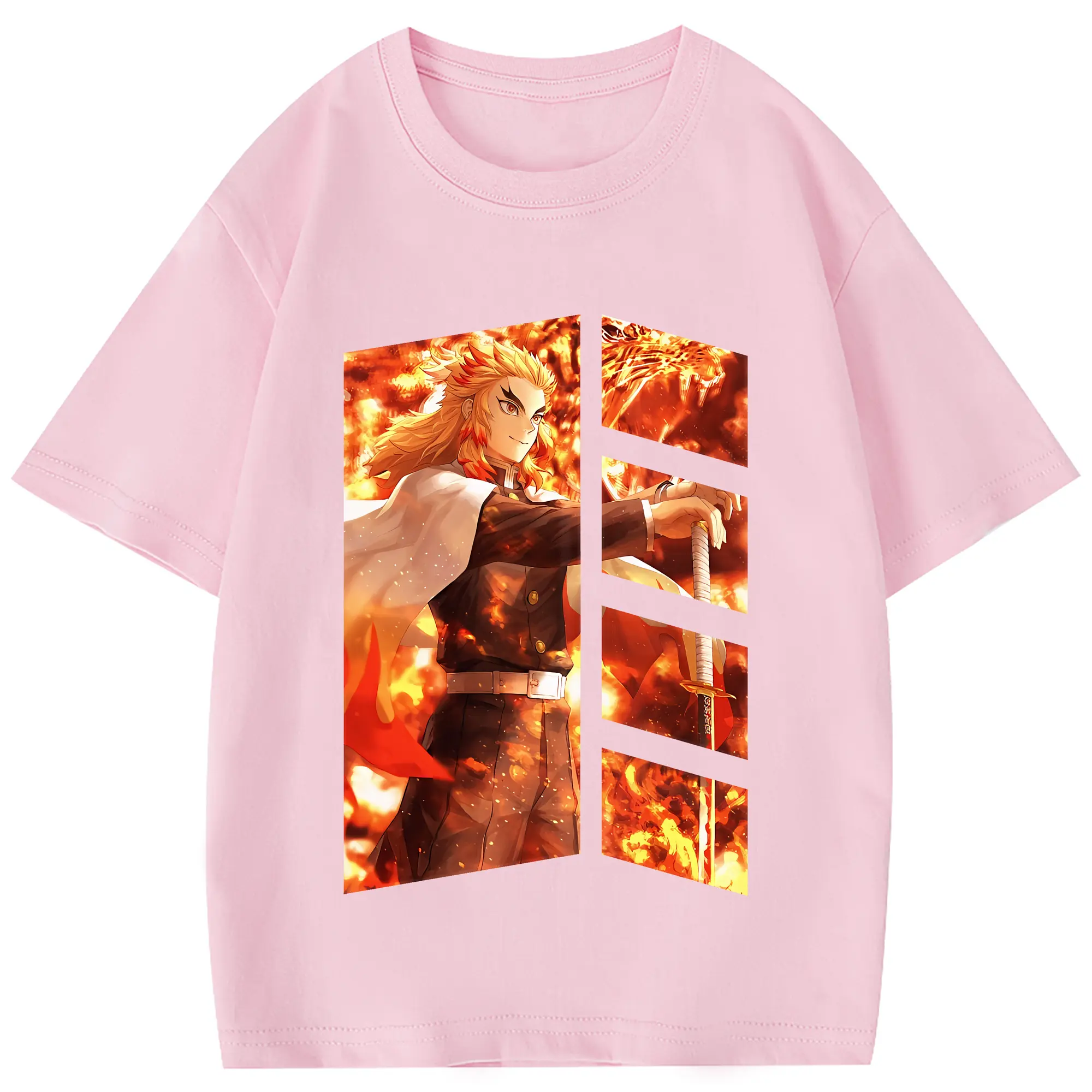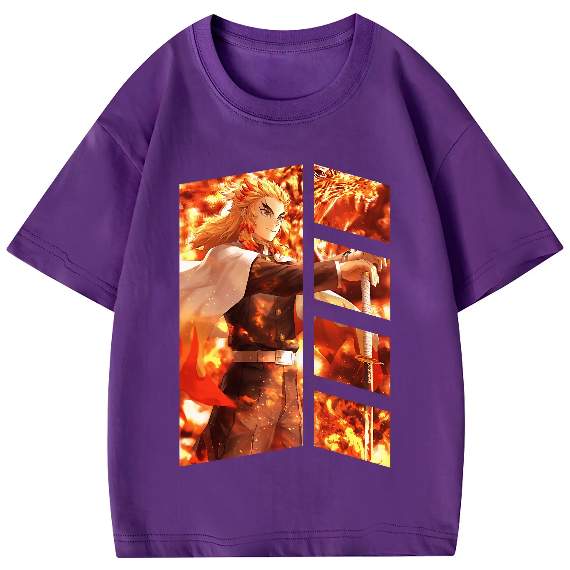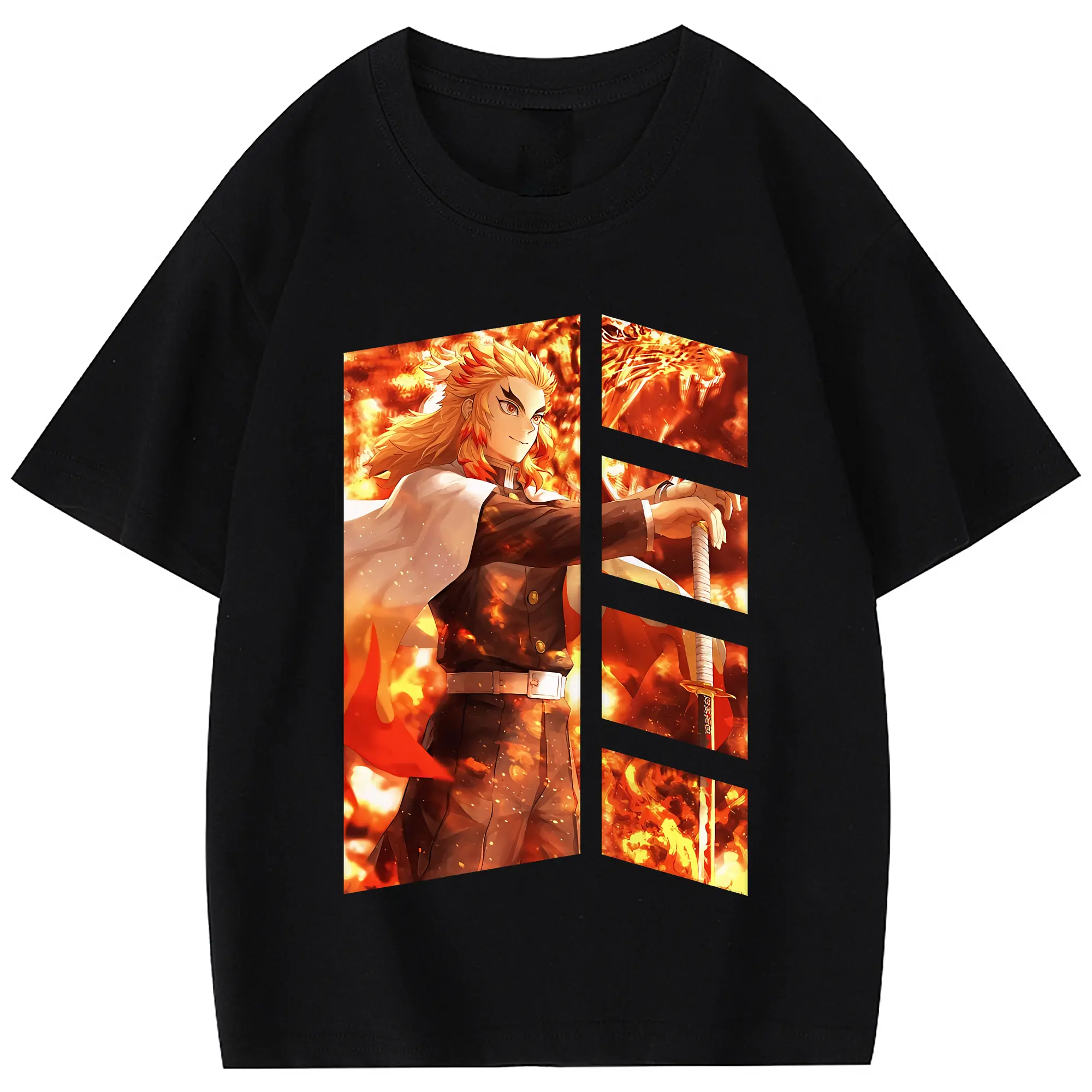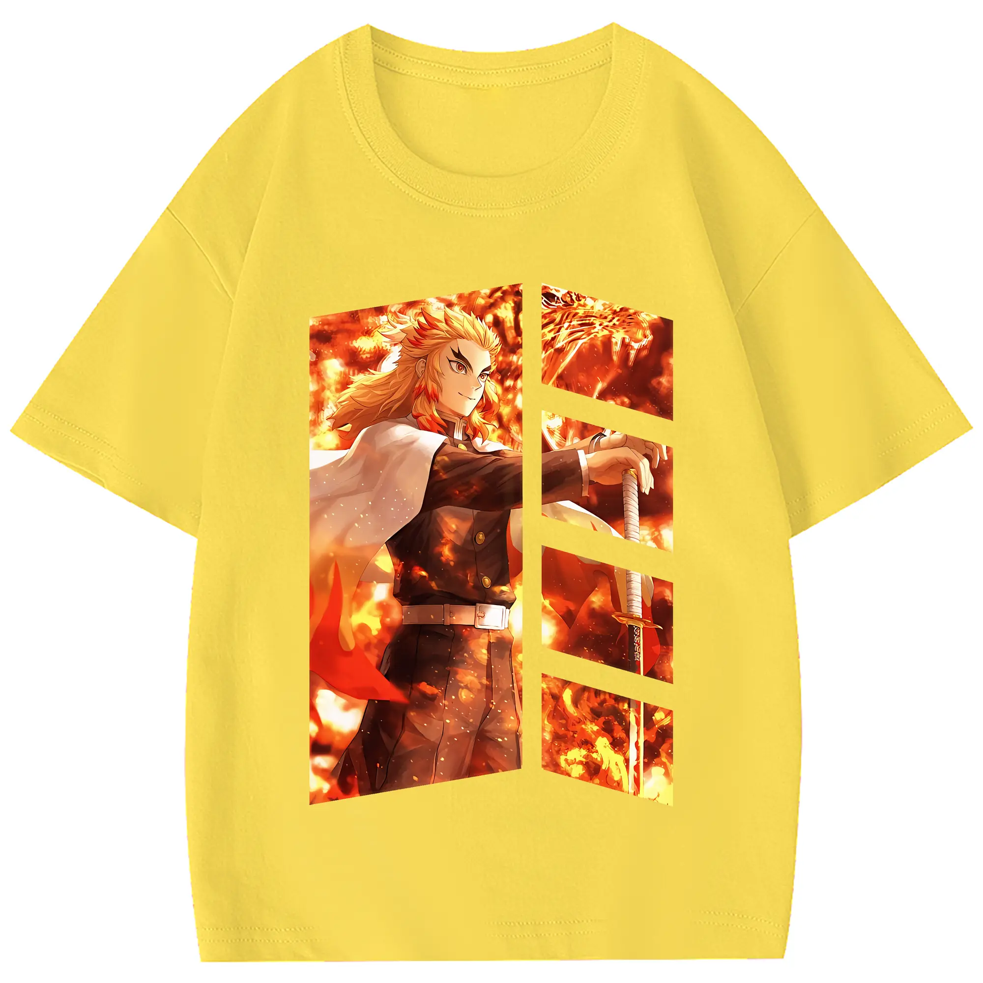 鬼滅の刃 グッズ,煉獄 杏寿郎 - 綿100% 半袖Tシャツ ・ フロントプリント ・ 快適 通気性 ・ 日常使い 散歩 スポーツ用