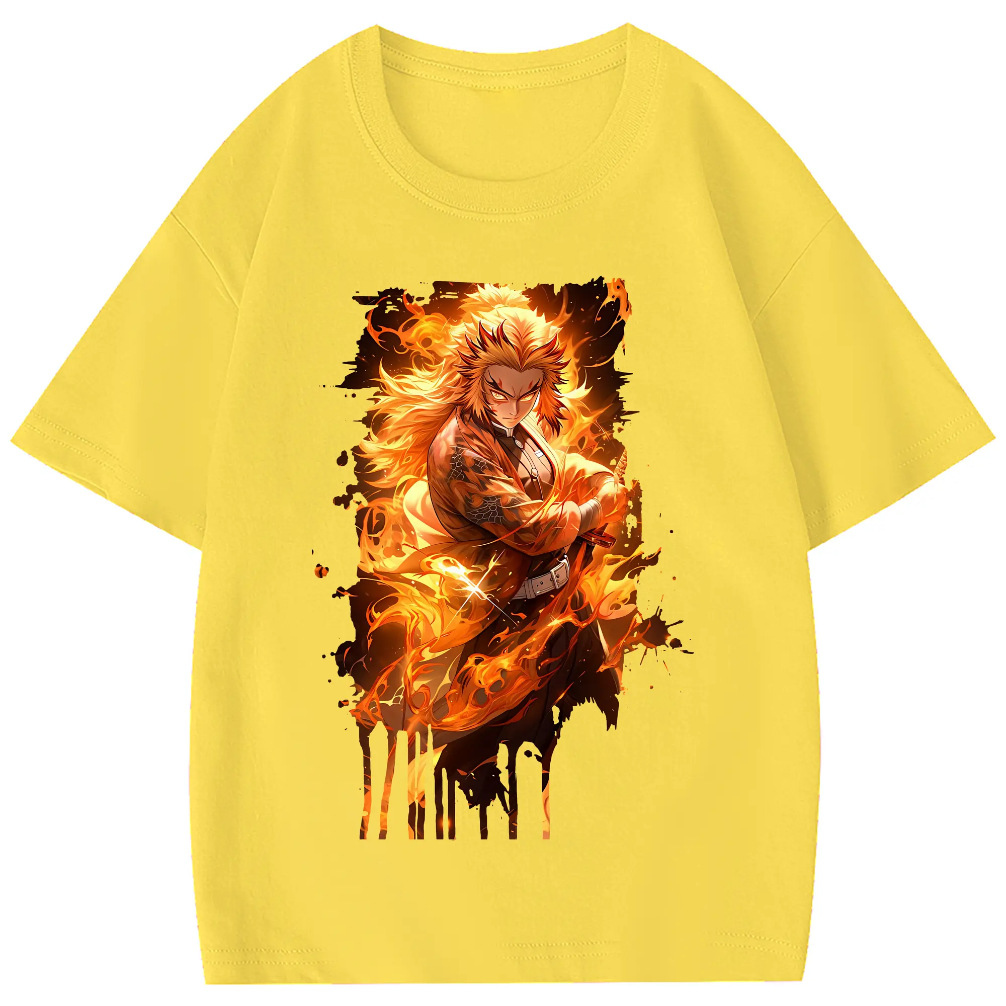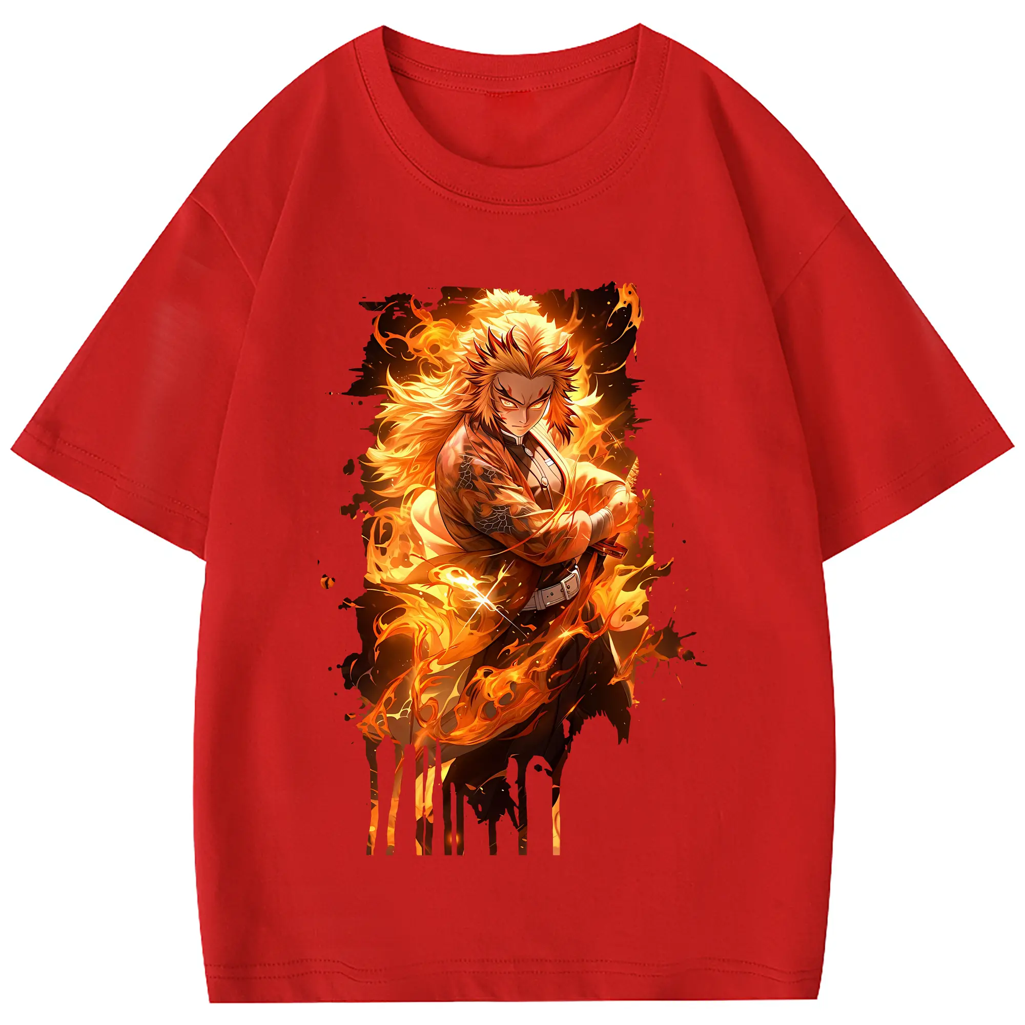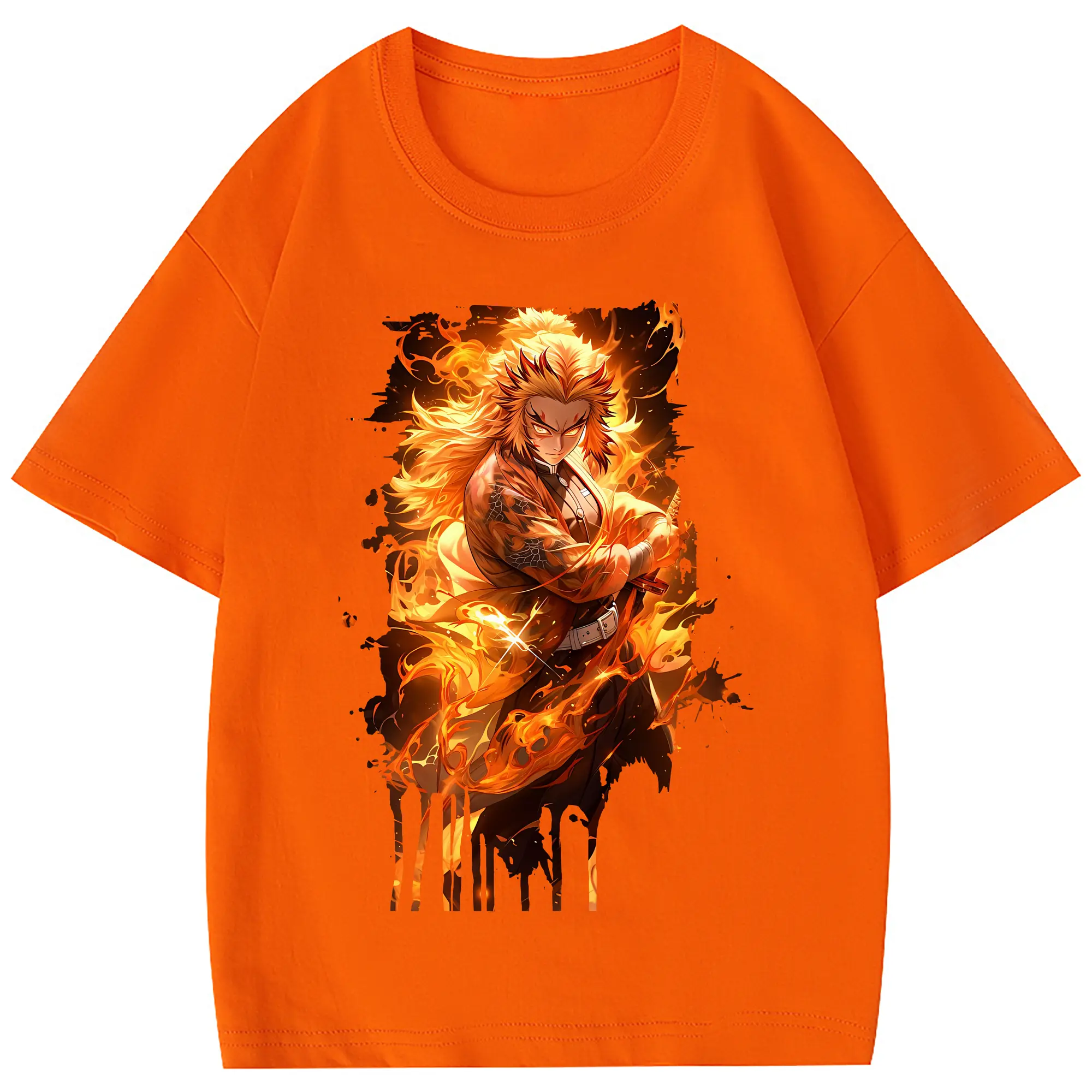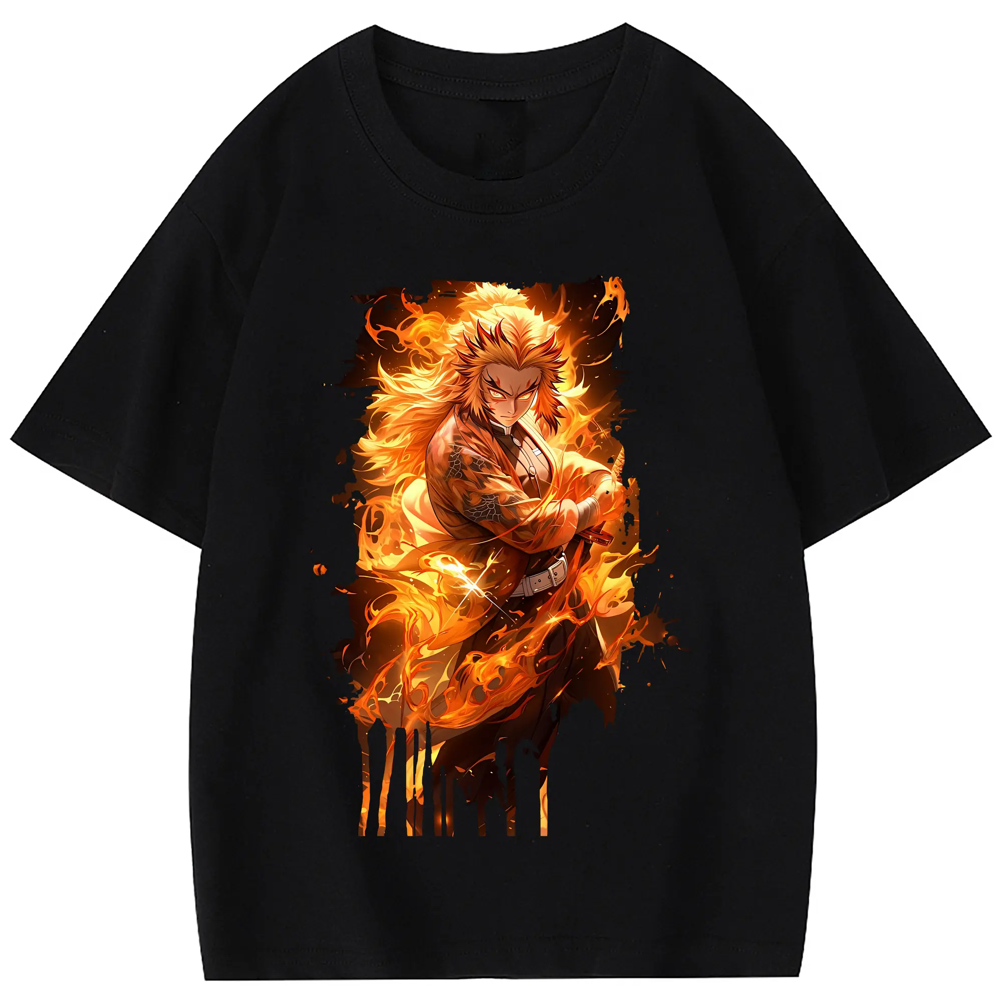 鬼滅の刃 グッズ,煉獄 杏寿郎 - 綿100% 半袖Tシャツ ・ フロントプリント ・ 快適 通気性 ・ 日常使い 散歩 スポーツ用