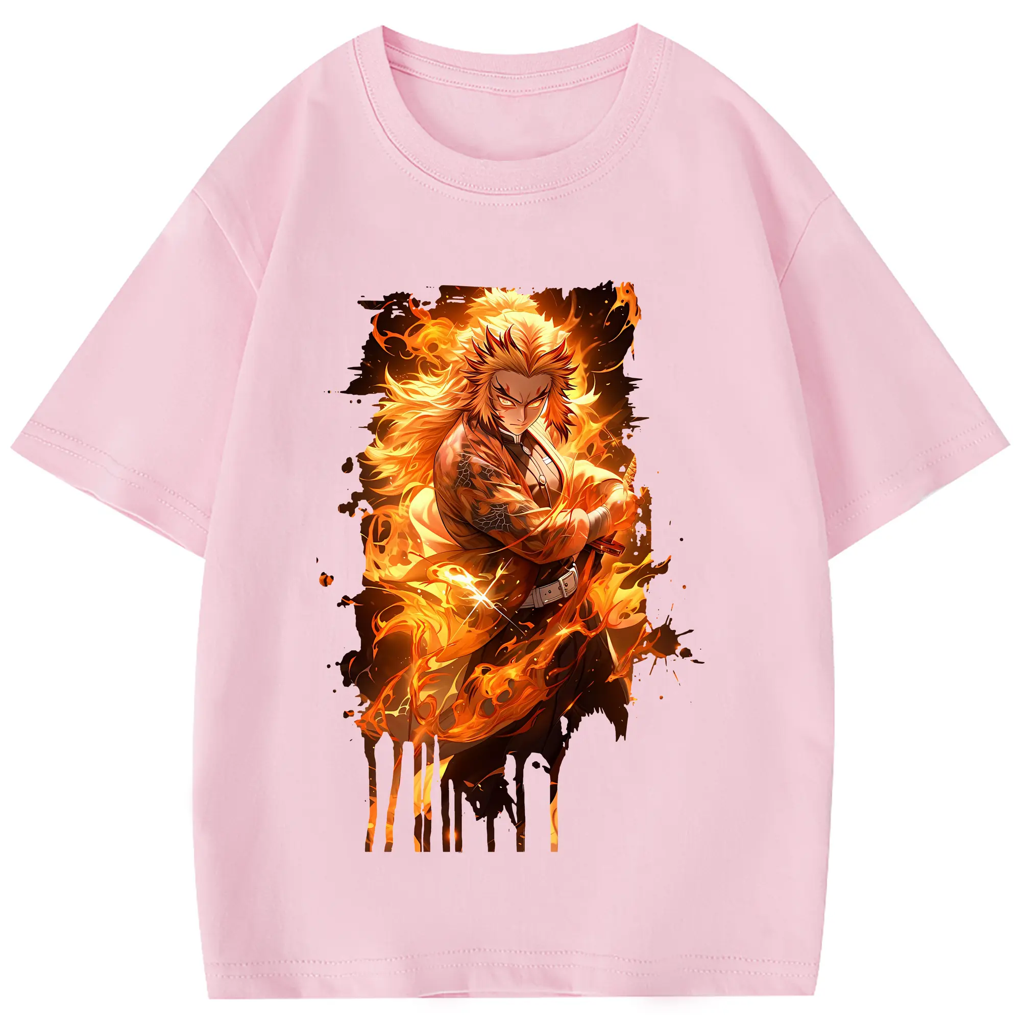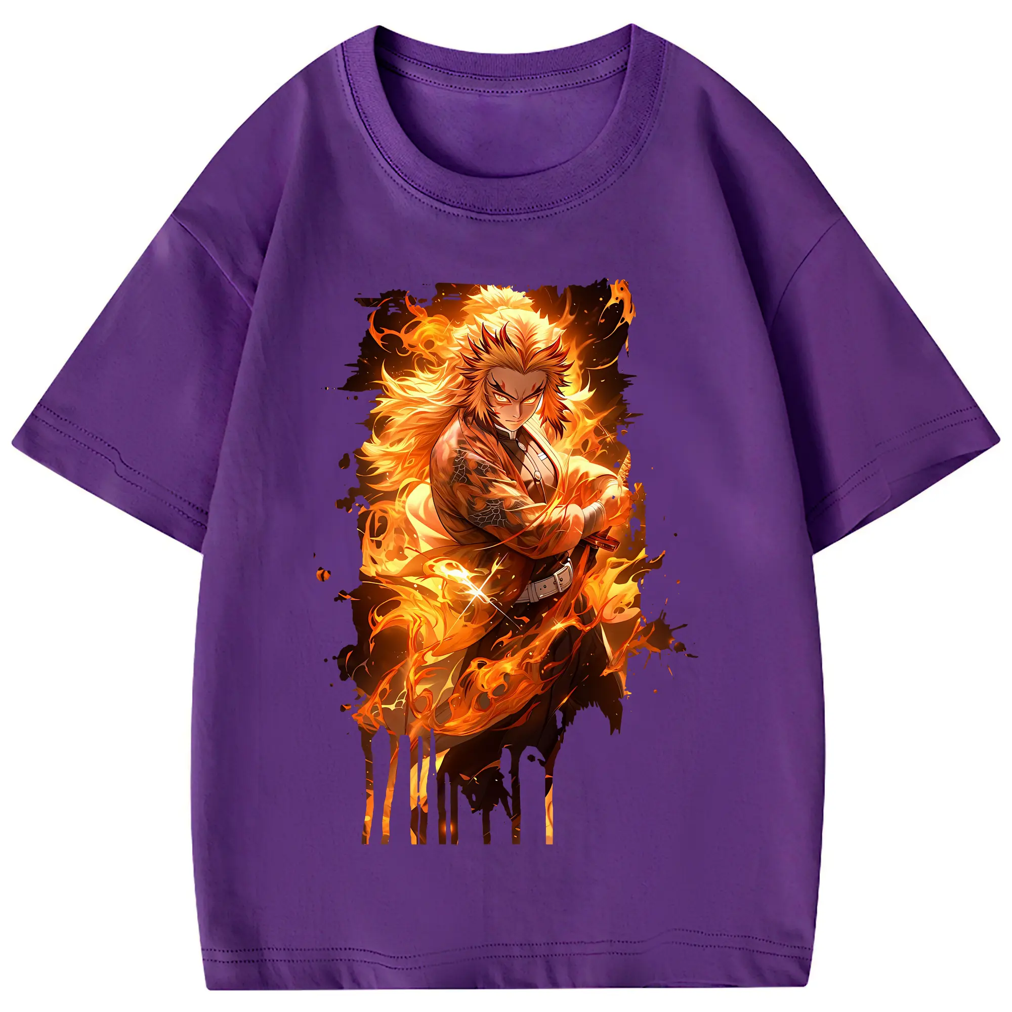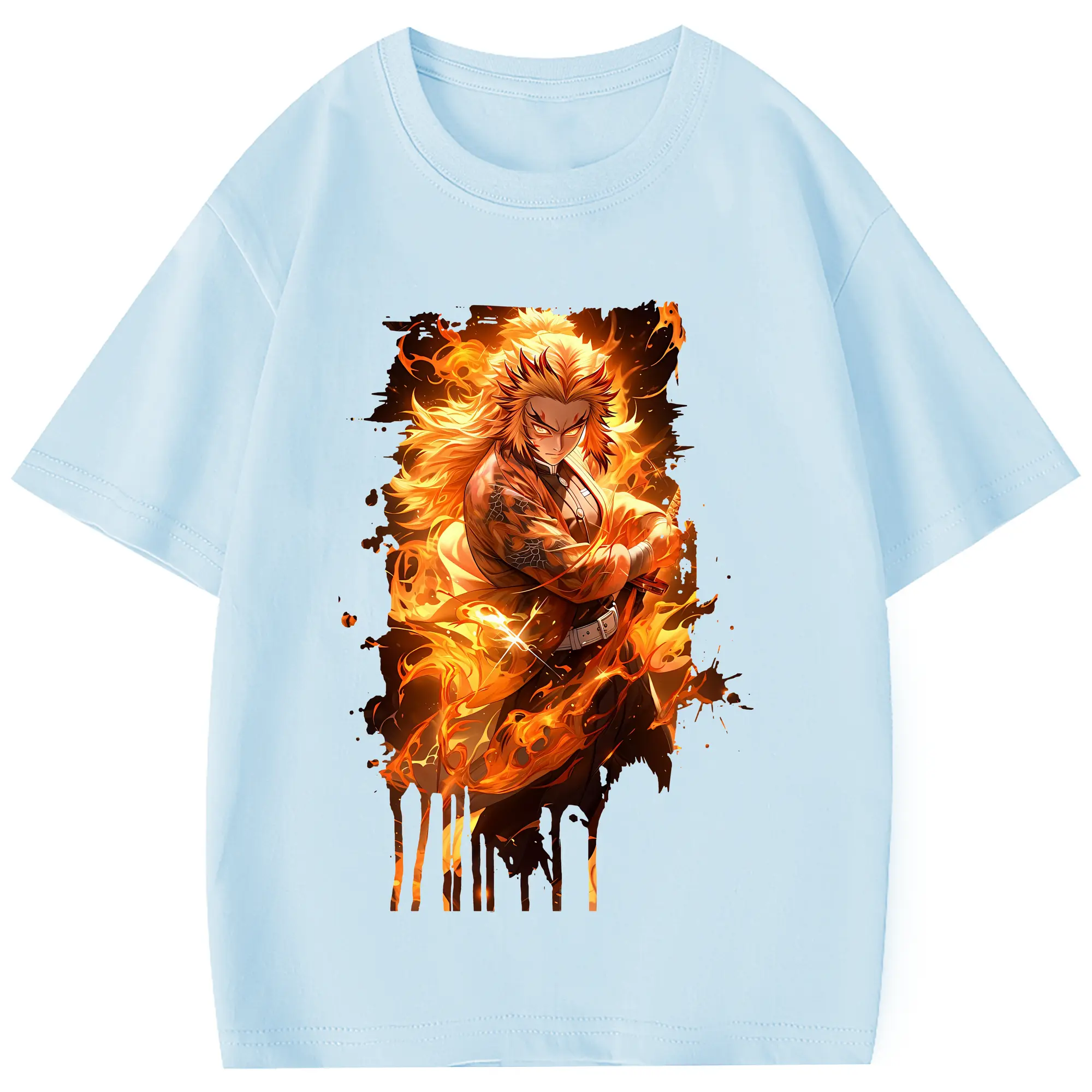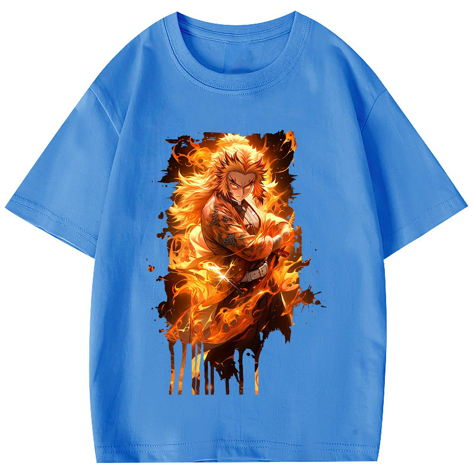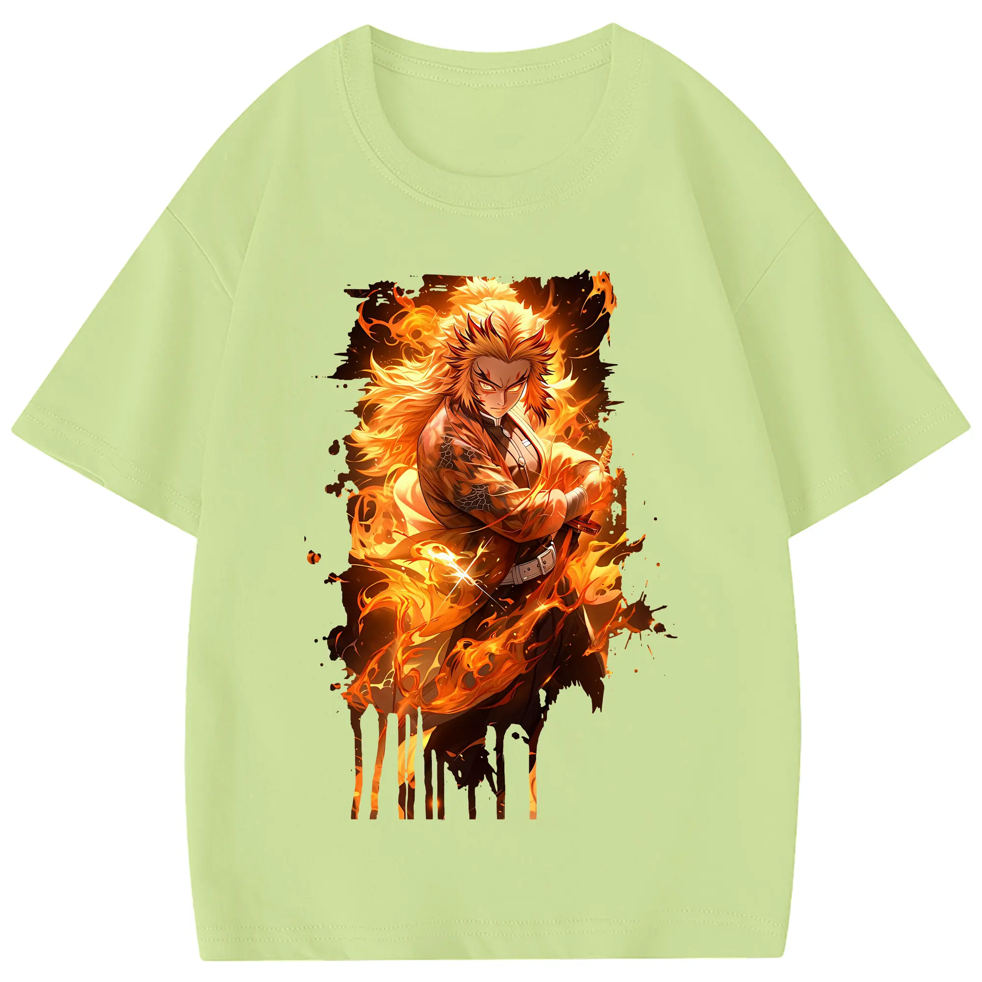 鬼滅の刃 グッズ,煉獄 杏寿郎 - 綿100% 半袖Tシャツ ・ フロントプリント ・ 快適 通気性 ・ 日常使い 散歩 スポーツ用
