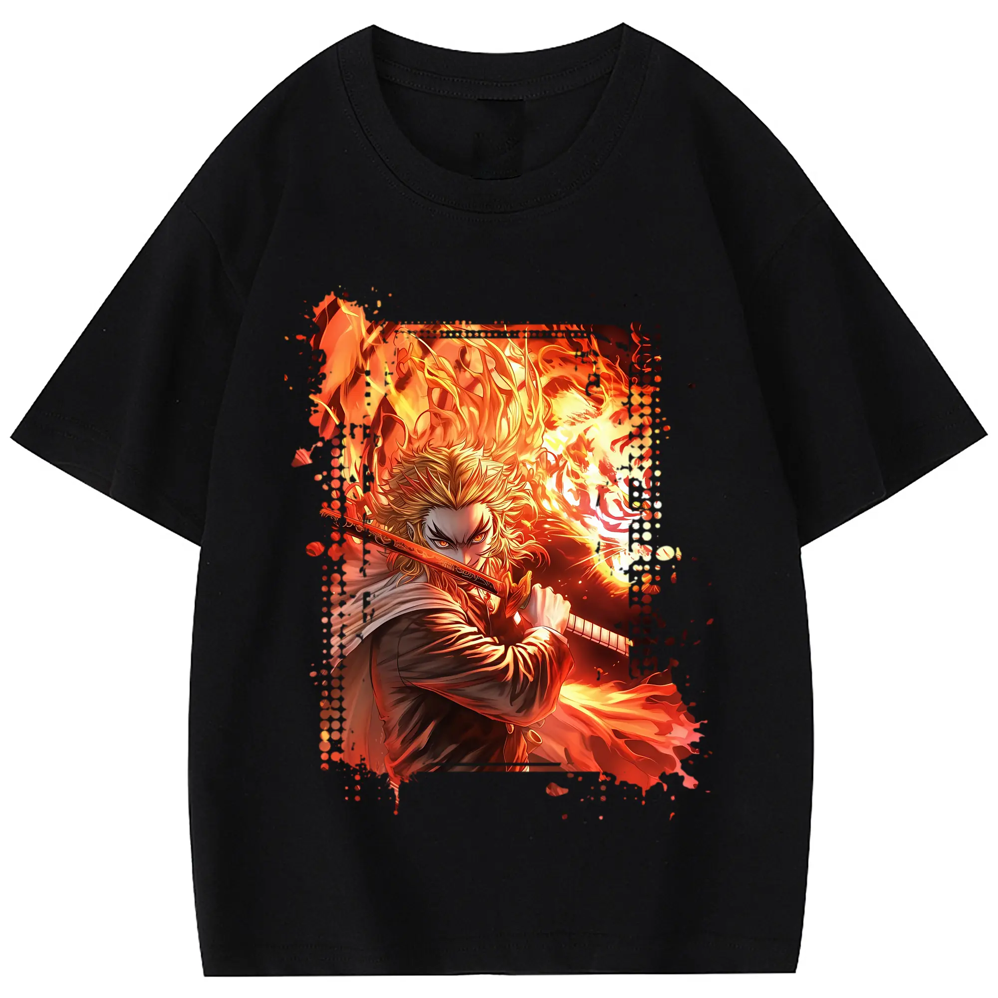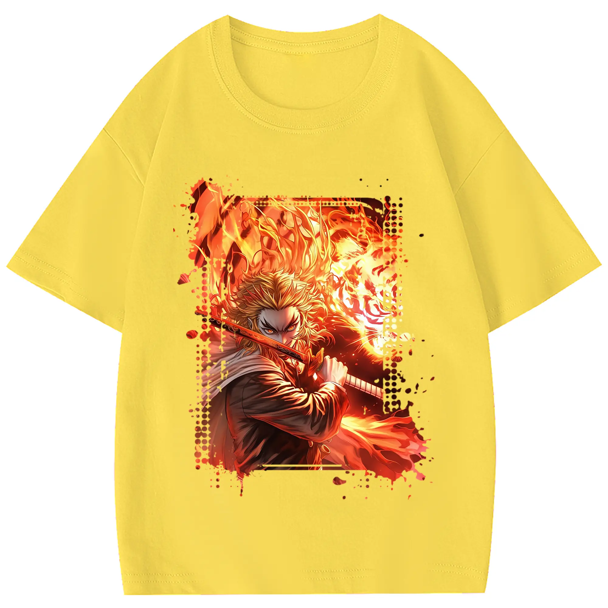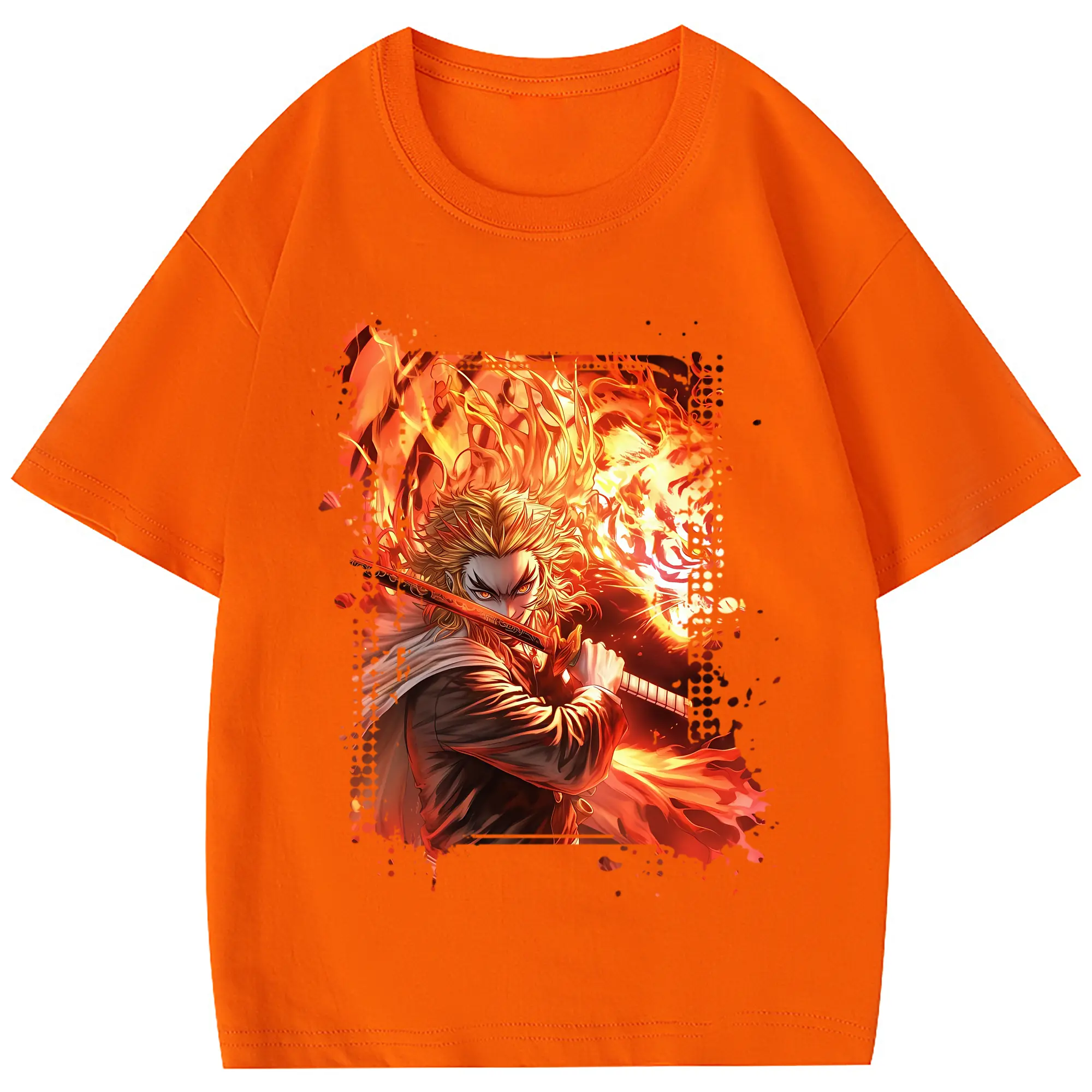 鬼滅の刃 グッズ,煉獄 杏寿郎 - 綿100% 半袖Tシャツ ・ フロントプリント ・ 快適 通気性 ・ 日常使い 散歩 スポーツ用