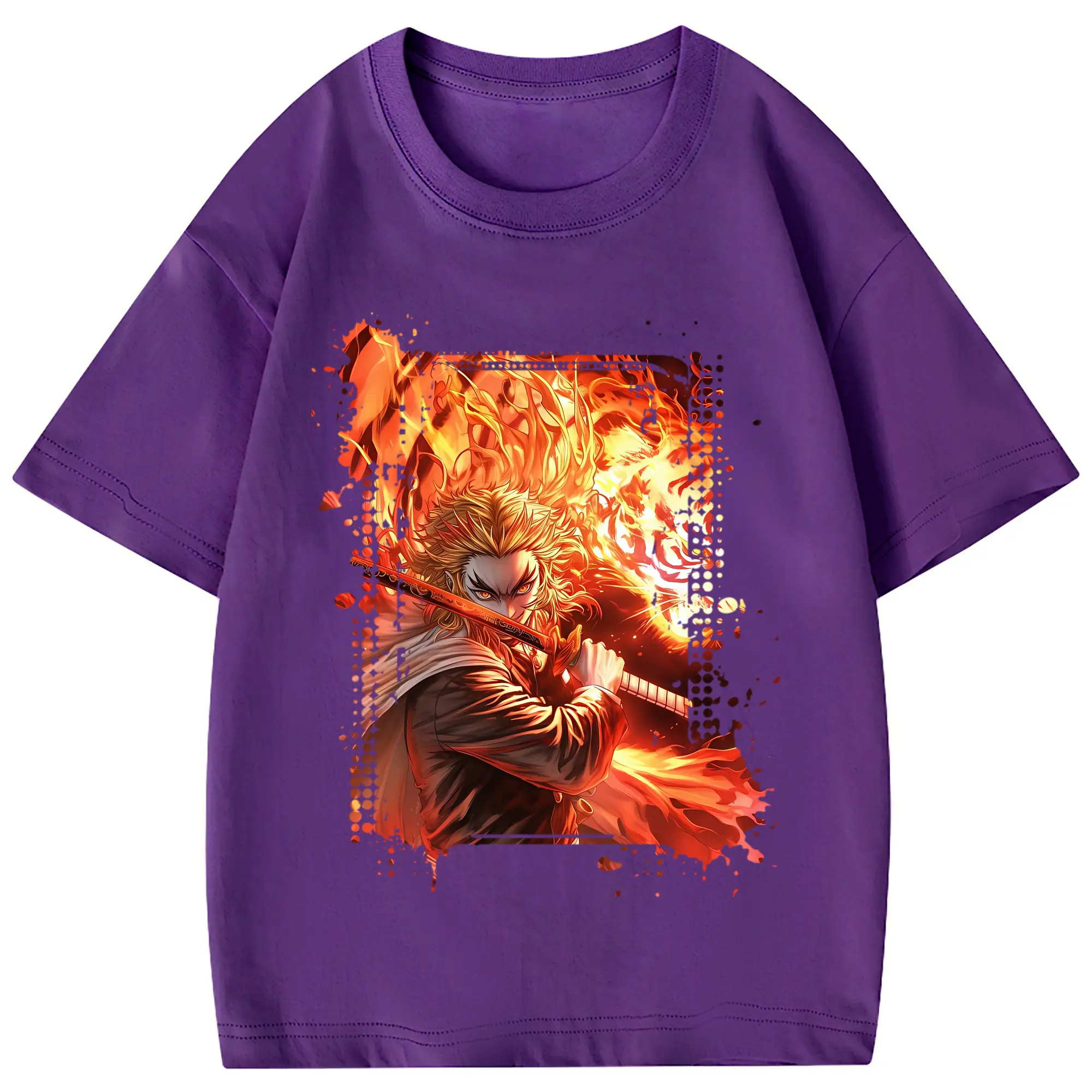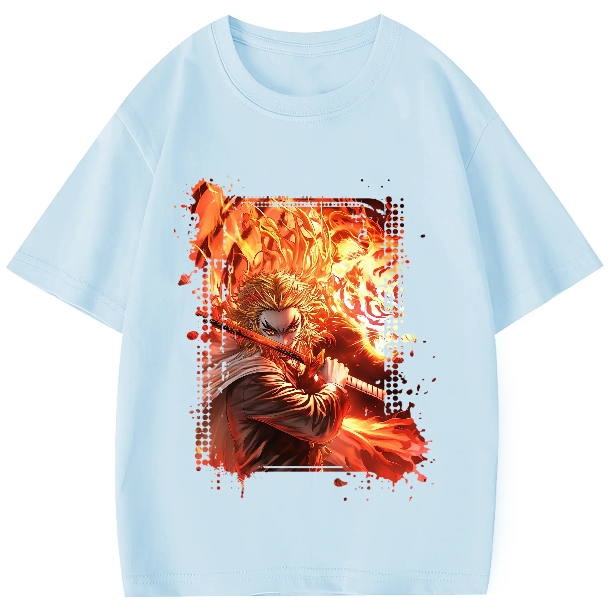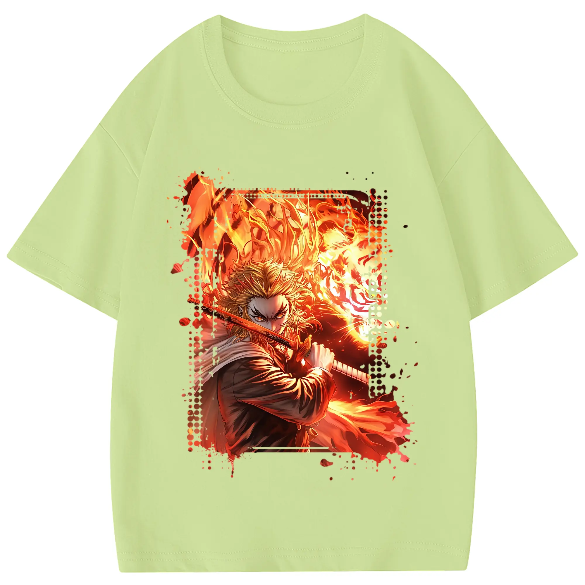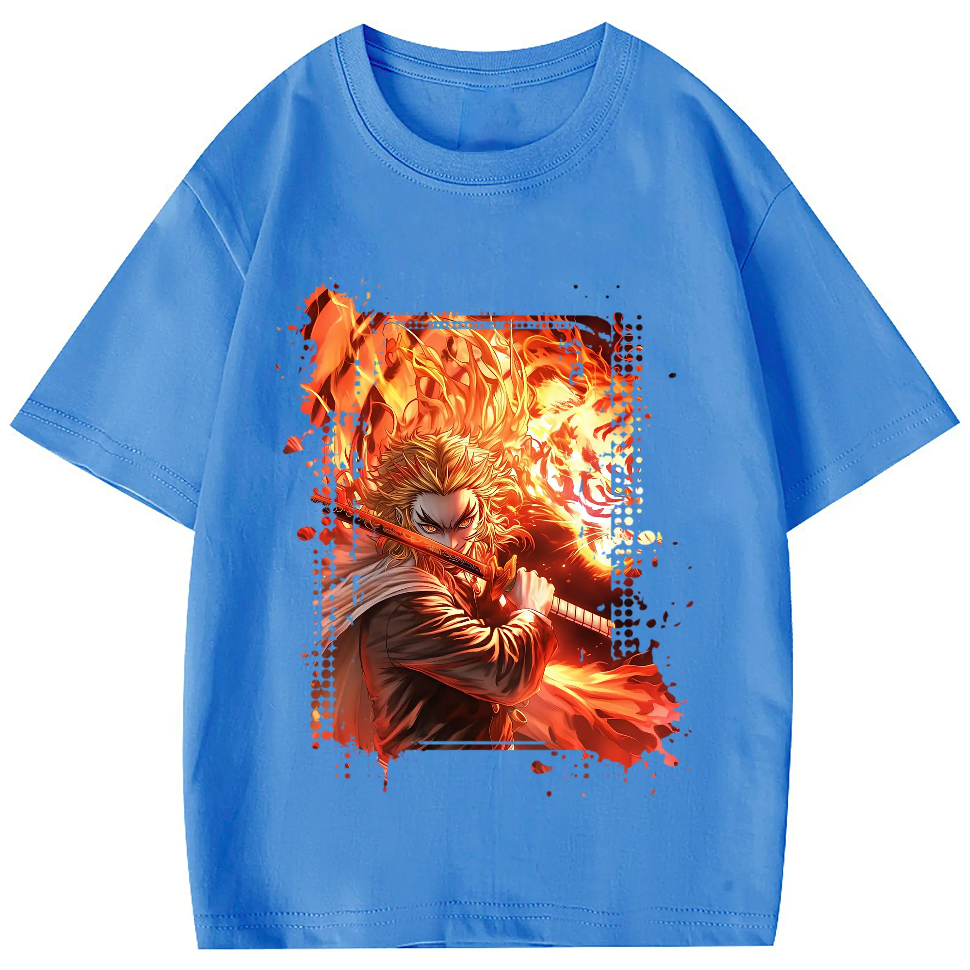 鬼滅の刃 グッズ,煉獄 杏寿郎 - 綿100% 半袖Tシャツ ・ フロントプリント ・ 快適 通気性 ・ 日常使い 散歩 スポーツ用