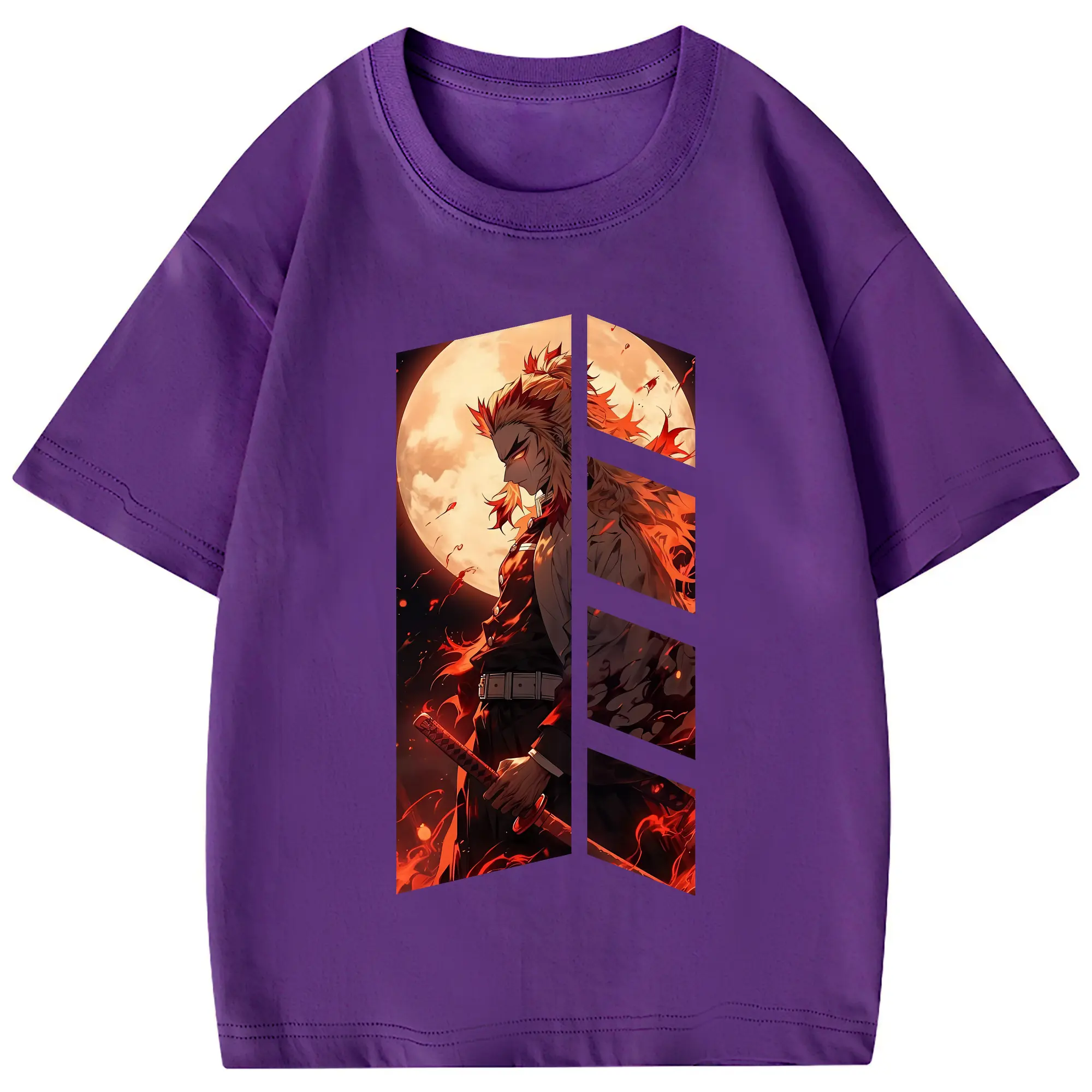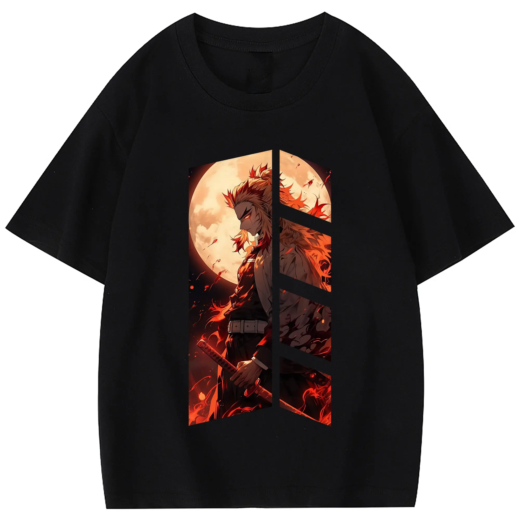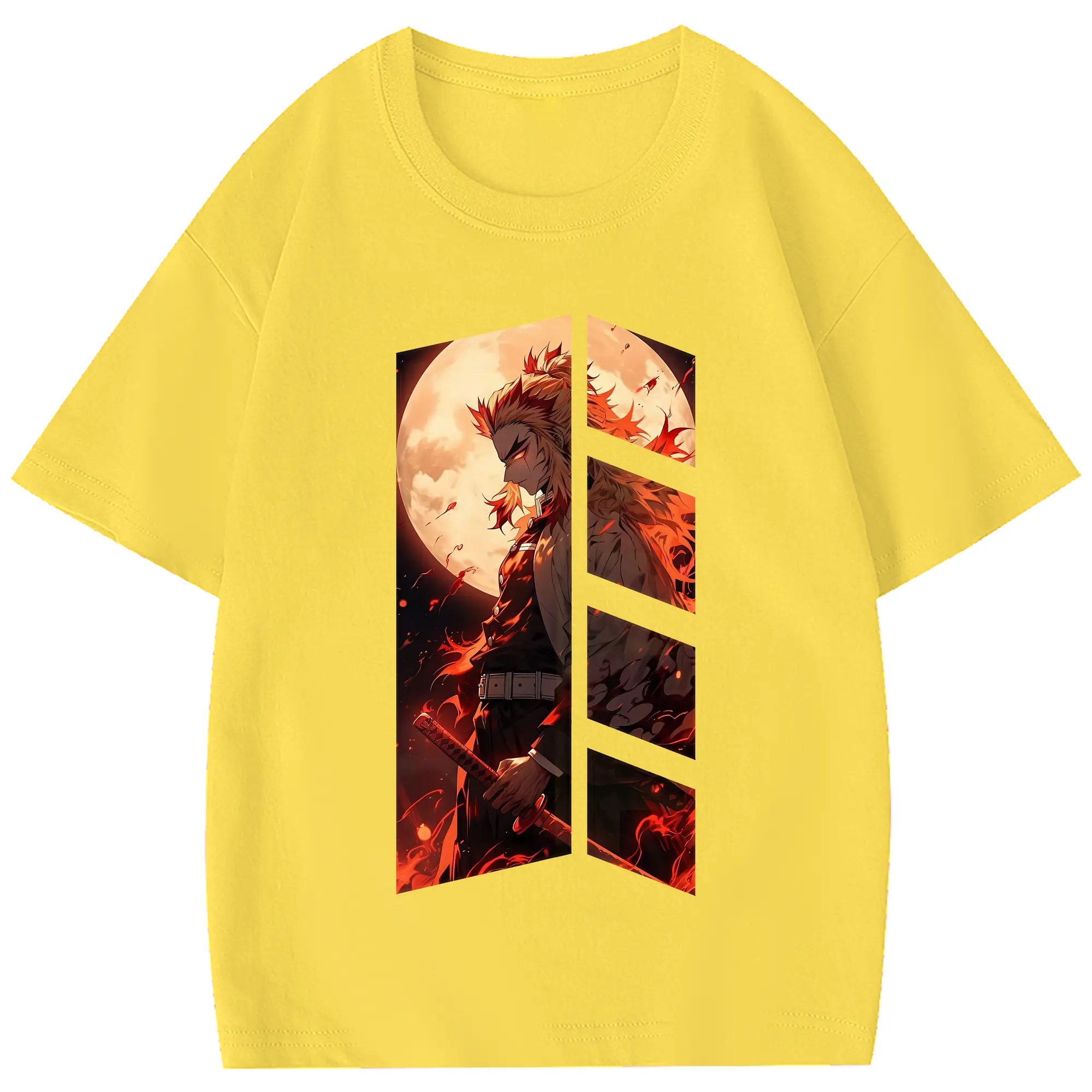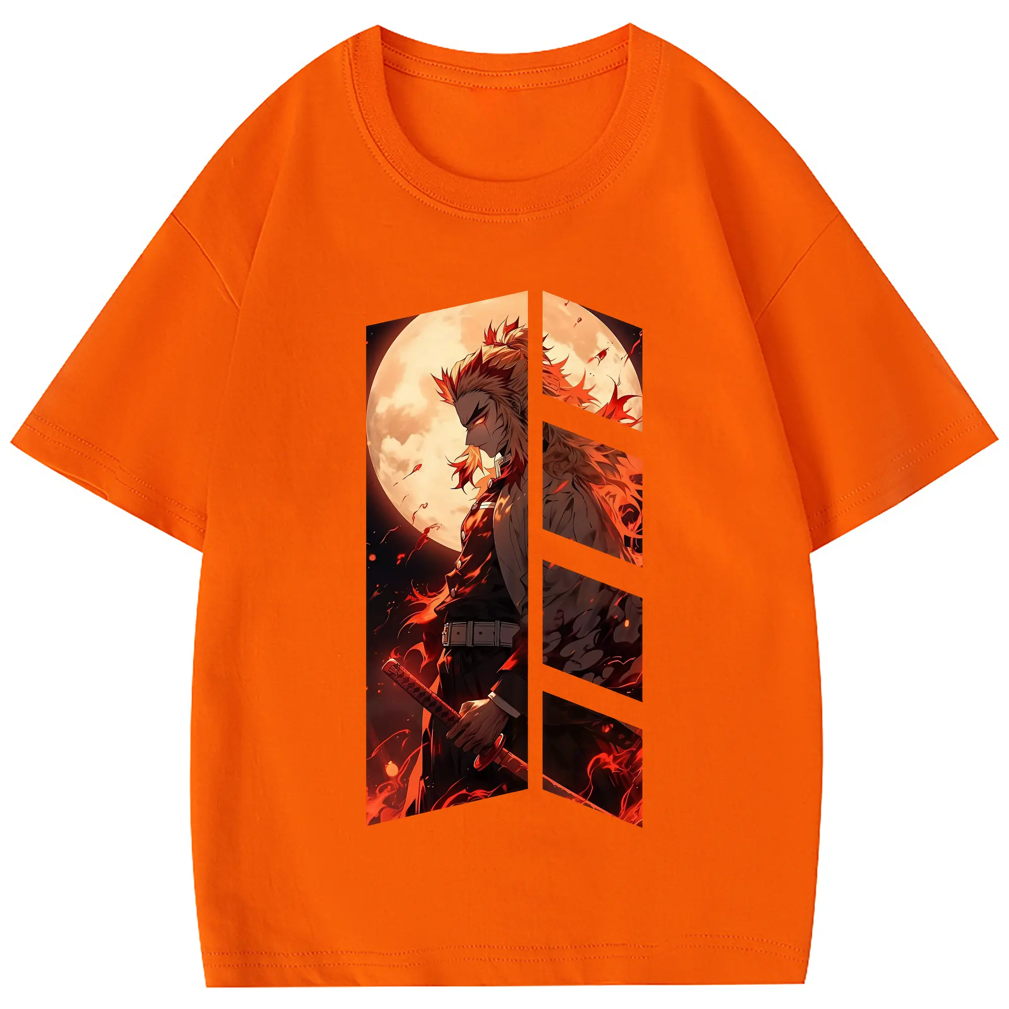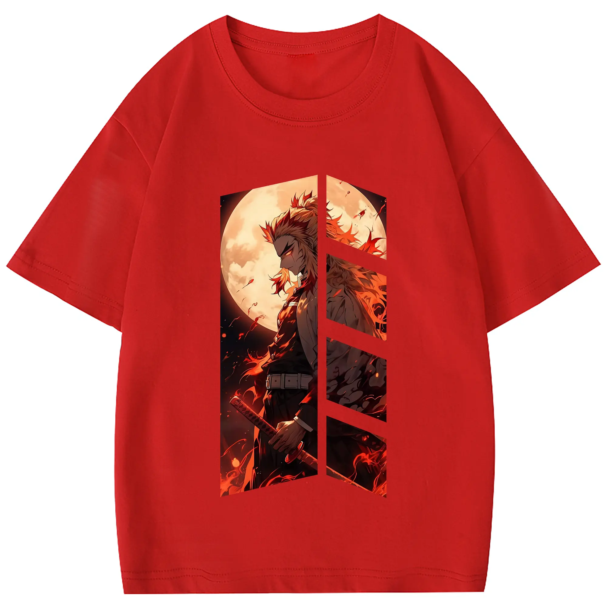 鬼滅の刃 グッズ,煉獄 杏寿郎 - 綿100% 半袖Tシャツ ・ フロントプリント ・ 快適 通気性 ・ 日常使い 散歩 スポーツ用
