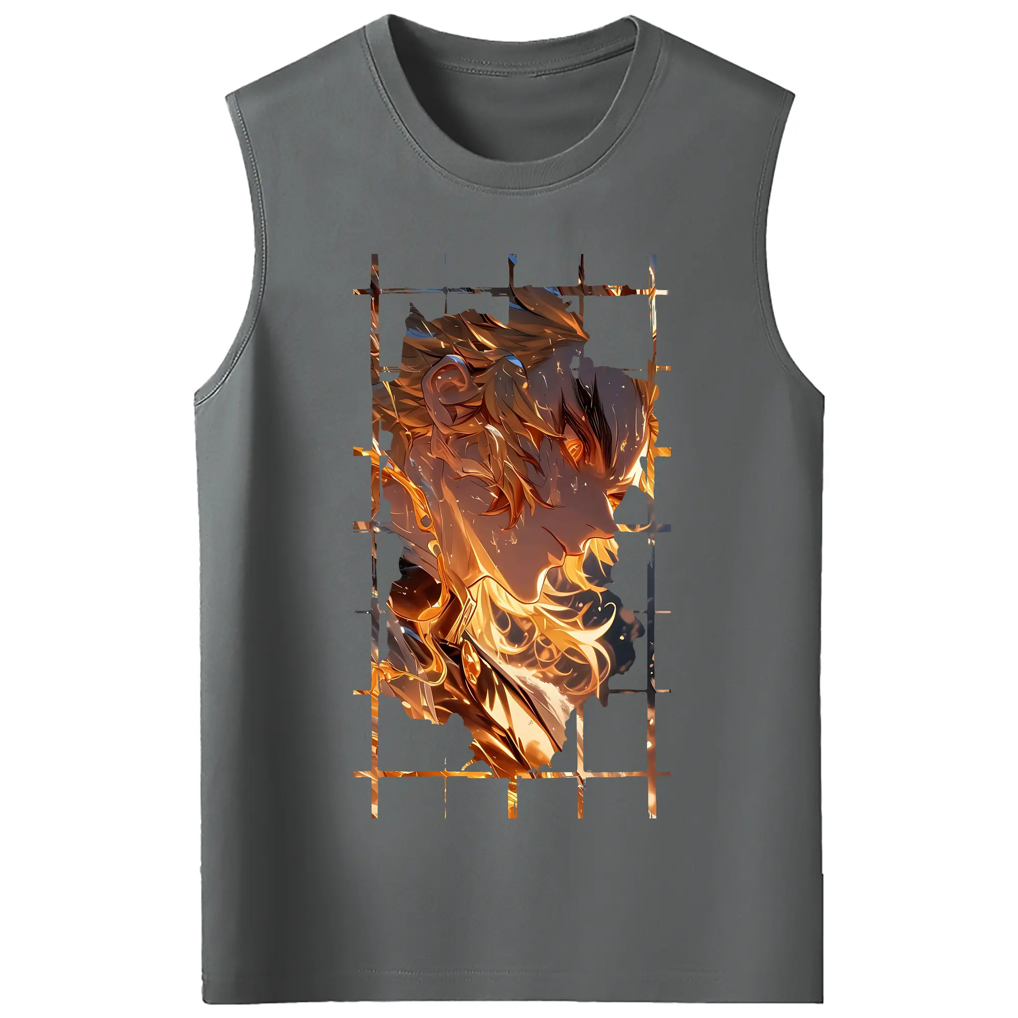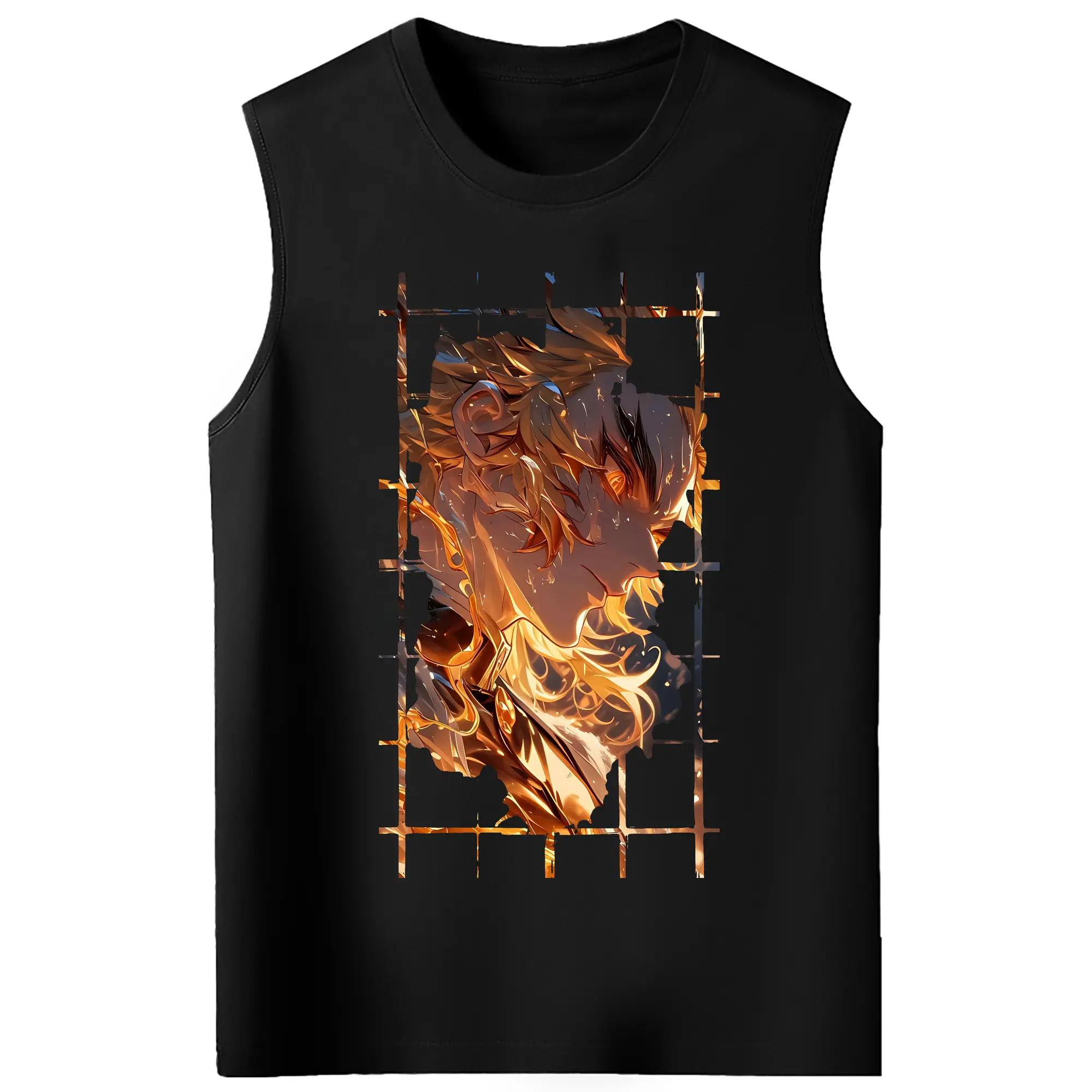鬼滅の刃 グッズ,煉獄 杏寿郎 - コットン100% タンクトップ ・ フロントプリント ・ タイトフィット ・ 快適 通気性 ・ スポーツ カジュアル 散歩用
