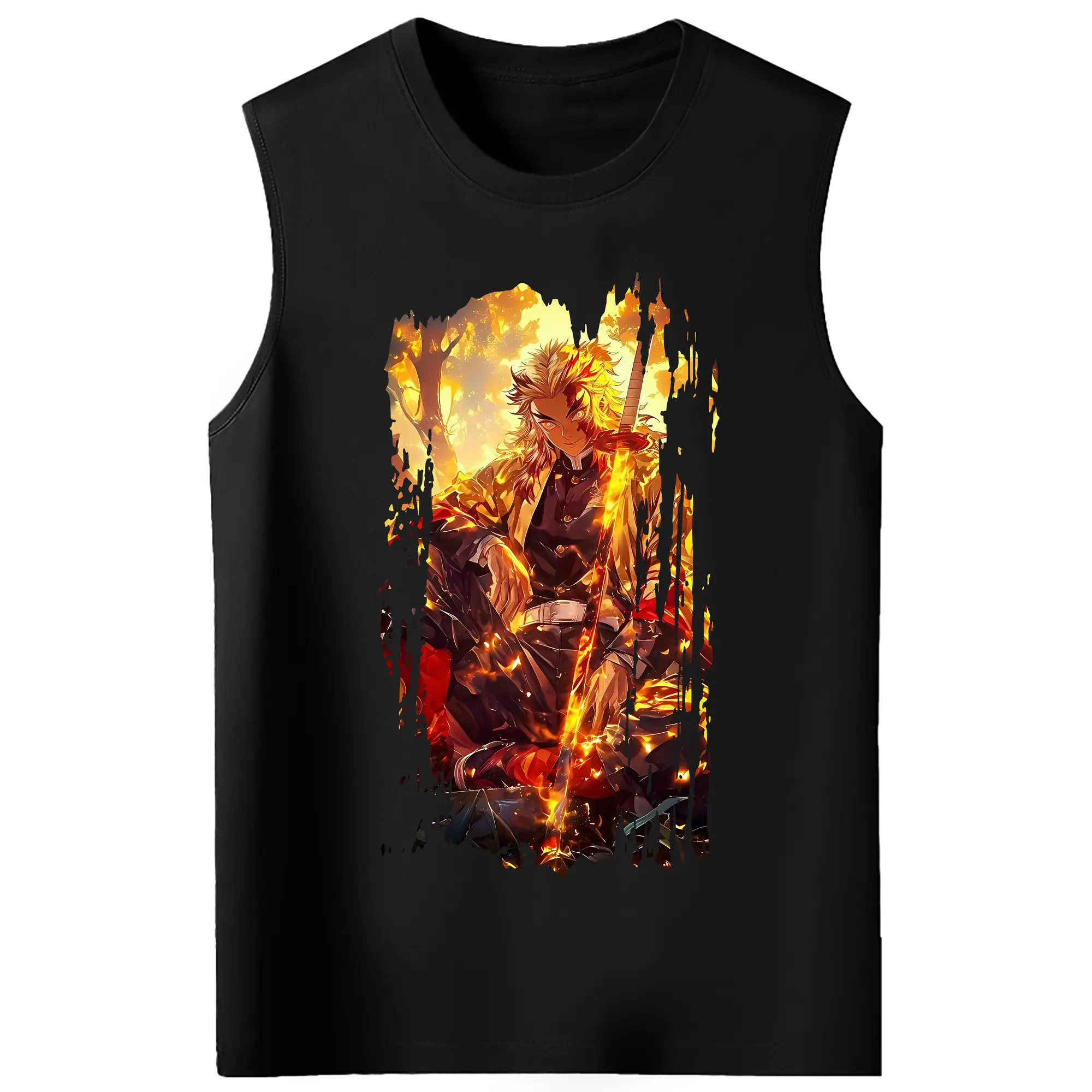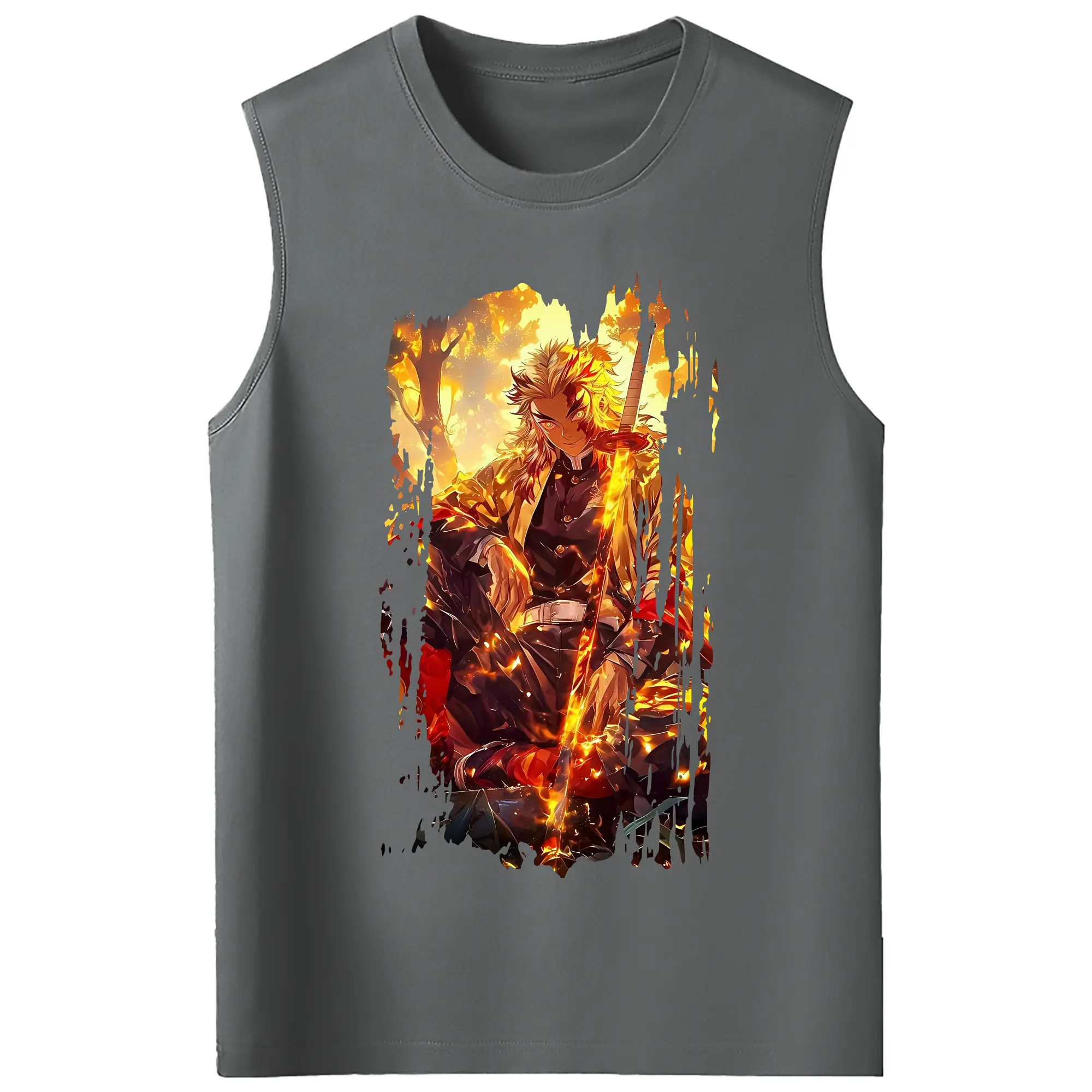 鬼滅の刃 グッズ,煉獄 杏寿郎 - コットン100% タンクトップ ・ フロントプリント ・ タイトフィット ・ 快適 通気性 ・ スポーツ カジュアル 散歩用