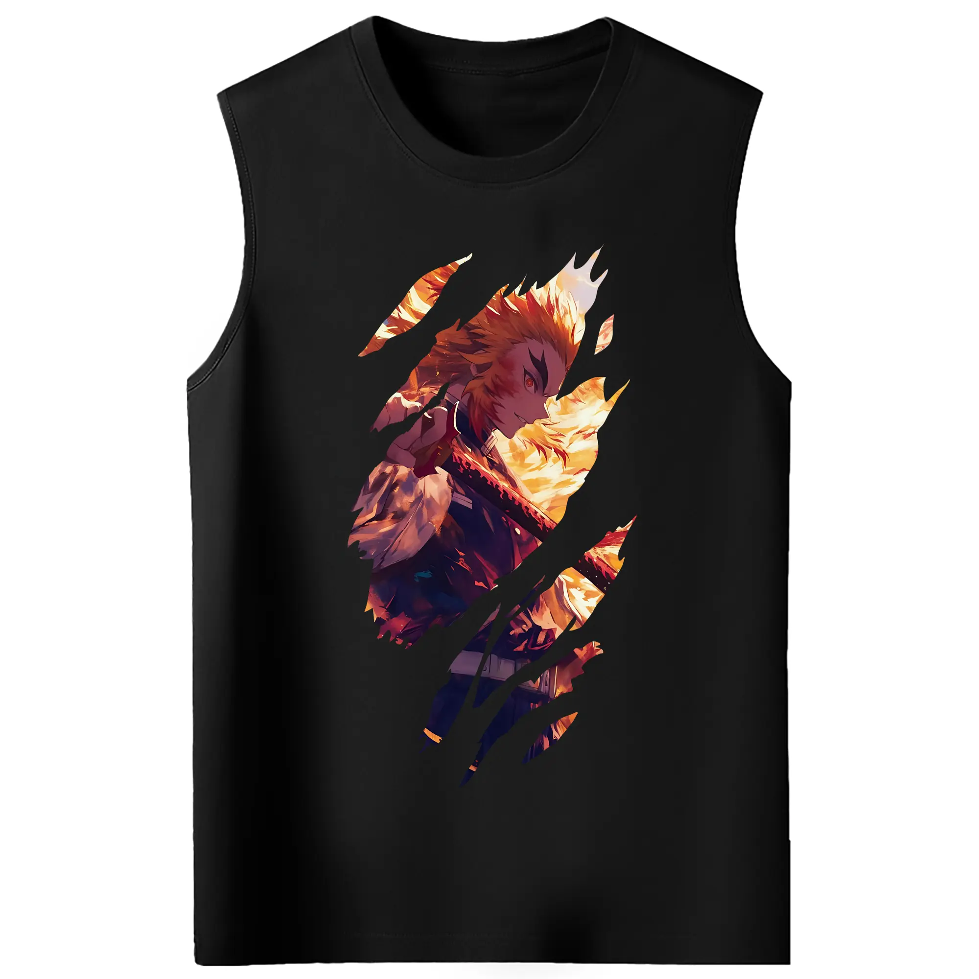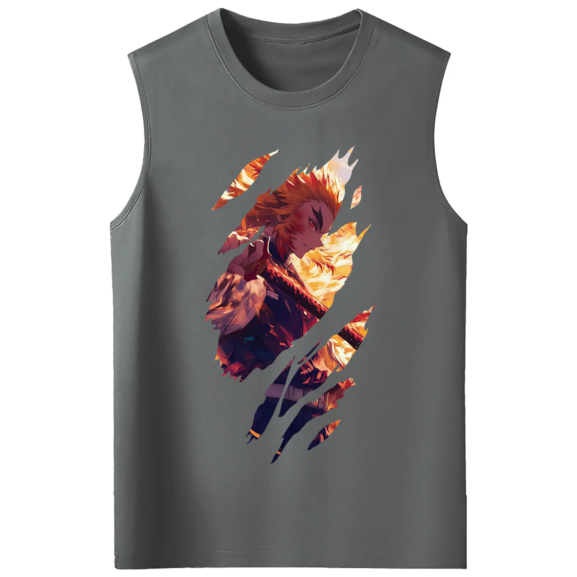 鬼滅の刃 グッズ,煉獄 杏寿郎 - コットン100% タンクトップ ・ フロントプリント ・ タイトフィット ・ 快適 通気性 ・ スポーツ カジュアル 散歩用