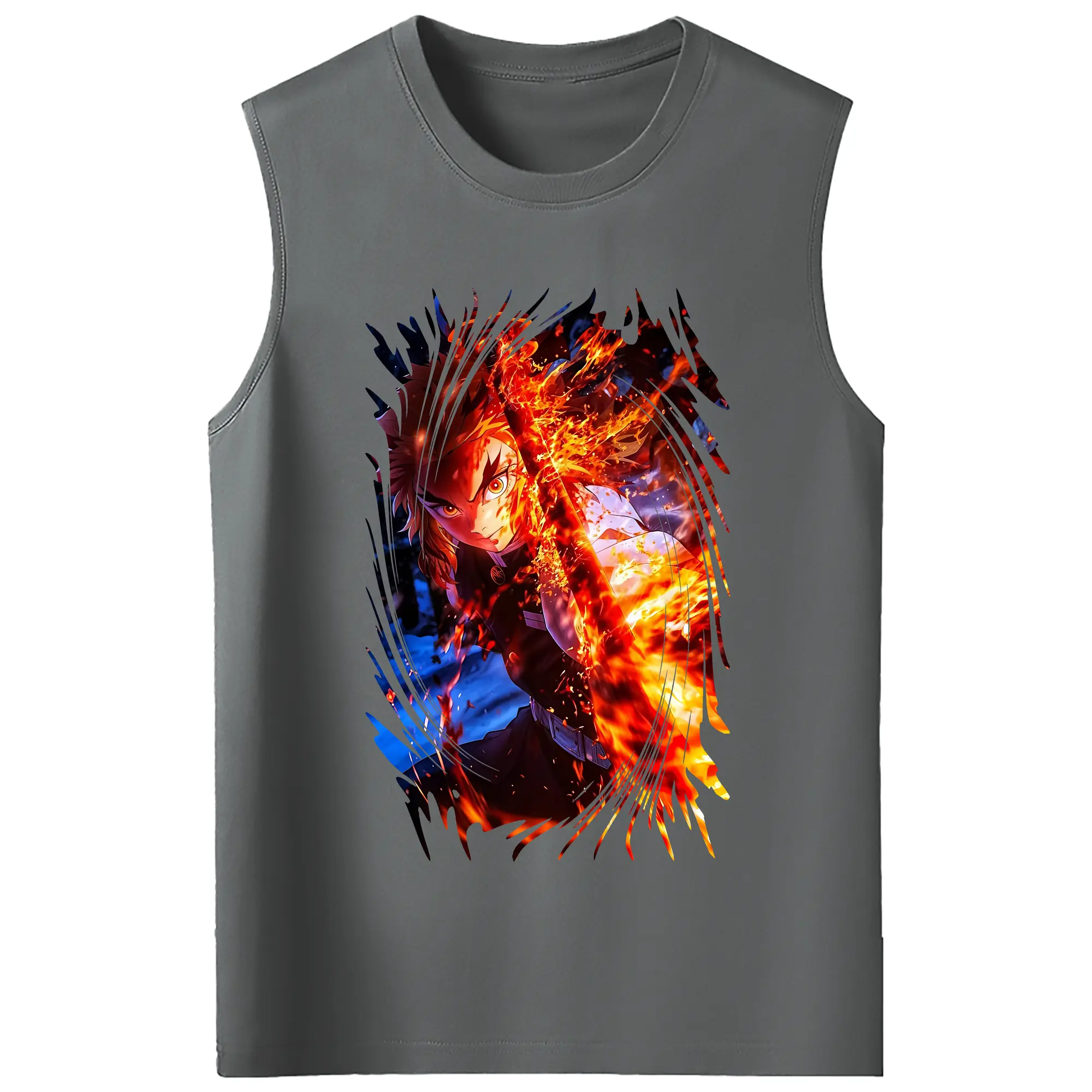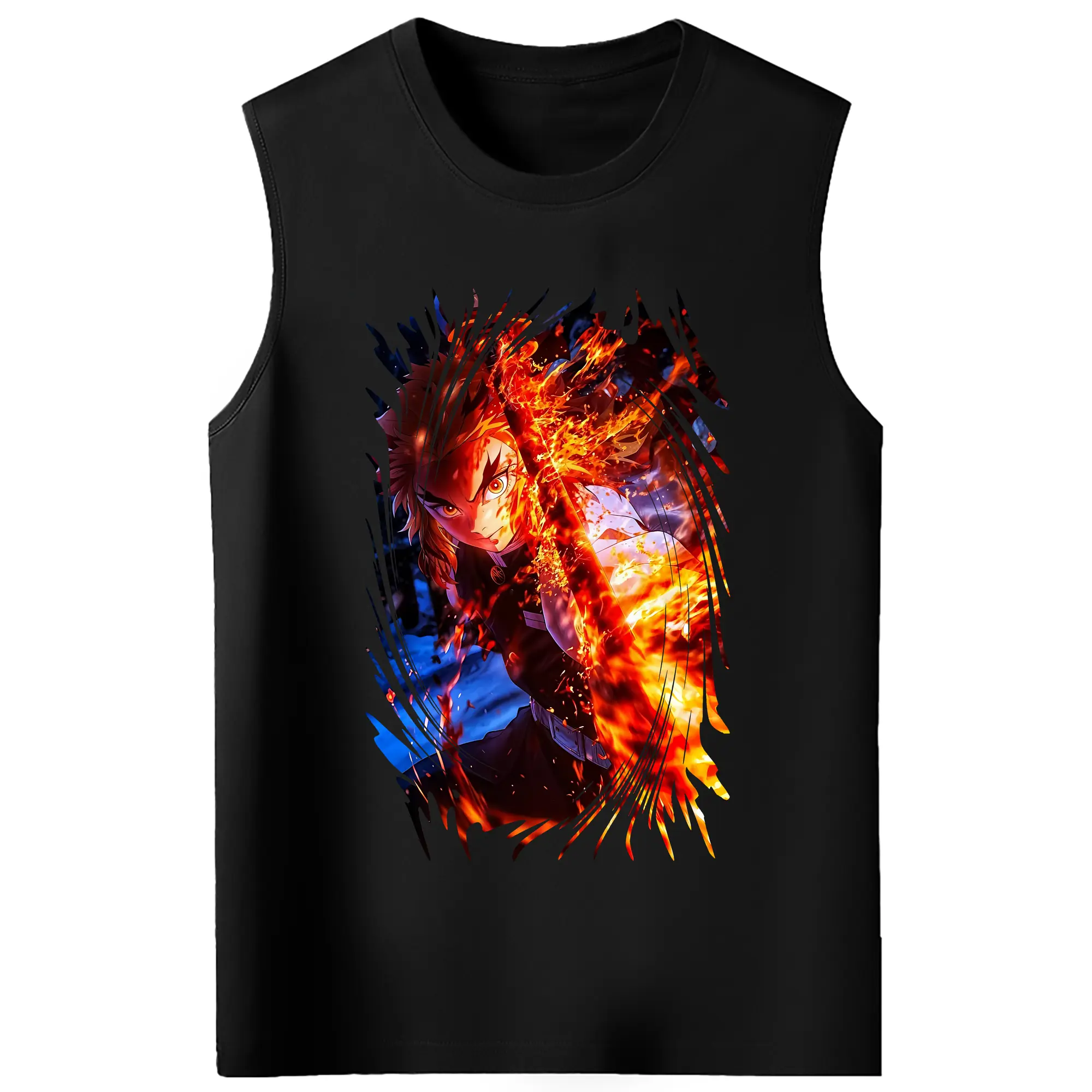 鬼滅の刃 グッズ,煉獄 杏寿郎 - コットン100% タンクトップ ・ フロントプリント ・ タイトフィット ・ 快適 通気性 ・ スポーツ カジュアル 散歩用