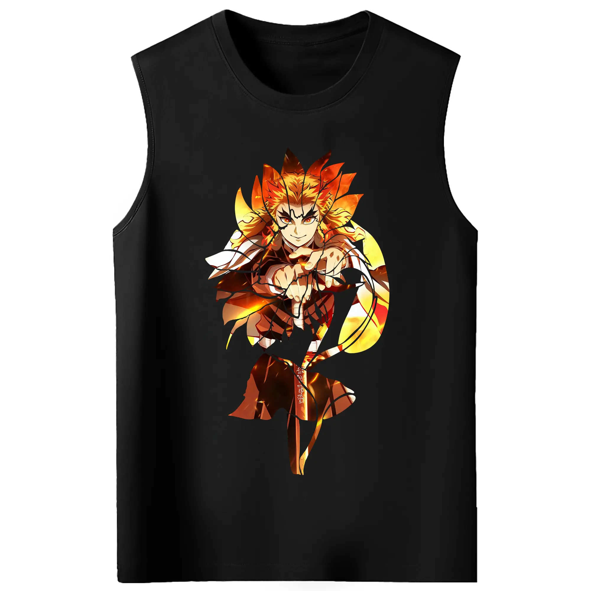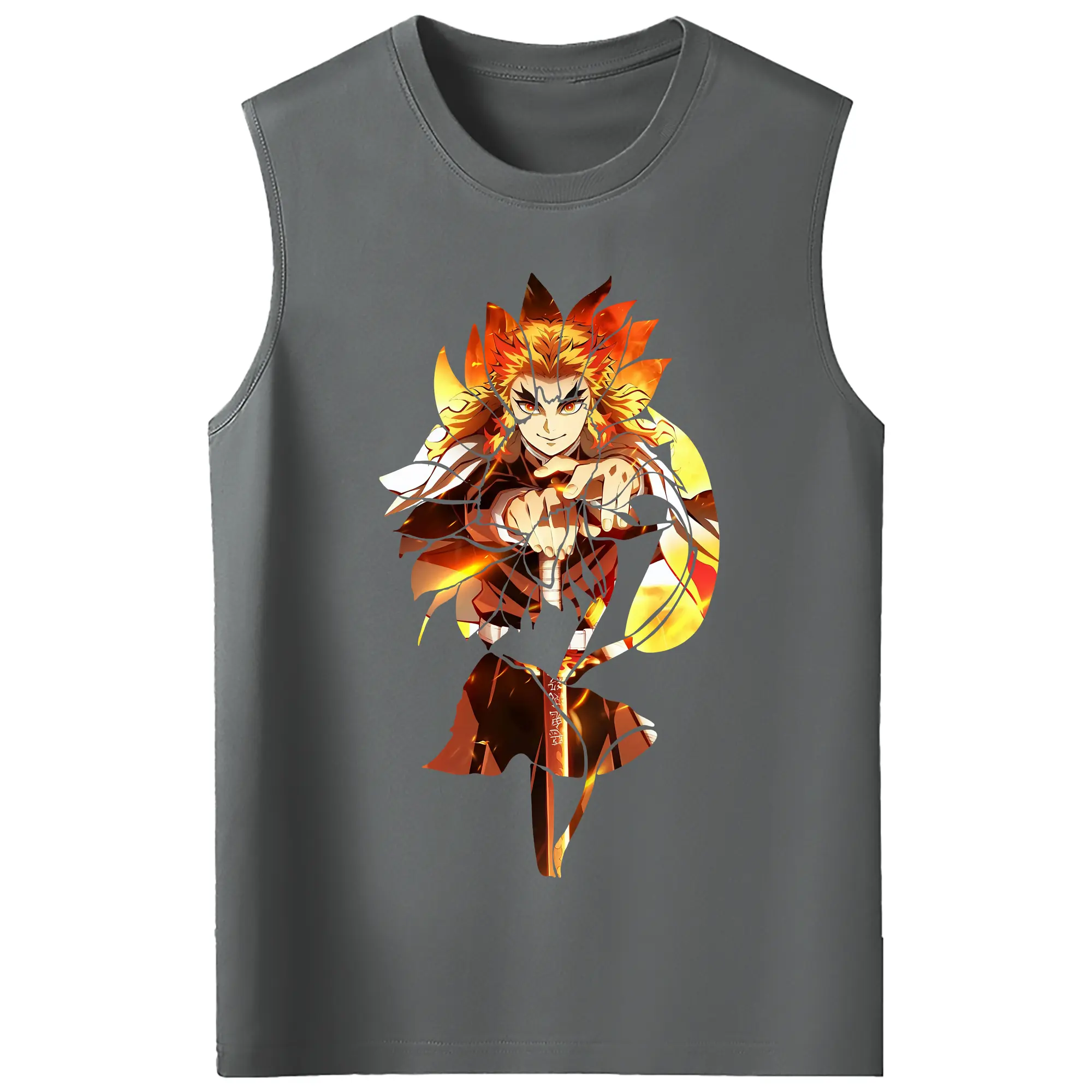 鬼滅の刃 グッズ,煉獄 杏寿郎 - コットン100% タンクトップ ・ フロントプリント ・ タイトフィット ・ 快適 通気性 ・ スポーツ カジュアル 散歩用