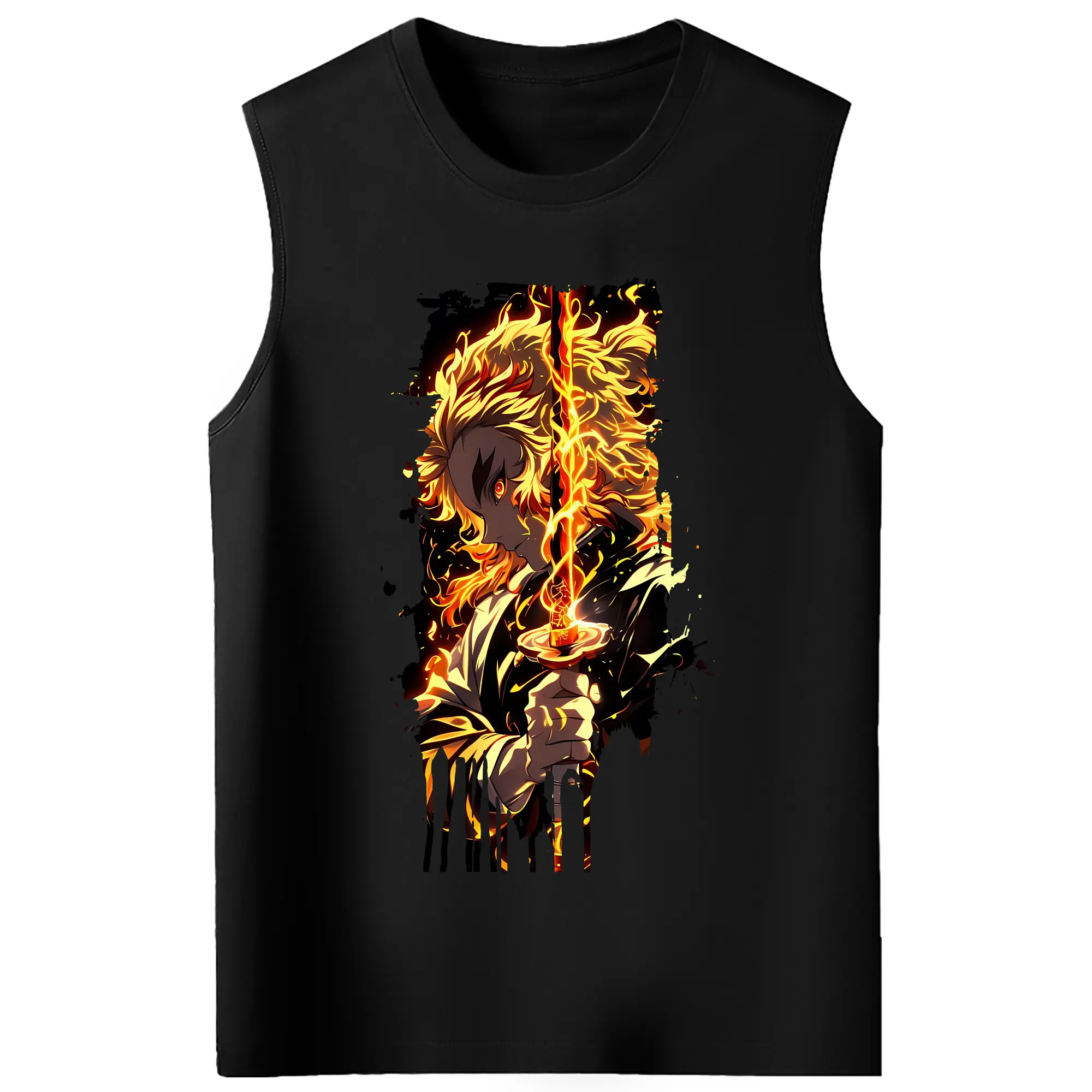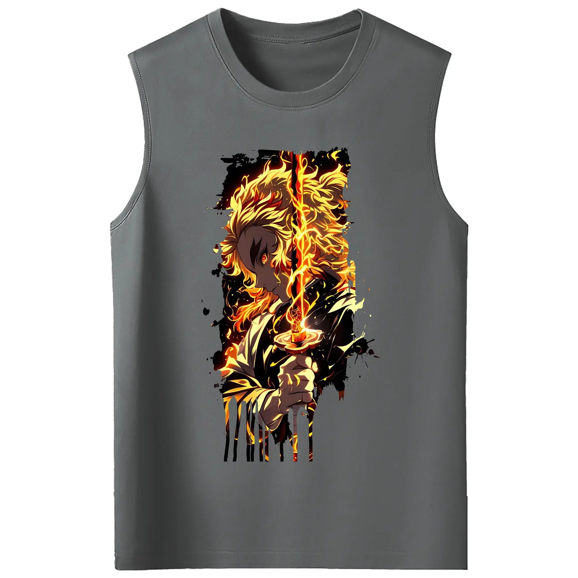鬼滅の刃 グッズ,煉獄 杏寿郎 - コットン100% タンクトップ ・ フロントプリント ・ タイトフィット ・ 快適 通気性 ・ スポーツ カジュアル 散歩用