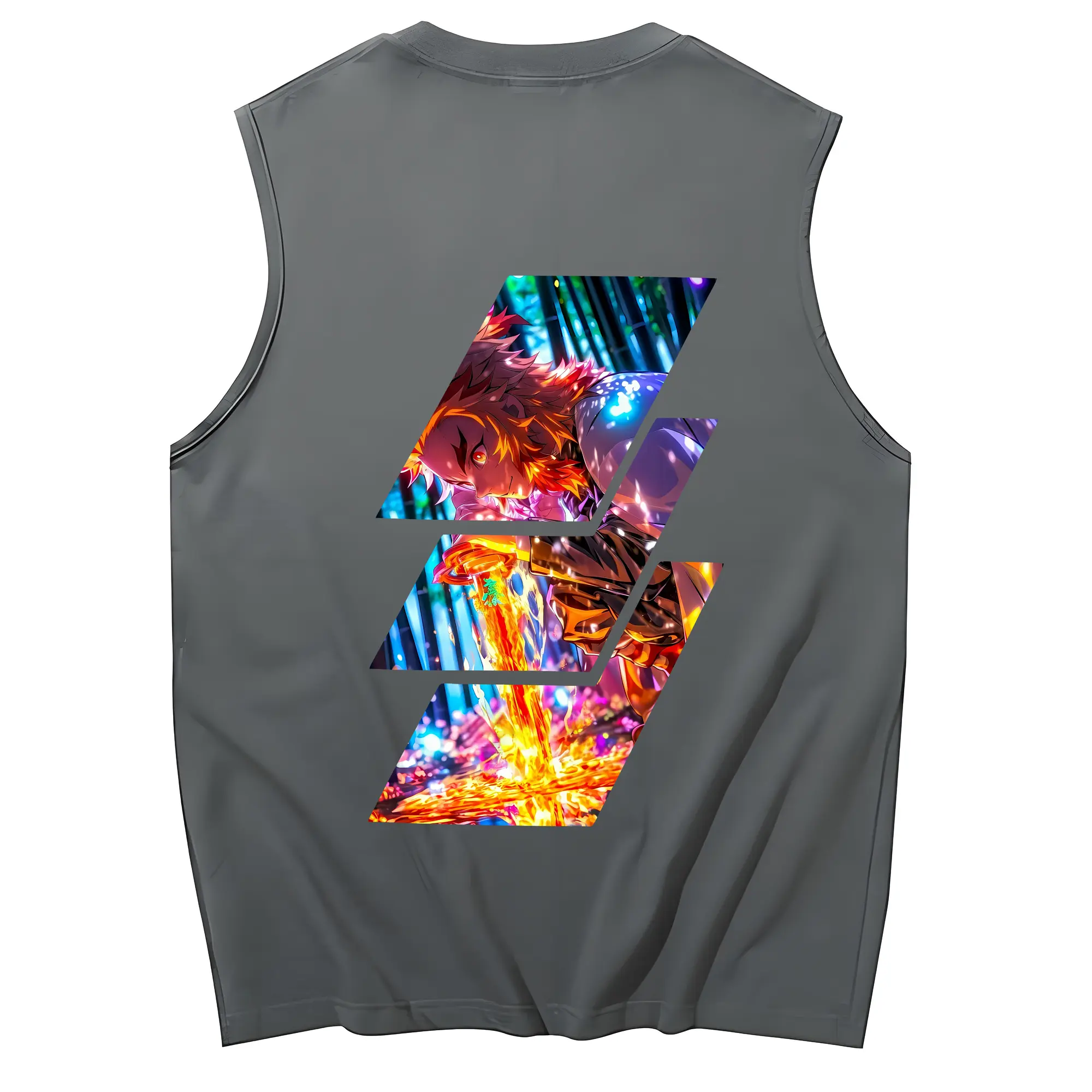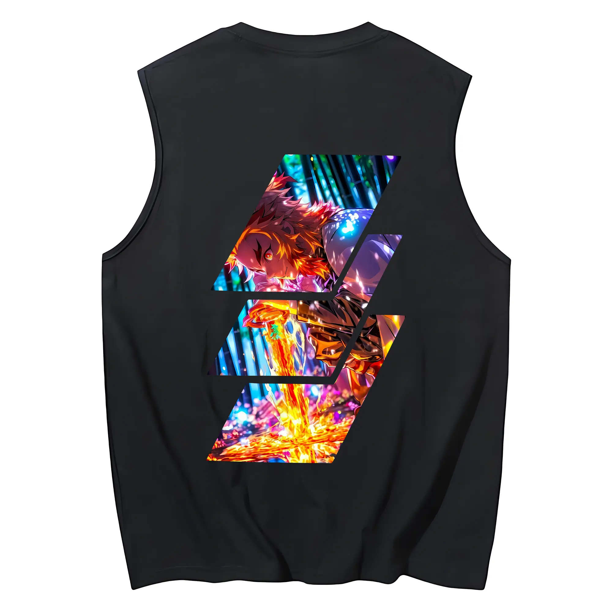 鬼滅の刃 グッズ,煉獄 杏寿郎 - コットン100% タンクトップ ・ 背面プリント ・ タイトシルエット ・ 快適 通気性 ・ スポーツ カジュアル 散歩用