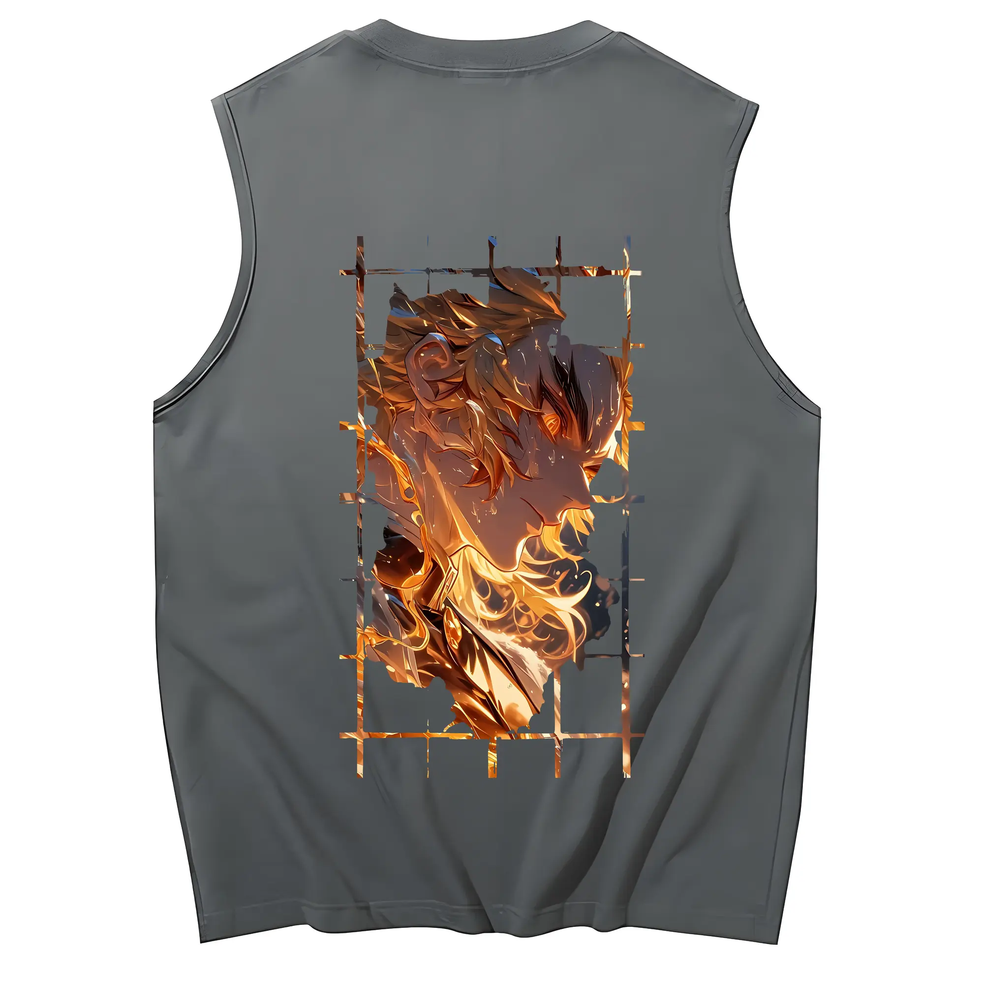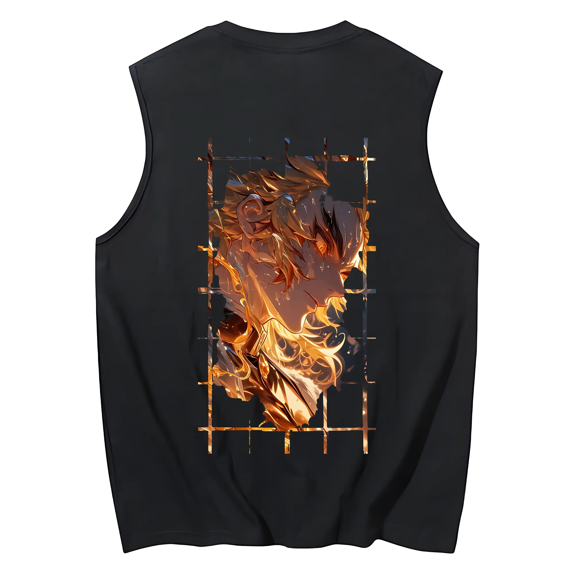 鬼滅の刃 グッズ,煉獄 杏寿郎 - コットン100% タンクトップ ・ 背面プリント ・ タイトシルエット ・ 快適 通気性 ・ スポーツ カジュアル 散歩用