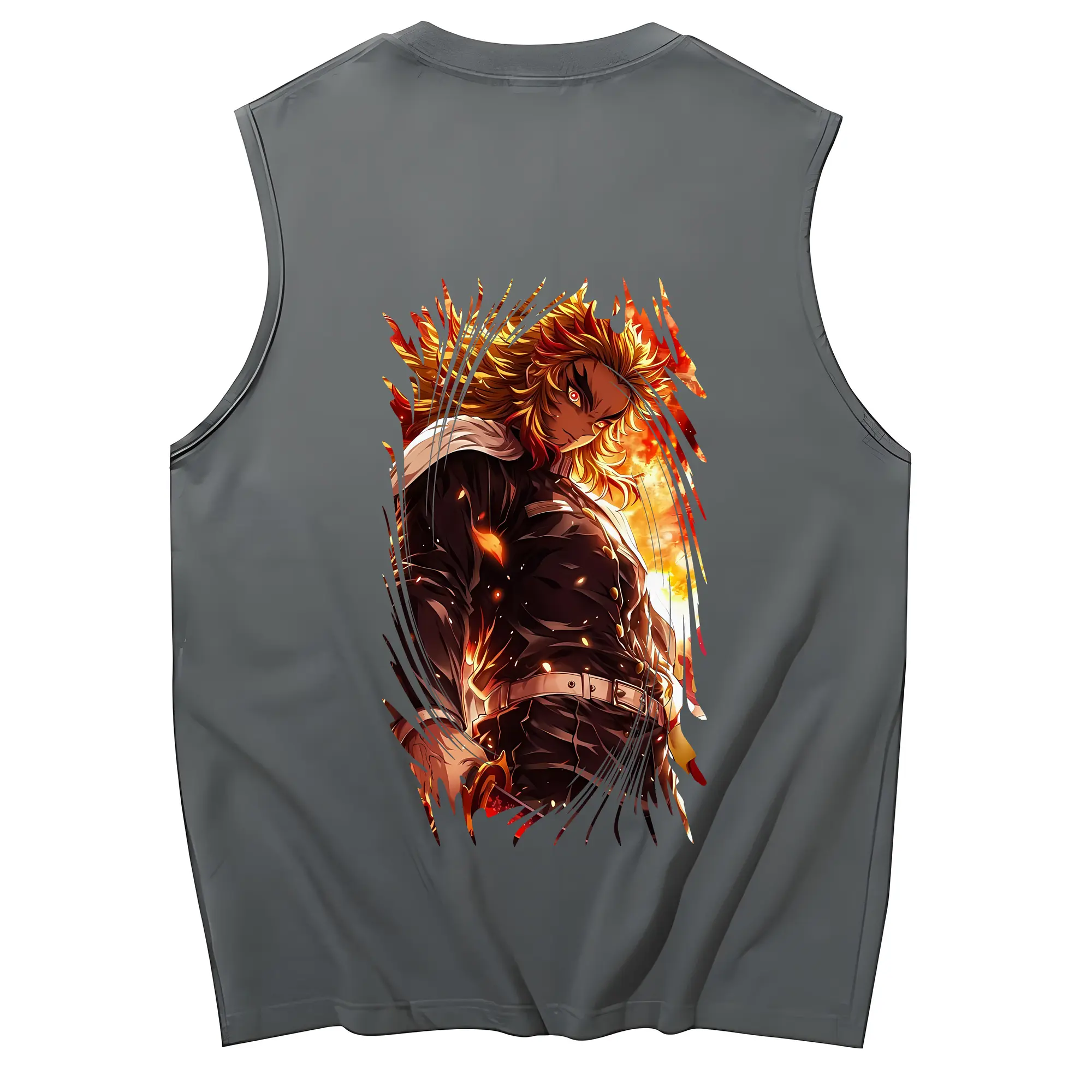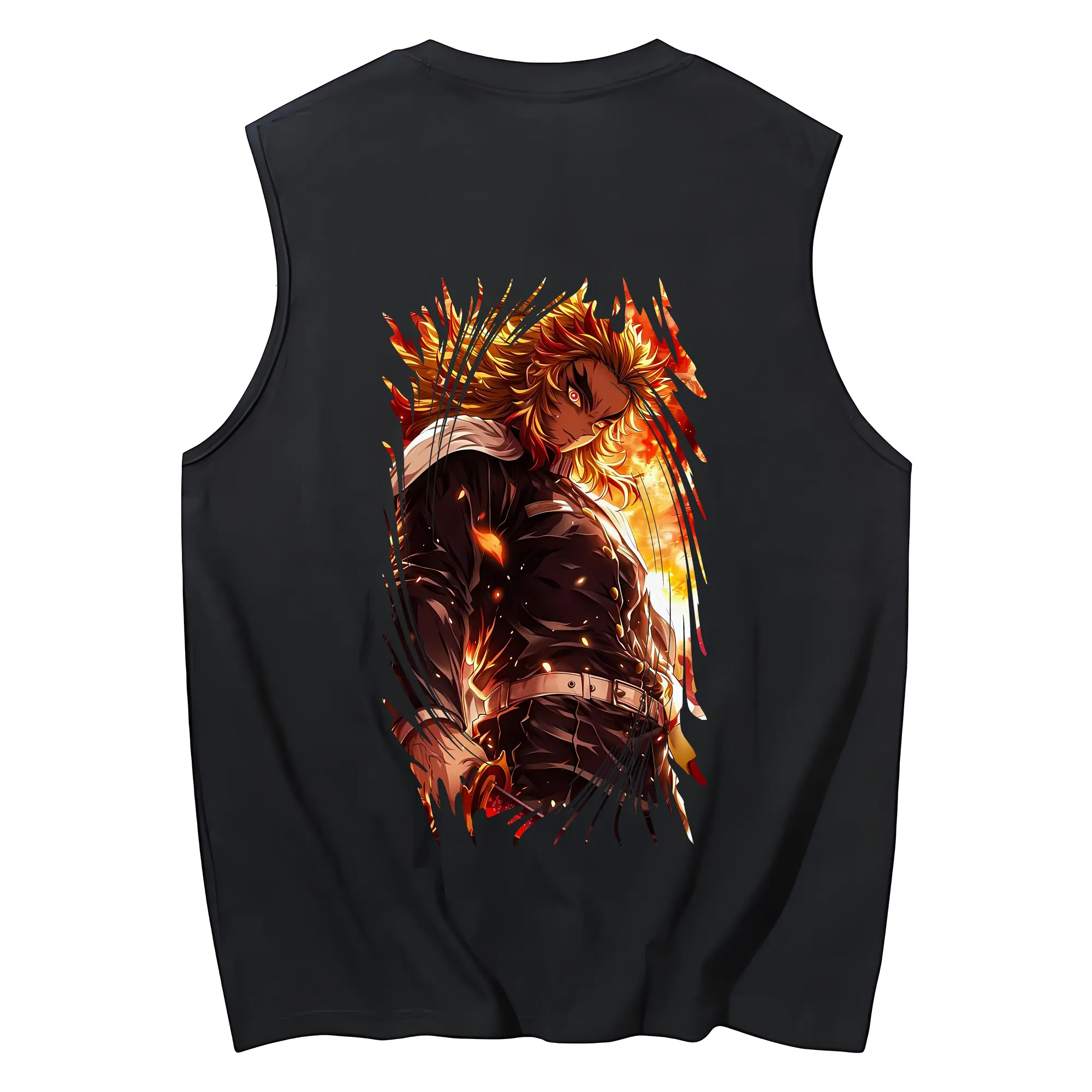 鬼滅の刃 グッズ,煉獄 杏寿郎 - コットン100% タンクトップ ・ 背面プリント ・ タイトシルエット ・ 快適 通気性 ・ スポーツ カジュアル 散歩用