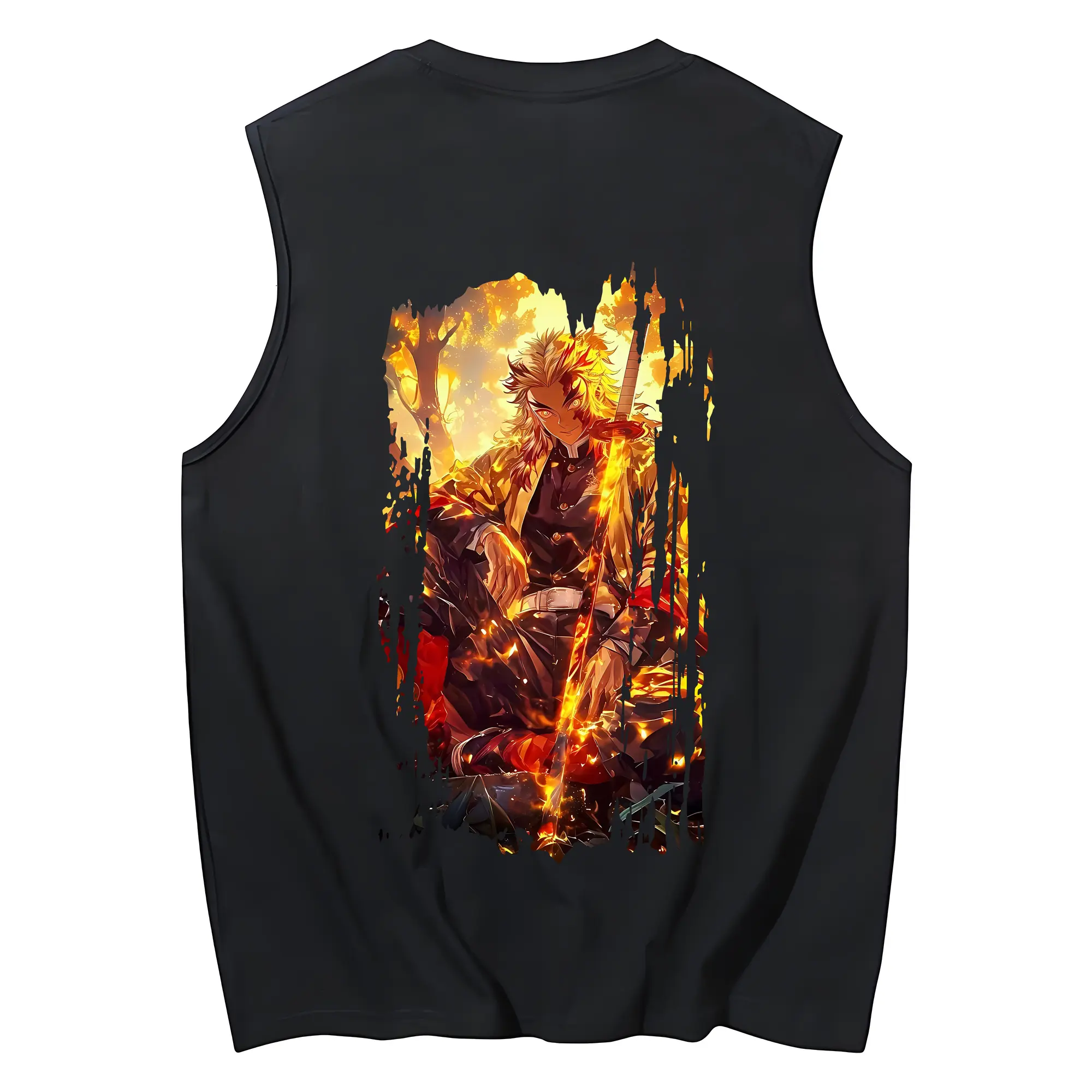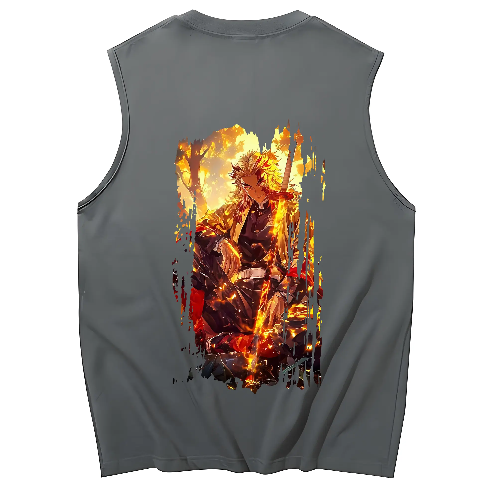 鬼滅の刃 グッズ,煉獄 杏寿郎 - コットン100% タンクトップ ・ 背面プリント ・ タイトシルエット ・ 快適 通気性 ・ スポーツ カジュアル 散歩用