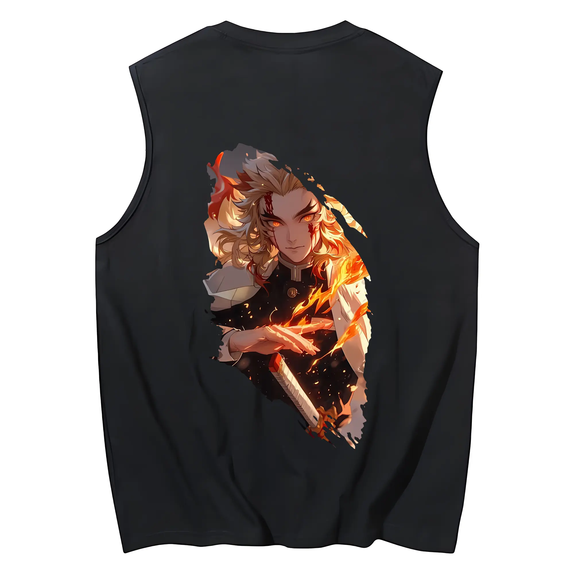 鬼滅の刃 グッズ,煉獄 杏寿郎 - コットン100% タンクトップ ・ 背面プリント ・ タイトシルエット ・ 快適 通気性 ・ スポーツ カジュアル 散歩用