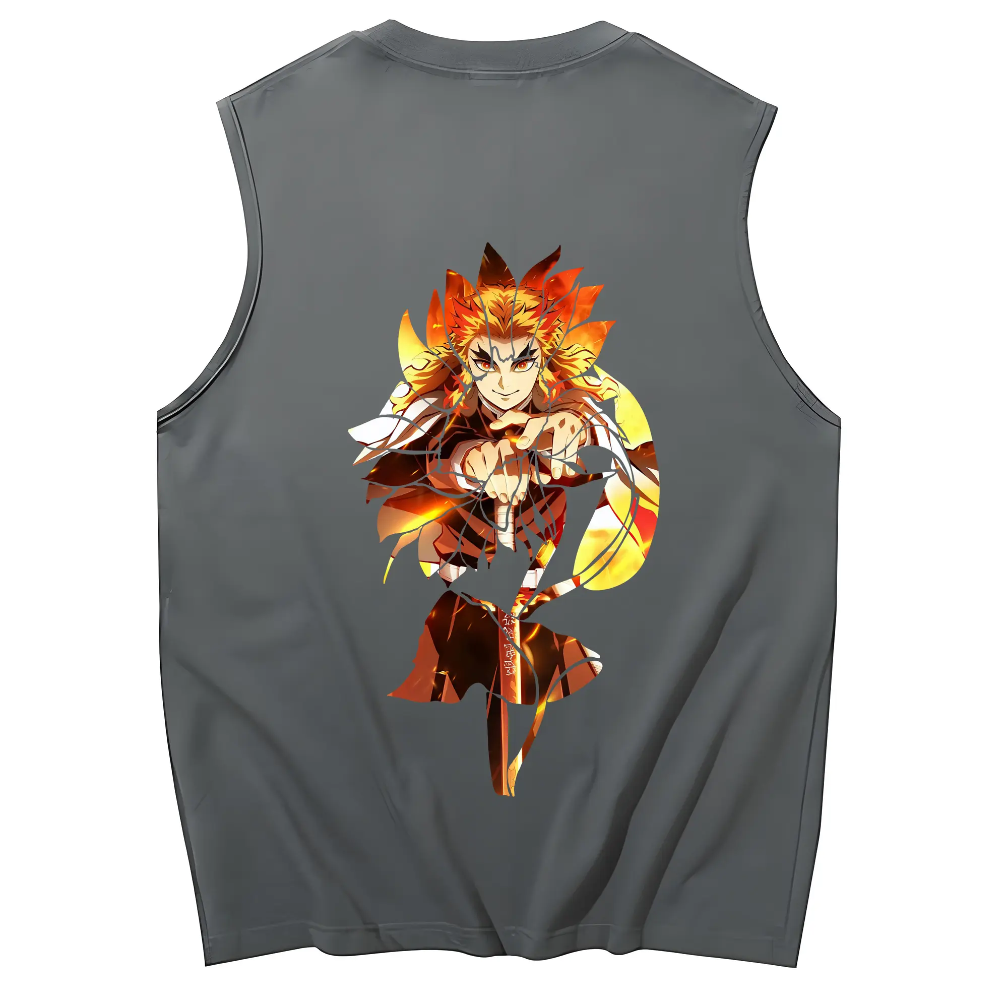 鬼滅の刃 グッズ,煉獄 杏寿郎 - コットン100% タンクトップ ・ 背面プリント ・ タイトシルエット ・ 快適 通気性 ・ スポーツ カジュアル 散歩用
