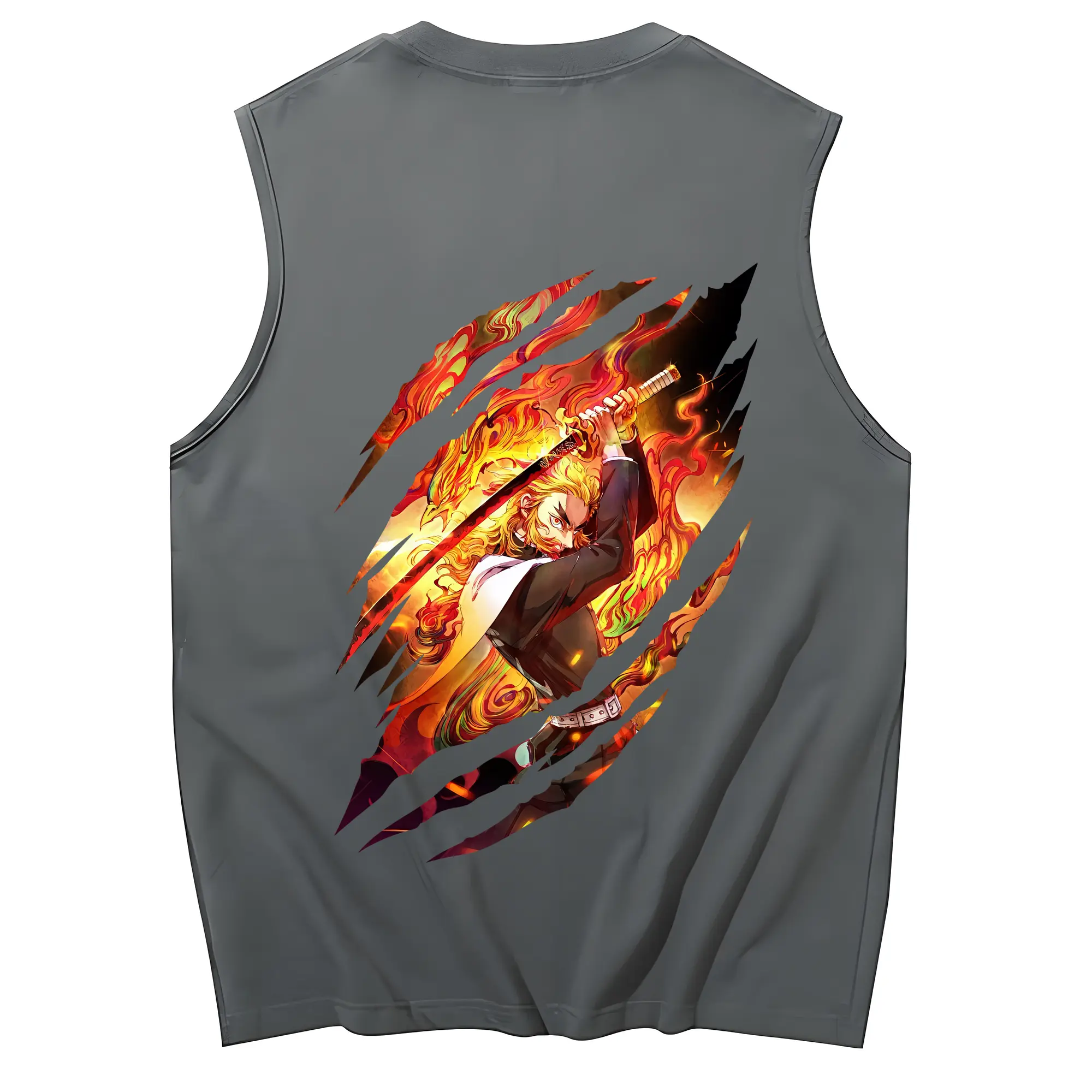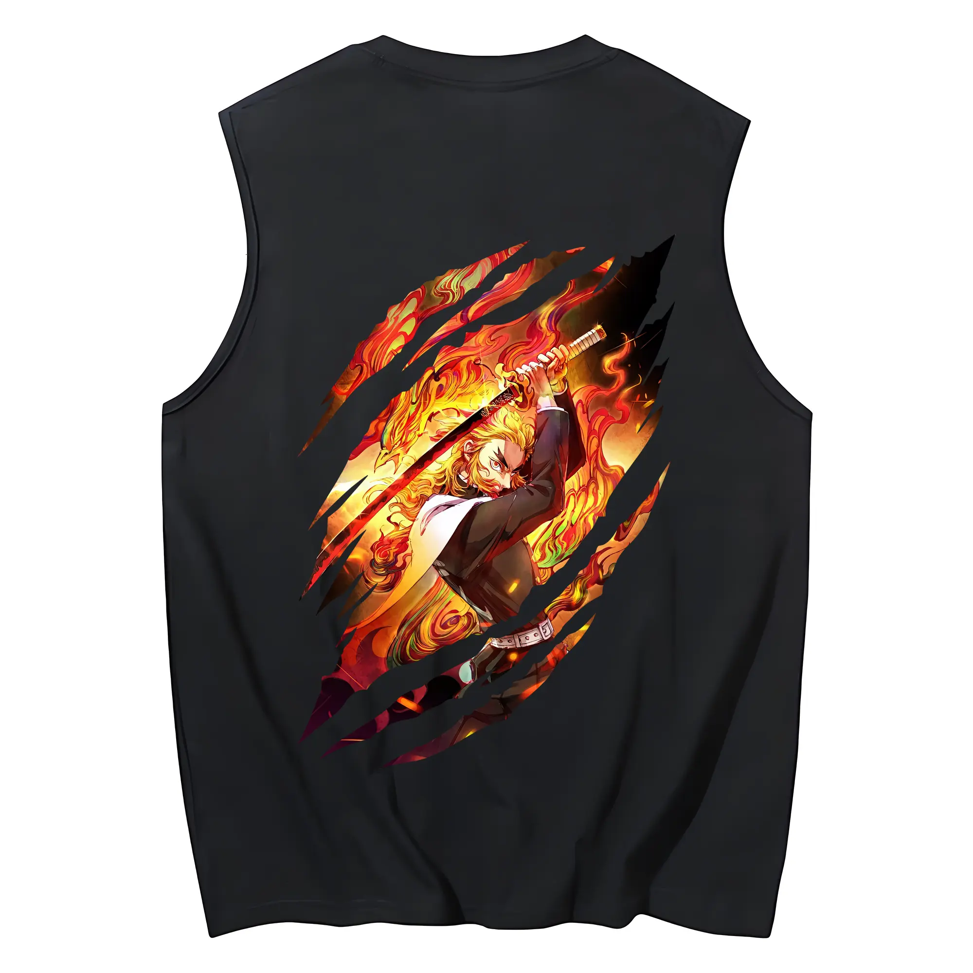 鬼滅の刃 グッズ,煉獄 杏寿郎 - コットン100% タンクトップ ・ 背面プリント ・ タイトシルエット ・ 快適 通気性 ・ スポーツ カジュアル 散歩用