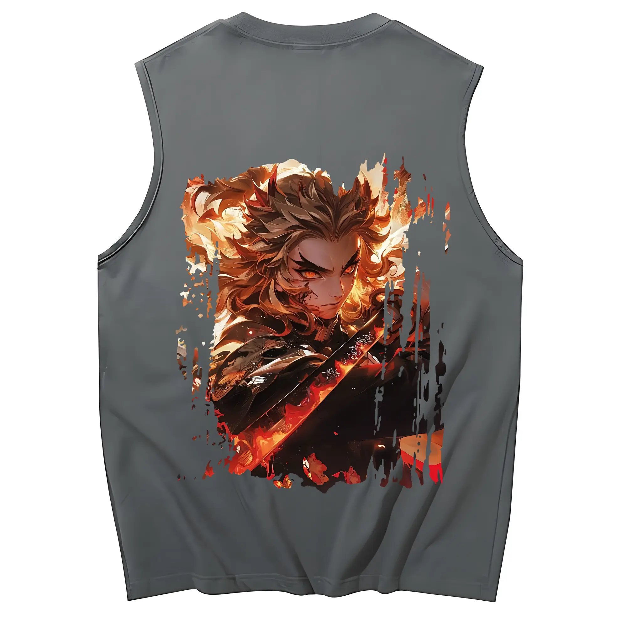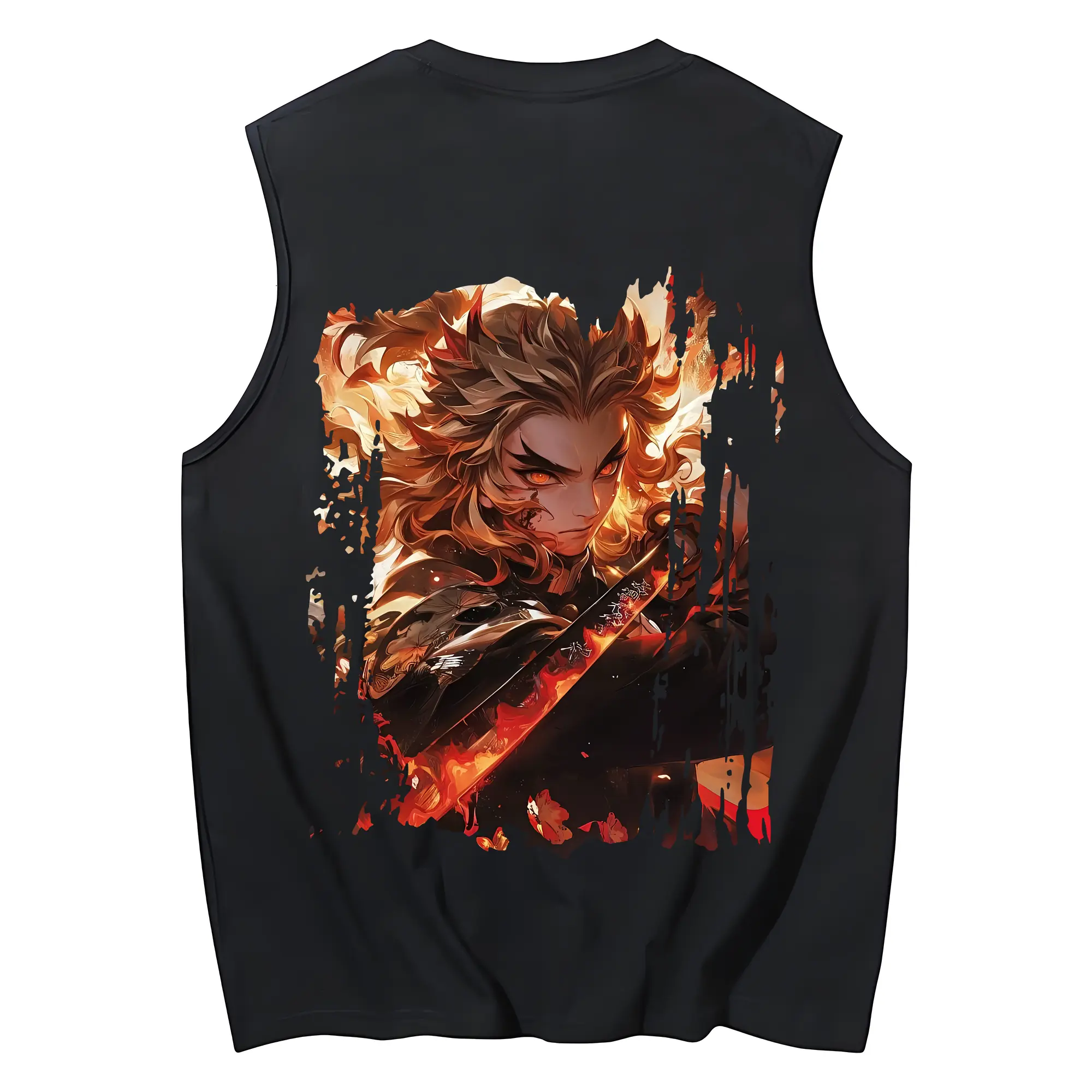 鬼滅の刃 グッズ,煉獄 杏寿郎 - コットン100% タンクトップ ・ 背面プリント ・ タイトシルエット ・ 快適 通気性 ・ スポーツ カジュアル 散歩用