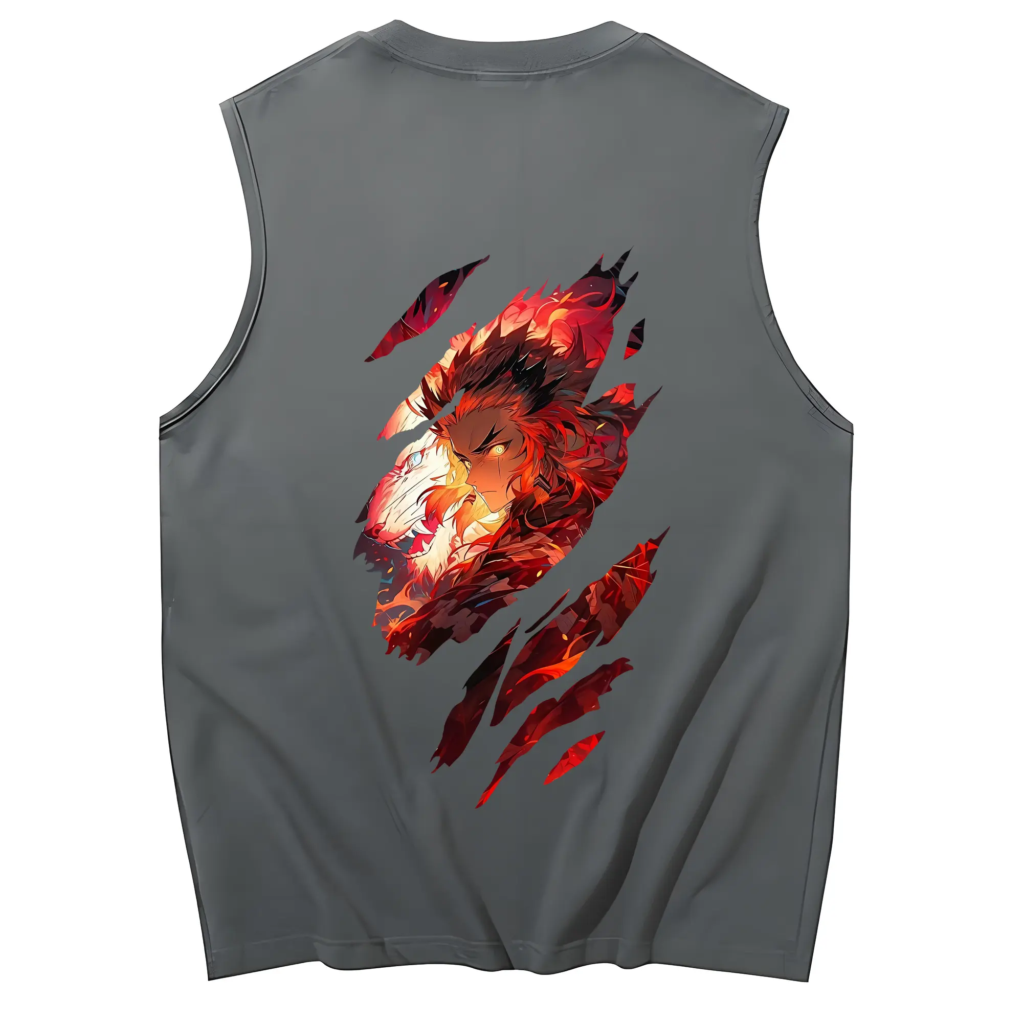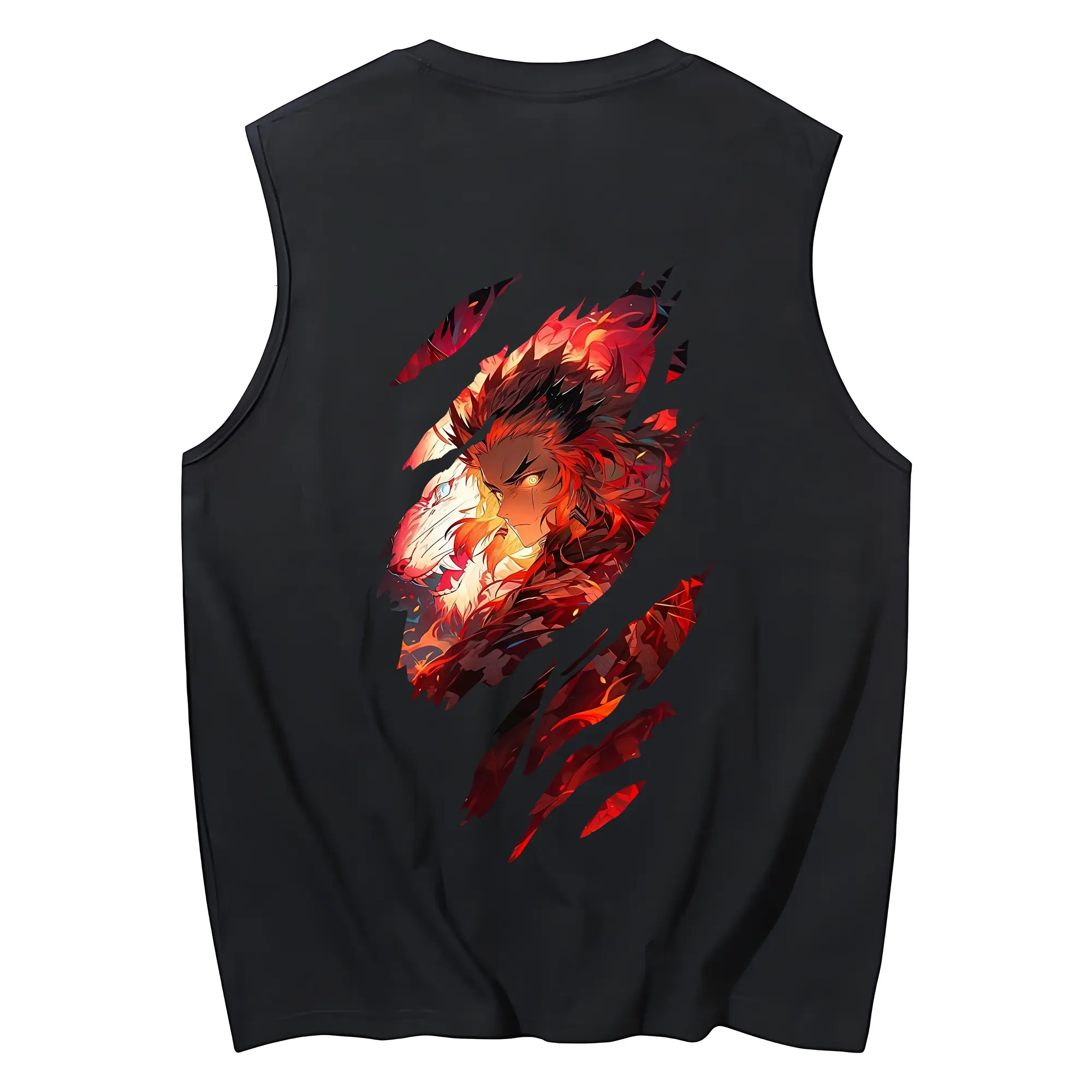 鬼滅の刃 グッズ,煉獄 杏寿郎 - コットン100% タンクトップ ・ 背面プリント ・ タイトシルエット ・ 快適 通気性 ・ スポーツ カジュアル 散歩用