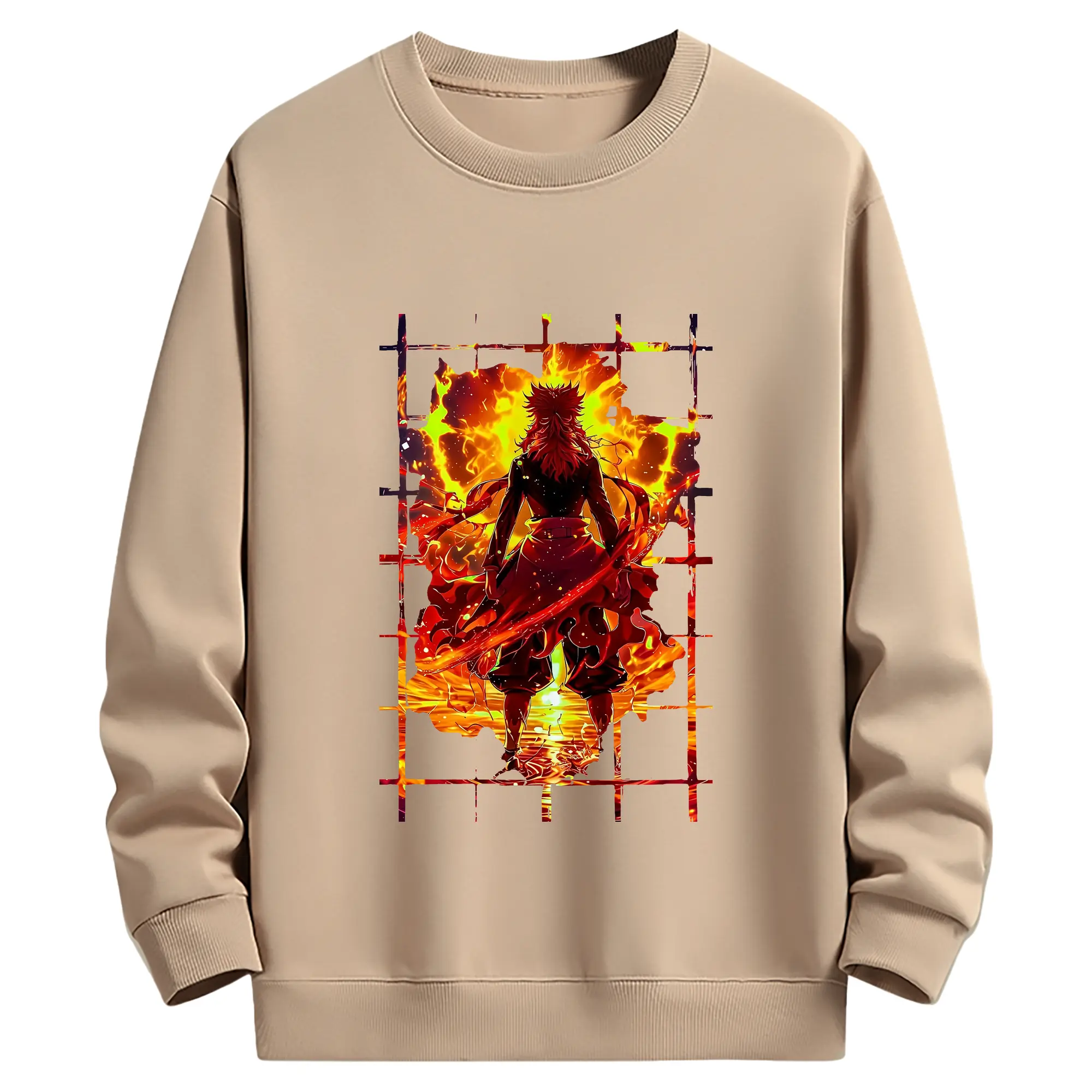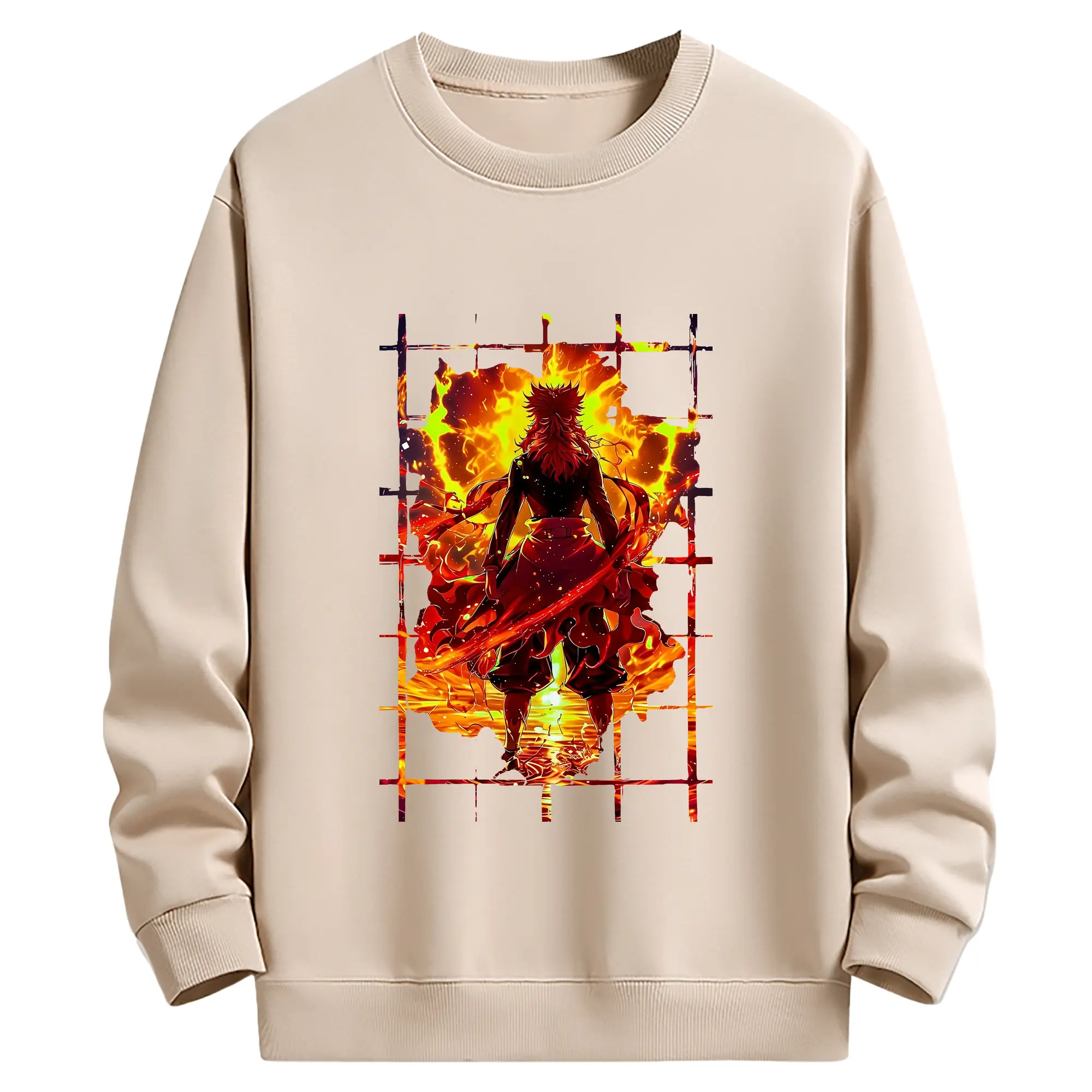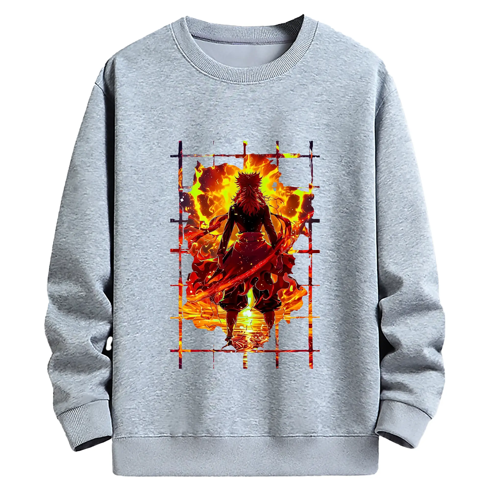 鬼滅の刃 グッズ,煉獄 杏寿郎 - 薄手 クルーネック スウェット 裏毛260g · ポリエステル 春秋向け カジュアル 男女兼用 · トレーナー デイリー スポーツ 散歩に最適
