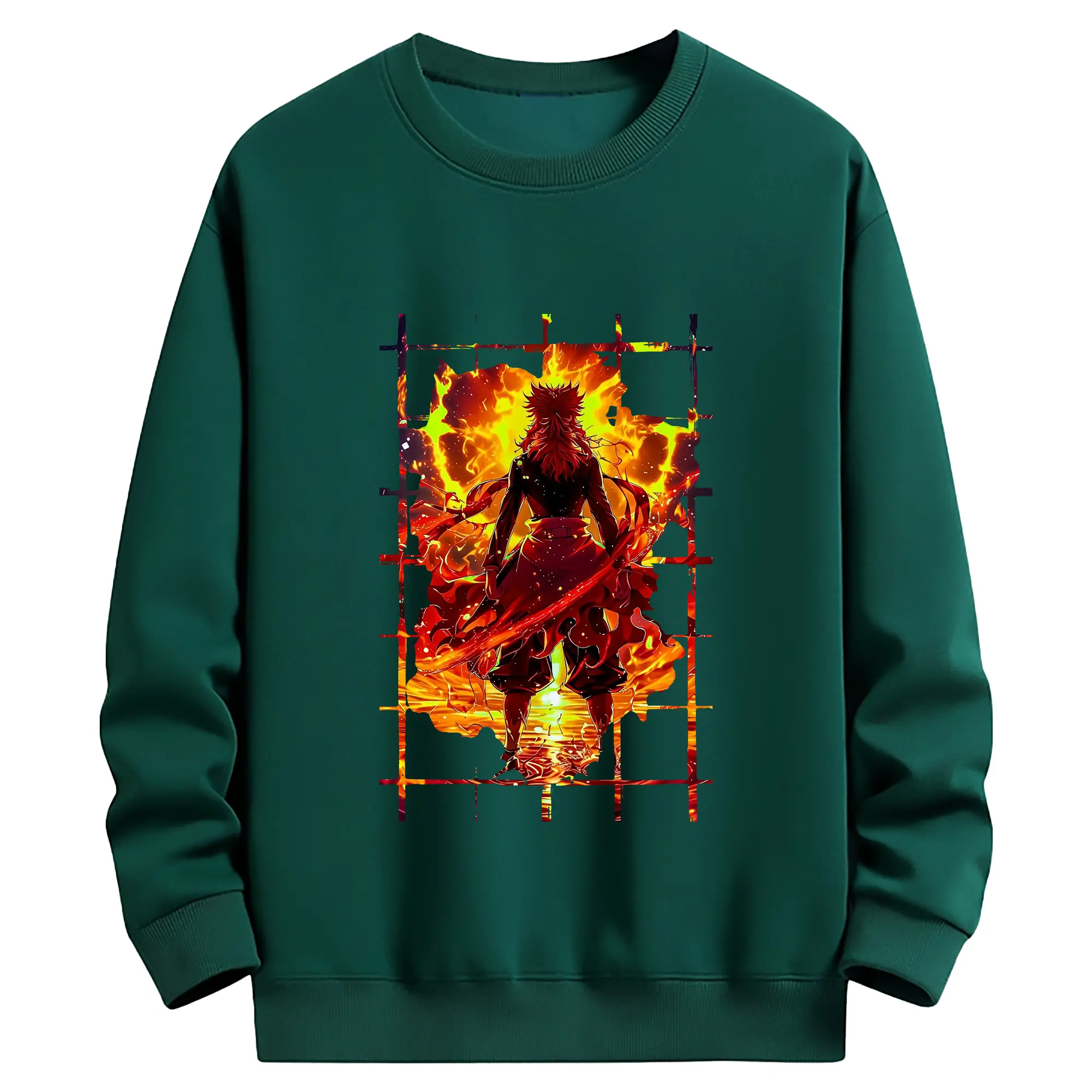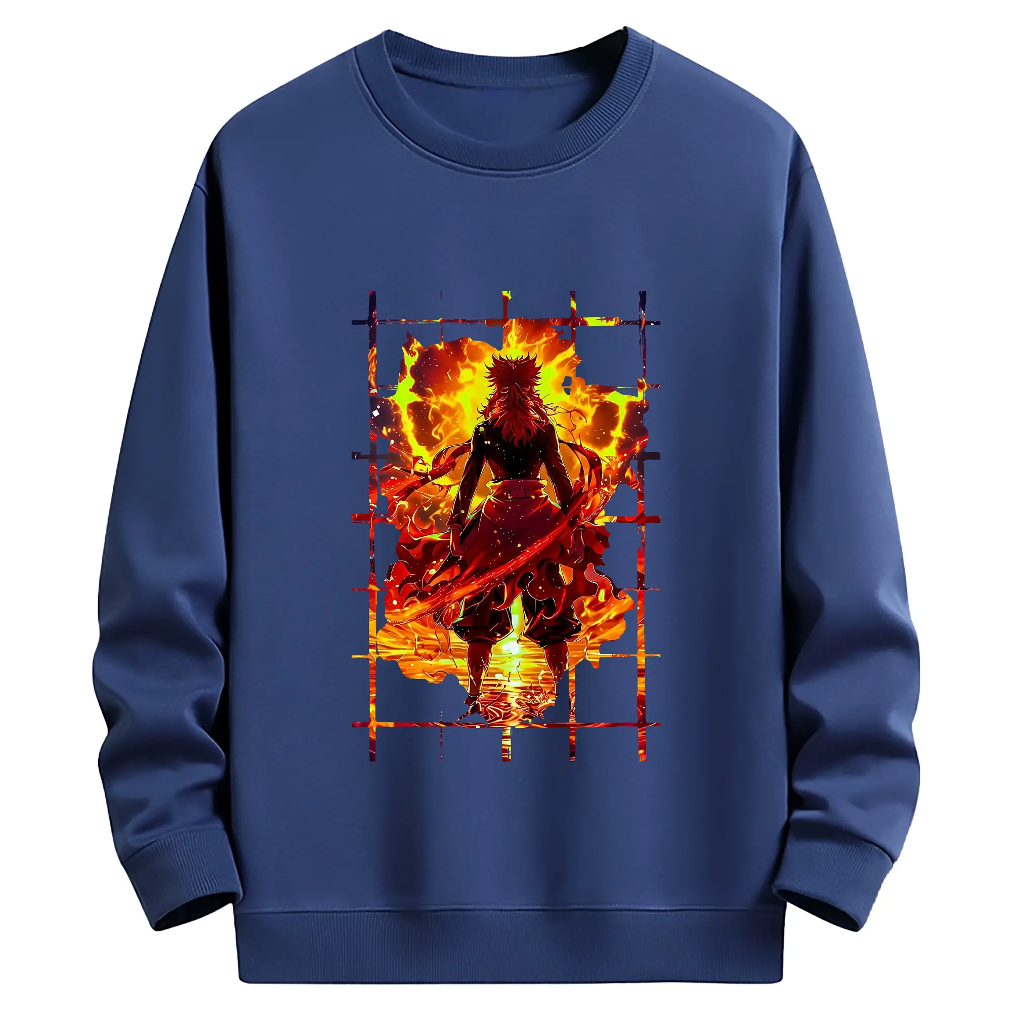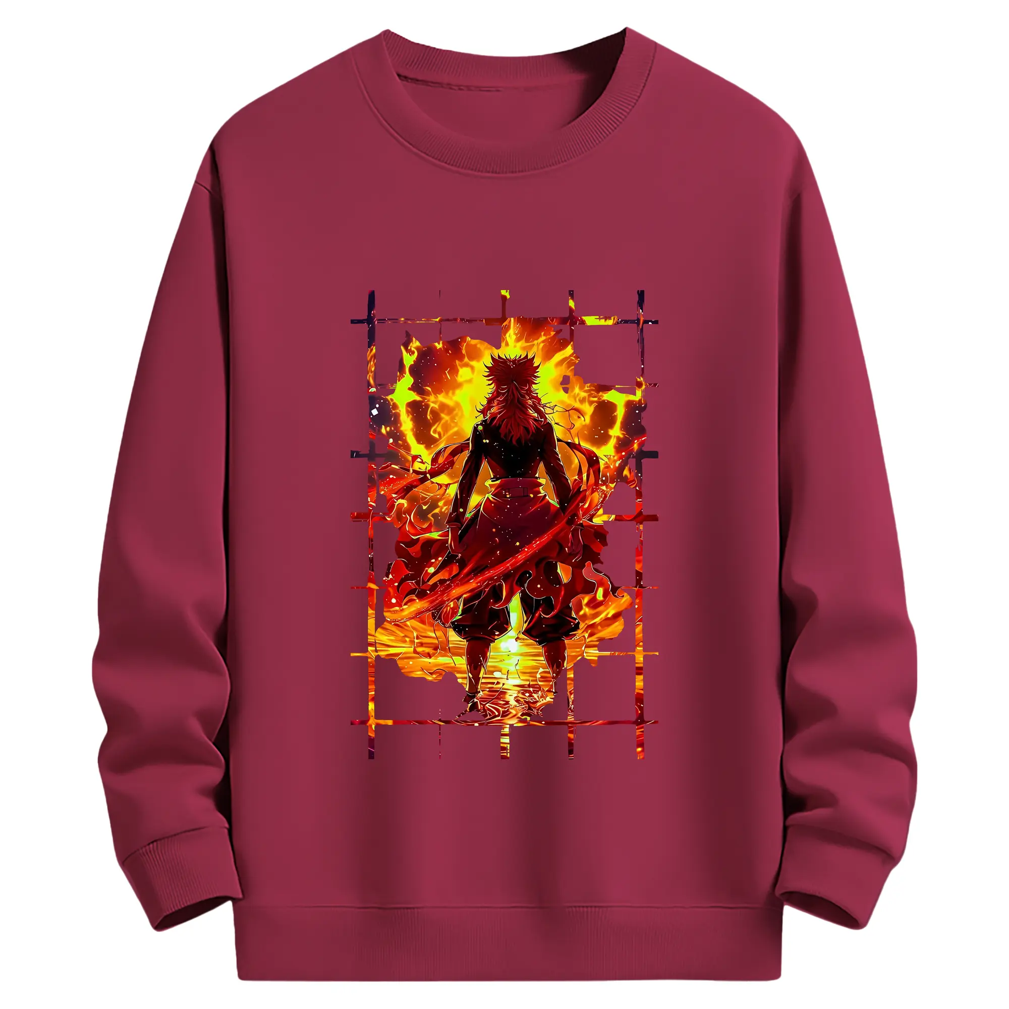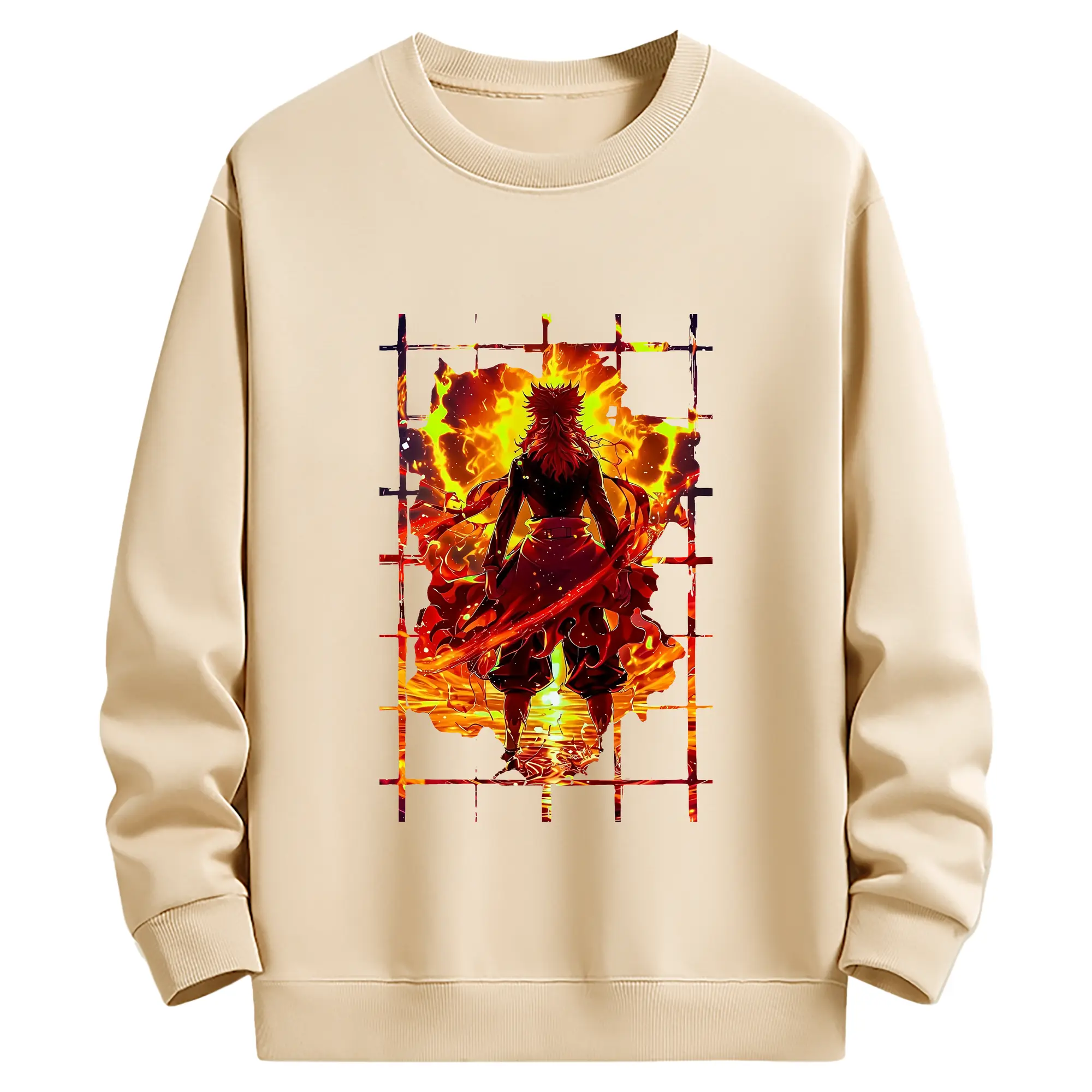 鬼滅の刃 グッズ,煉獄 杏寿郎 - 薄手 クルーネック スウェット 裏毛260g · ポリエステル 春秋向け カジュアル 男女兼用 · トレーナー デイリー スポーツ 散歩に最適