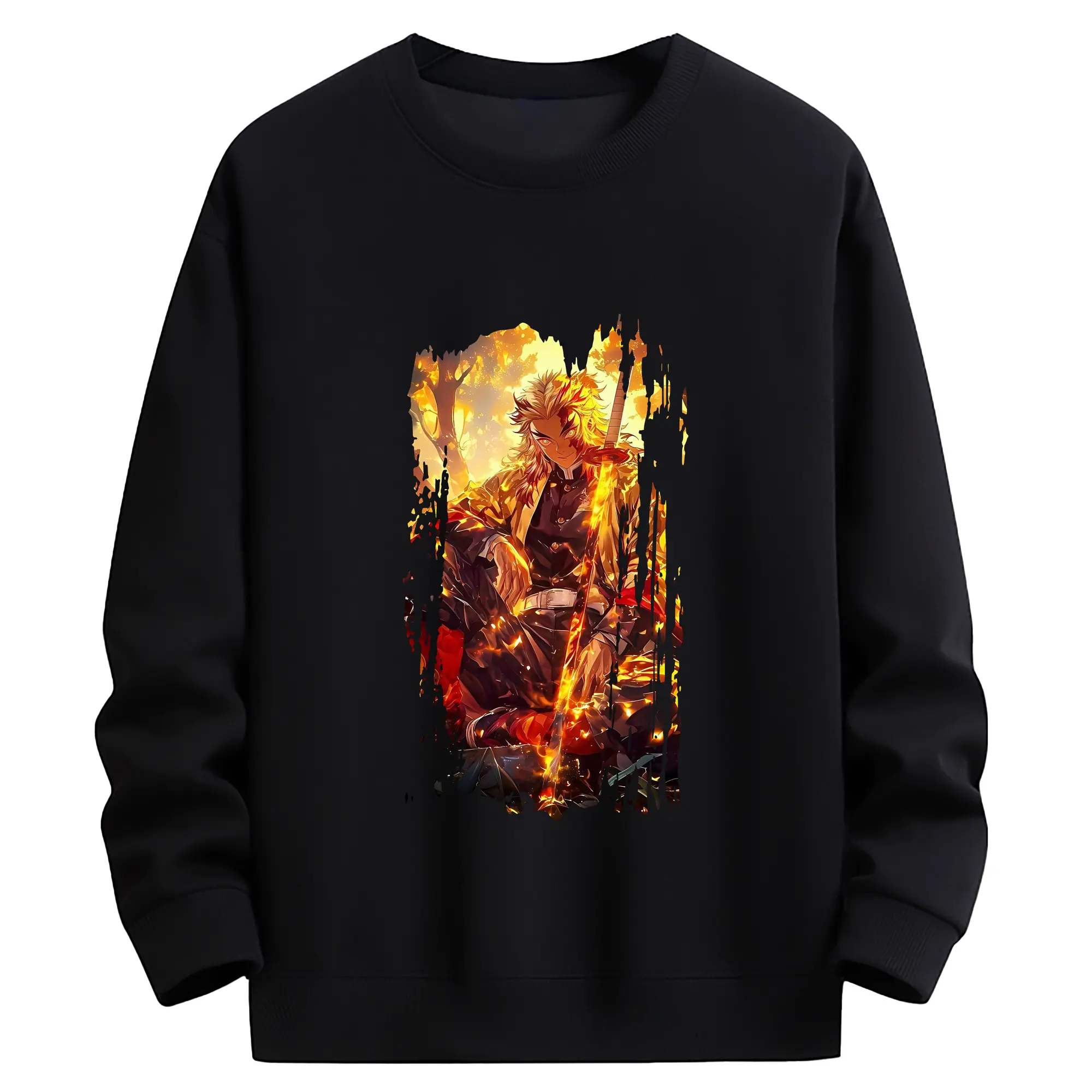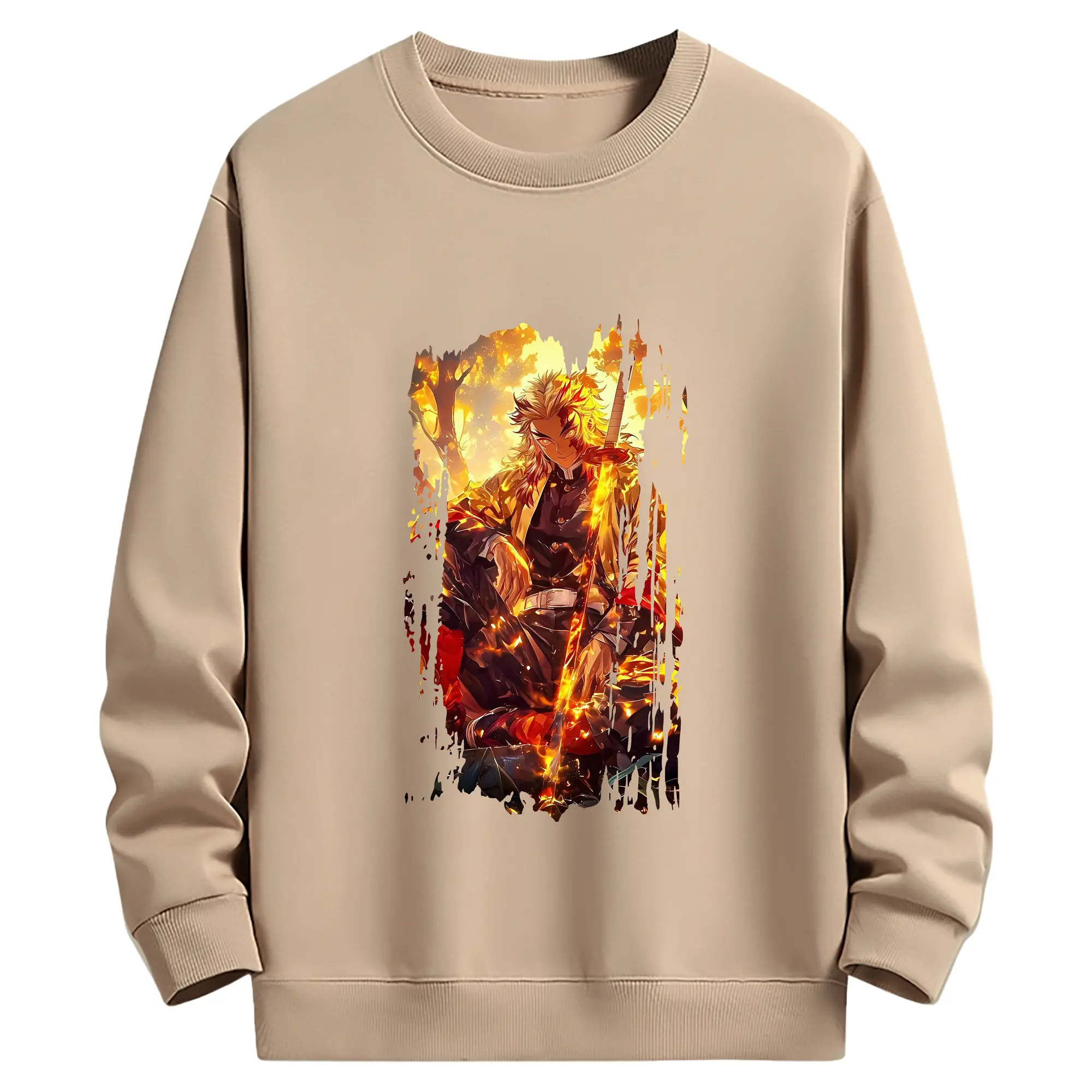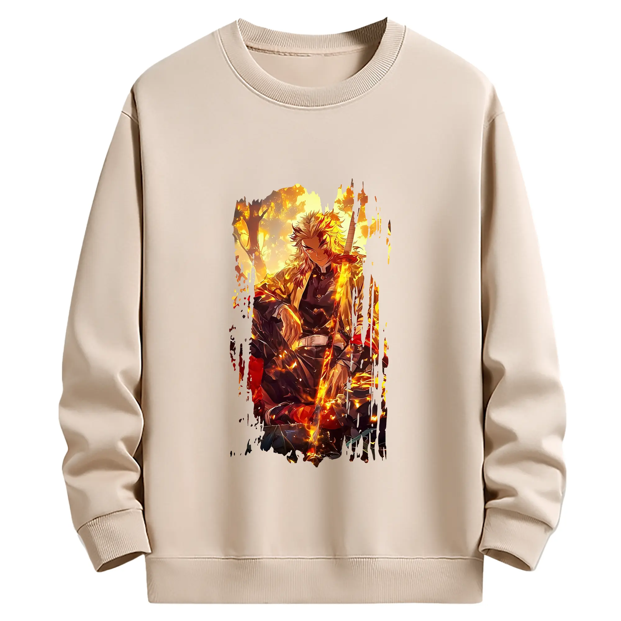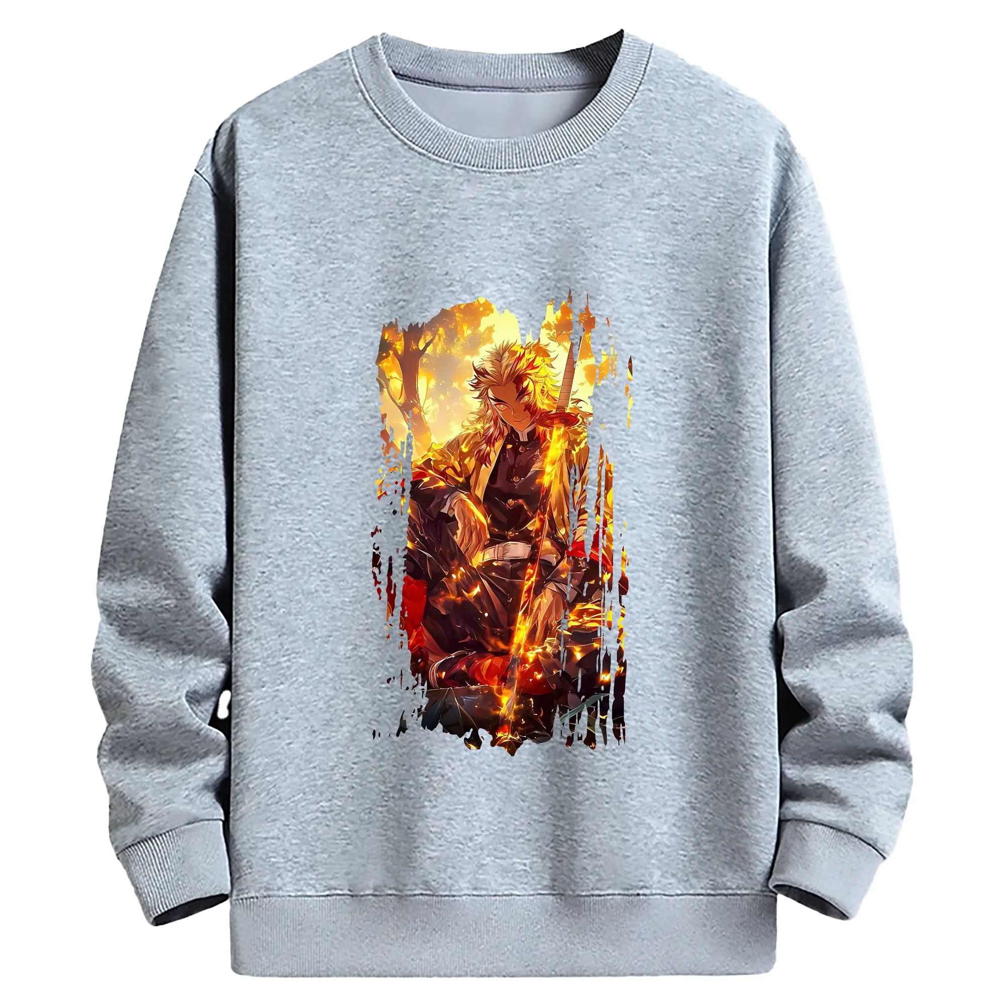 鬼滅の刃 グッズ,煉獄 杏寿郎 - 薄手 クルーネック スウェット 裏毛260g · ポリエステル 春秋向け カジュアル 男女兼用 · トレーナー デイリー スポーツ 散歩に最適