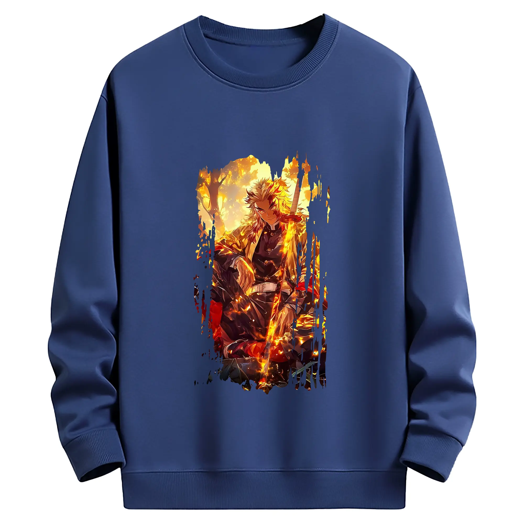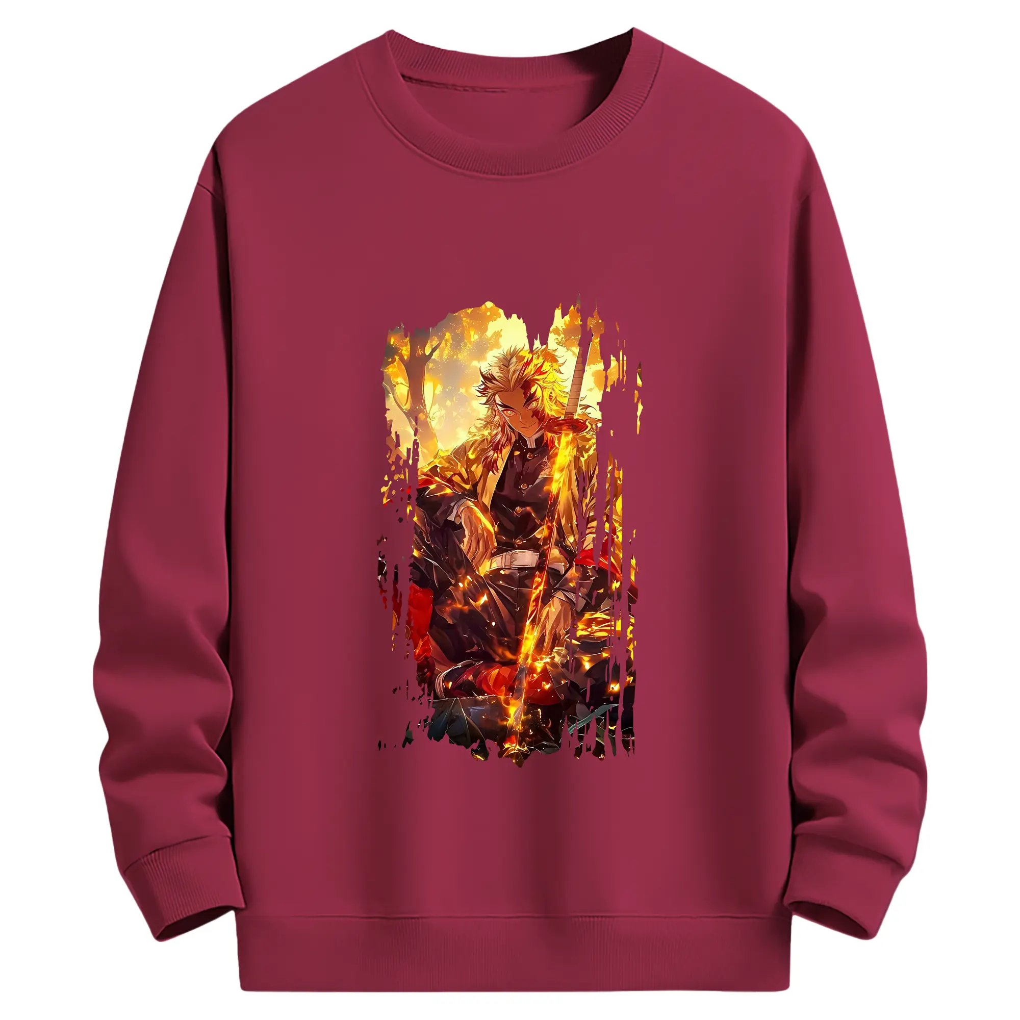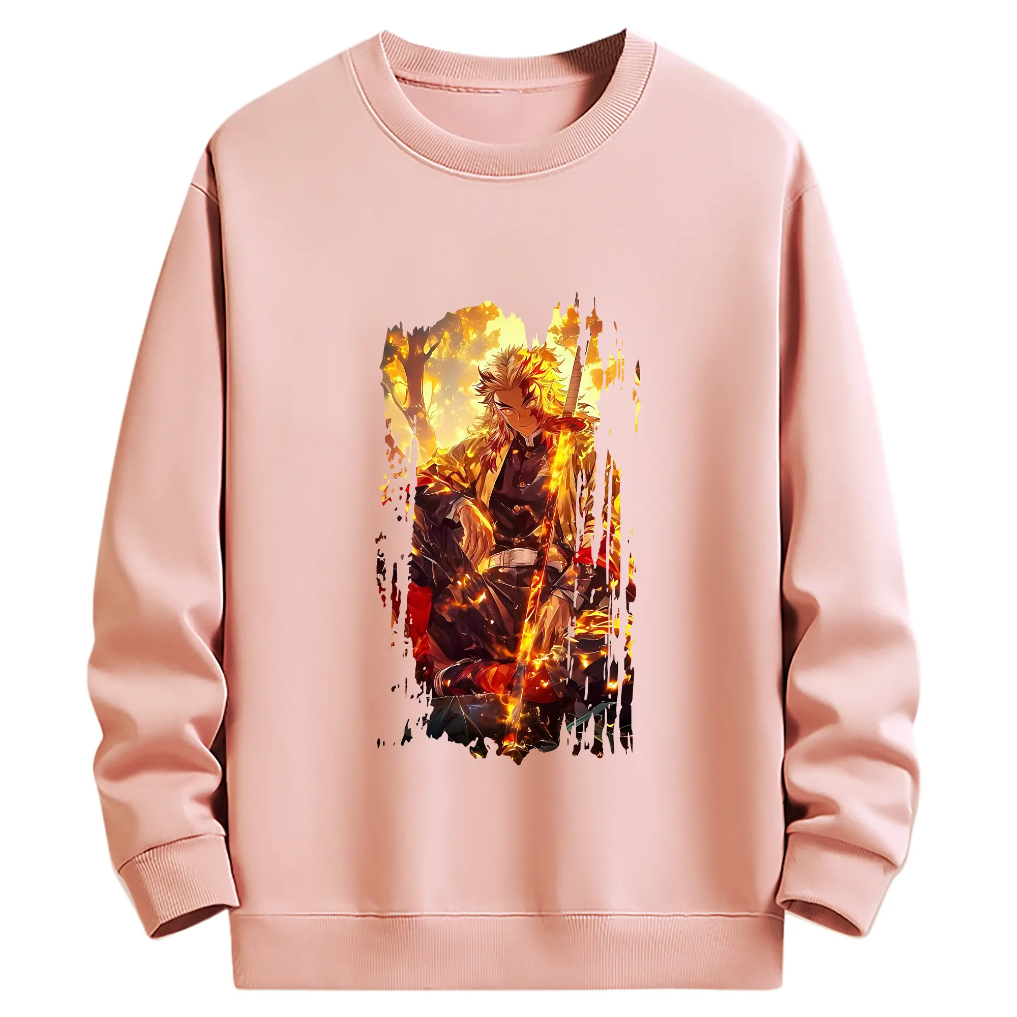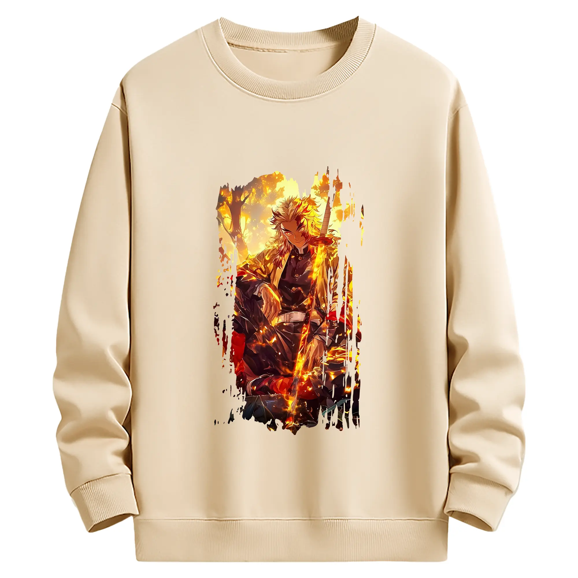 鬼滅の刃 グッズ,煉獄 杏寿郎 - 薄手 クルーネック スウェット 裏毛260g · ポリエステル 春秋向け カジュアル 男女兼用 · トレーナー デイリー スポーツ 散歩に最適