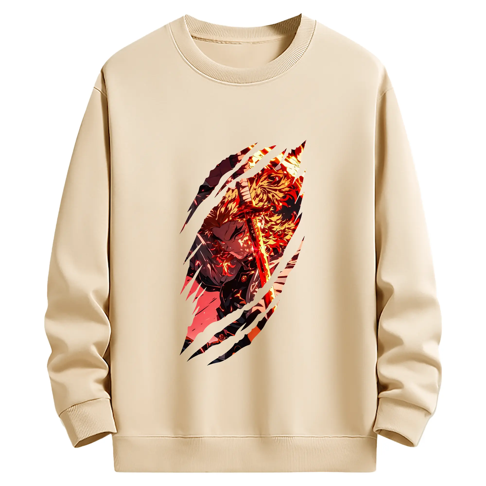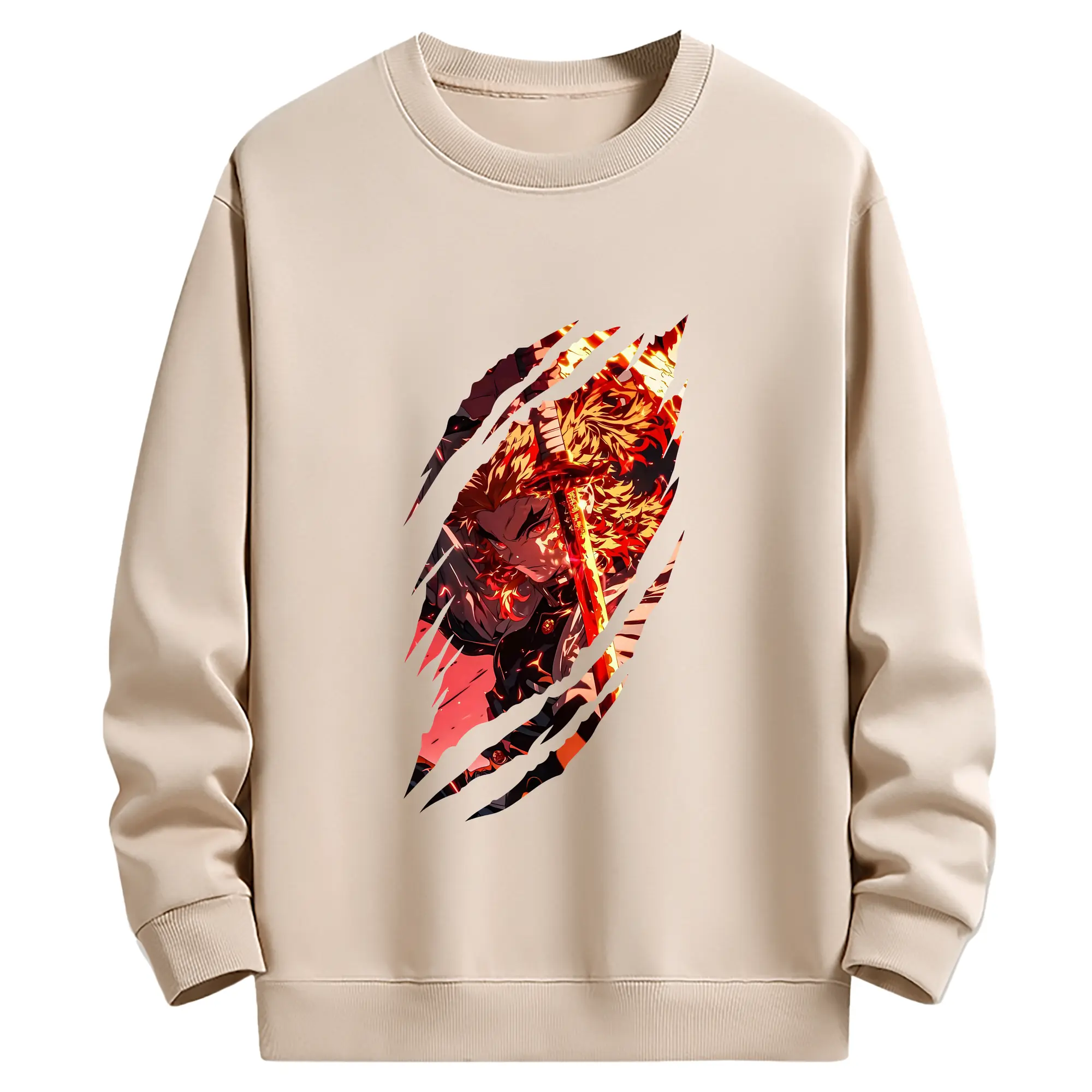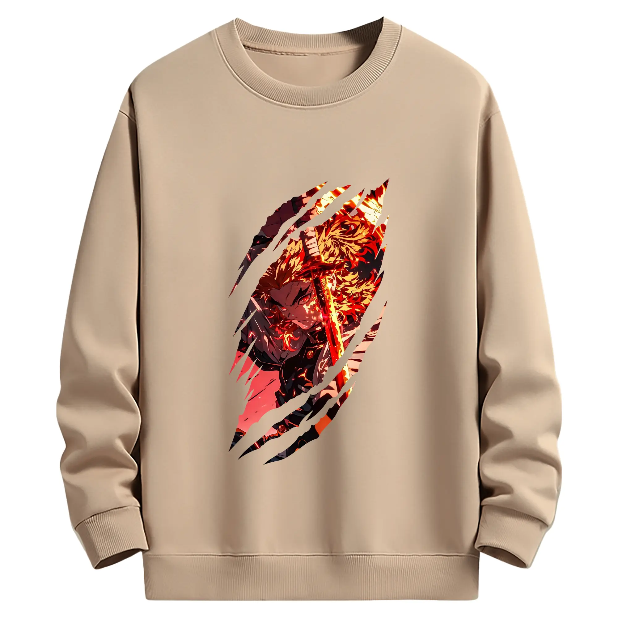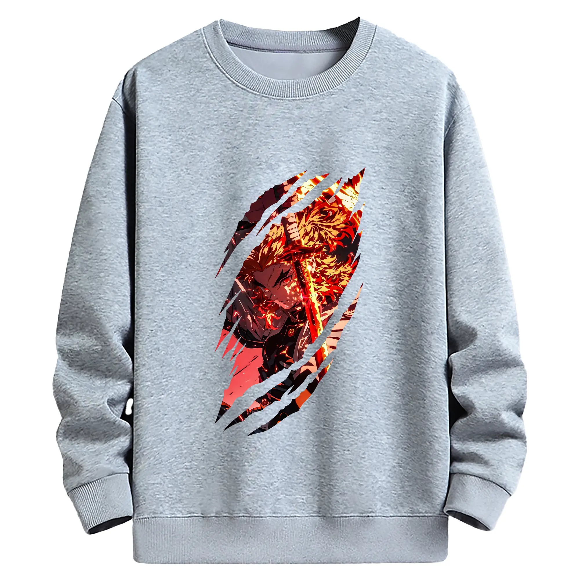 鬼滅の刃 グッズ,煉獄 杏寿郎 - 薄手 クルーネック スウェット 裏毛260g · ポリエステル 春秋向け カジュアル 男女兼用 · トレーナー デイリー スポーツ 散歩に最適