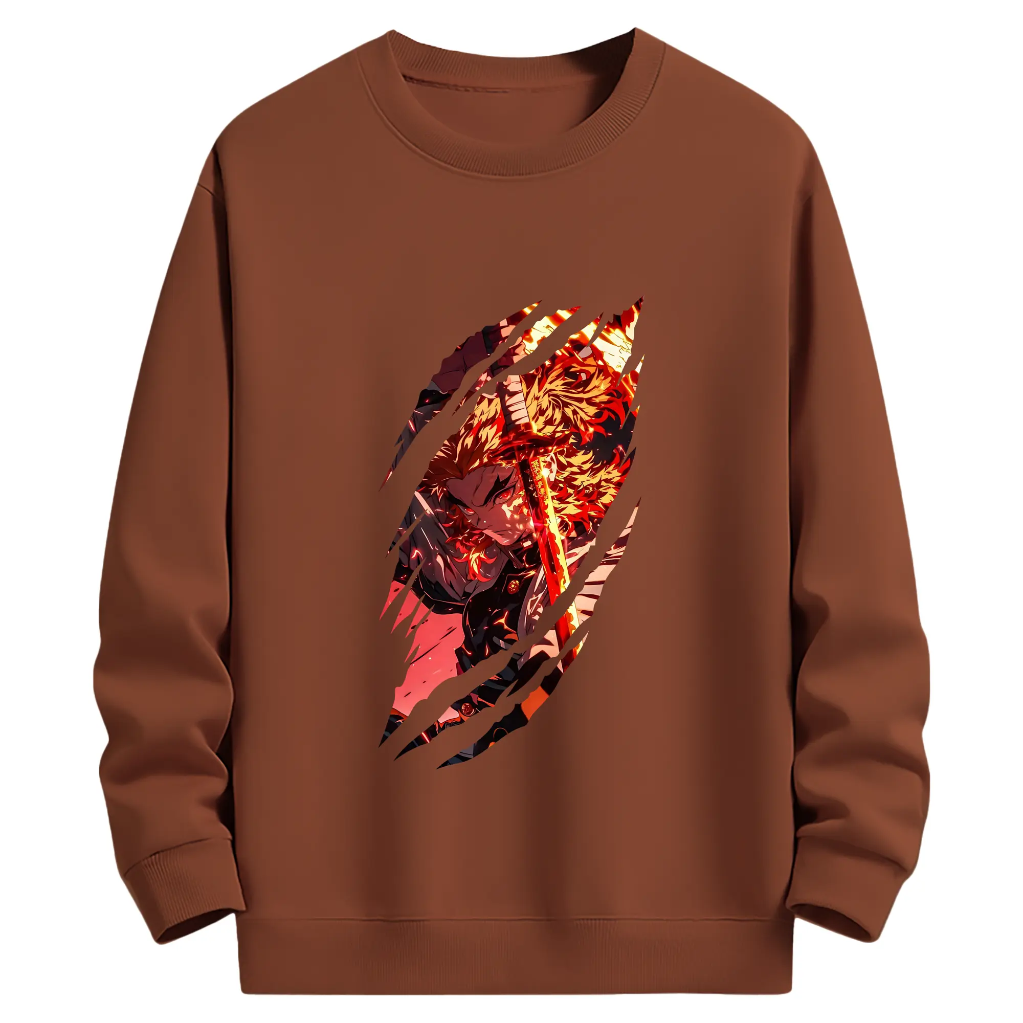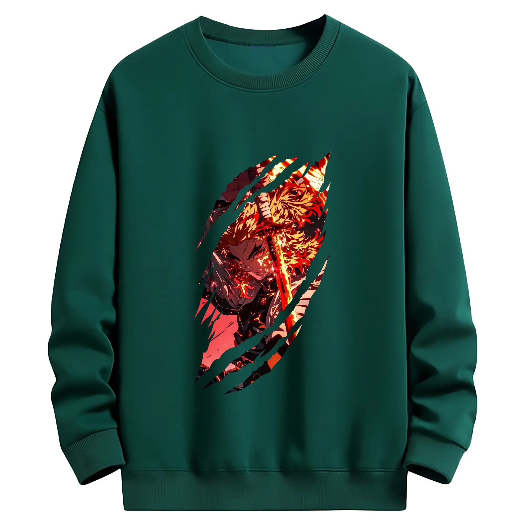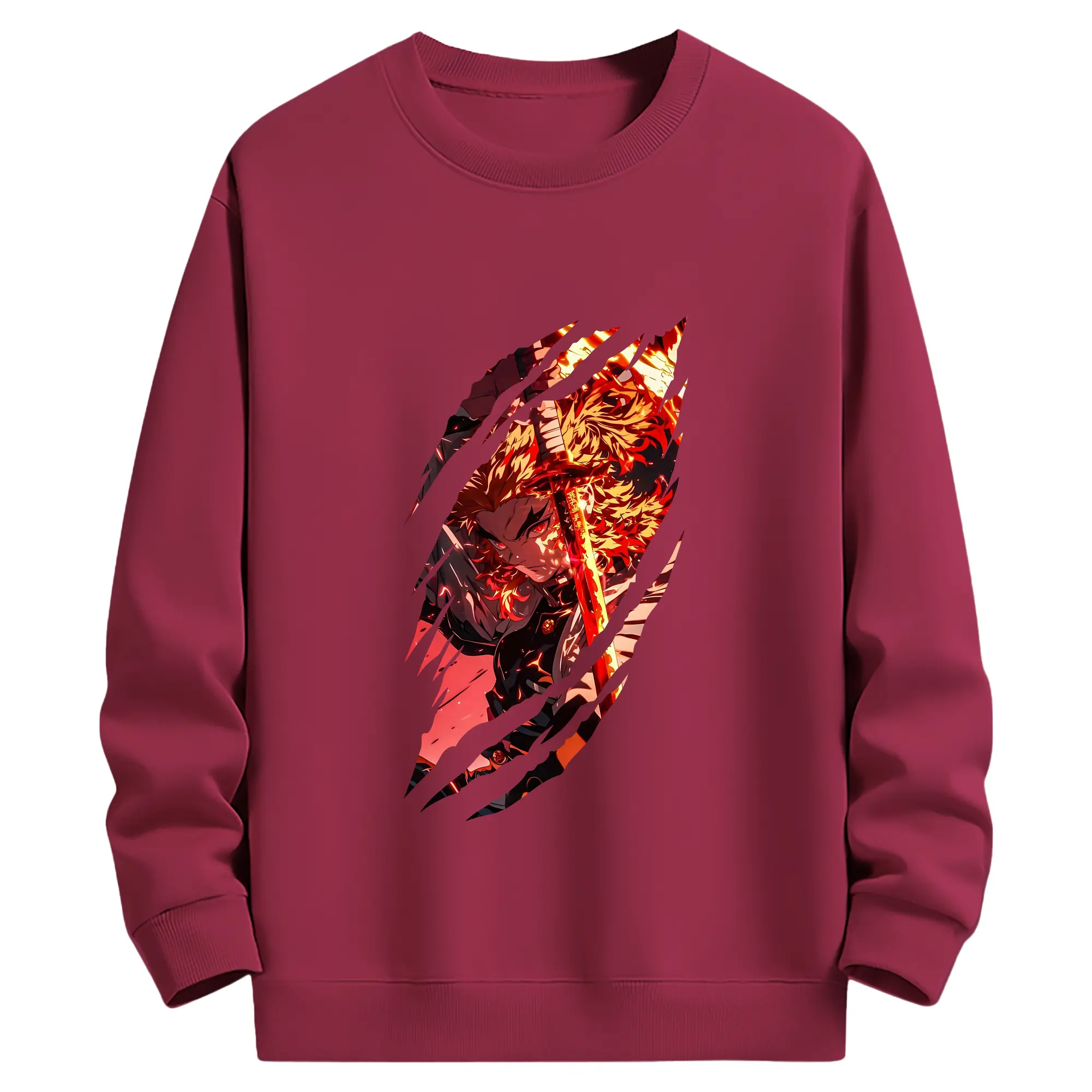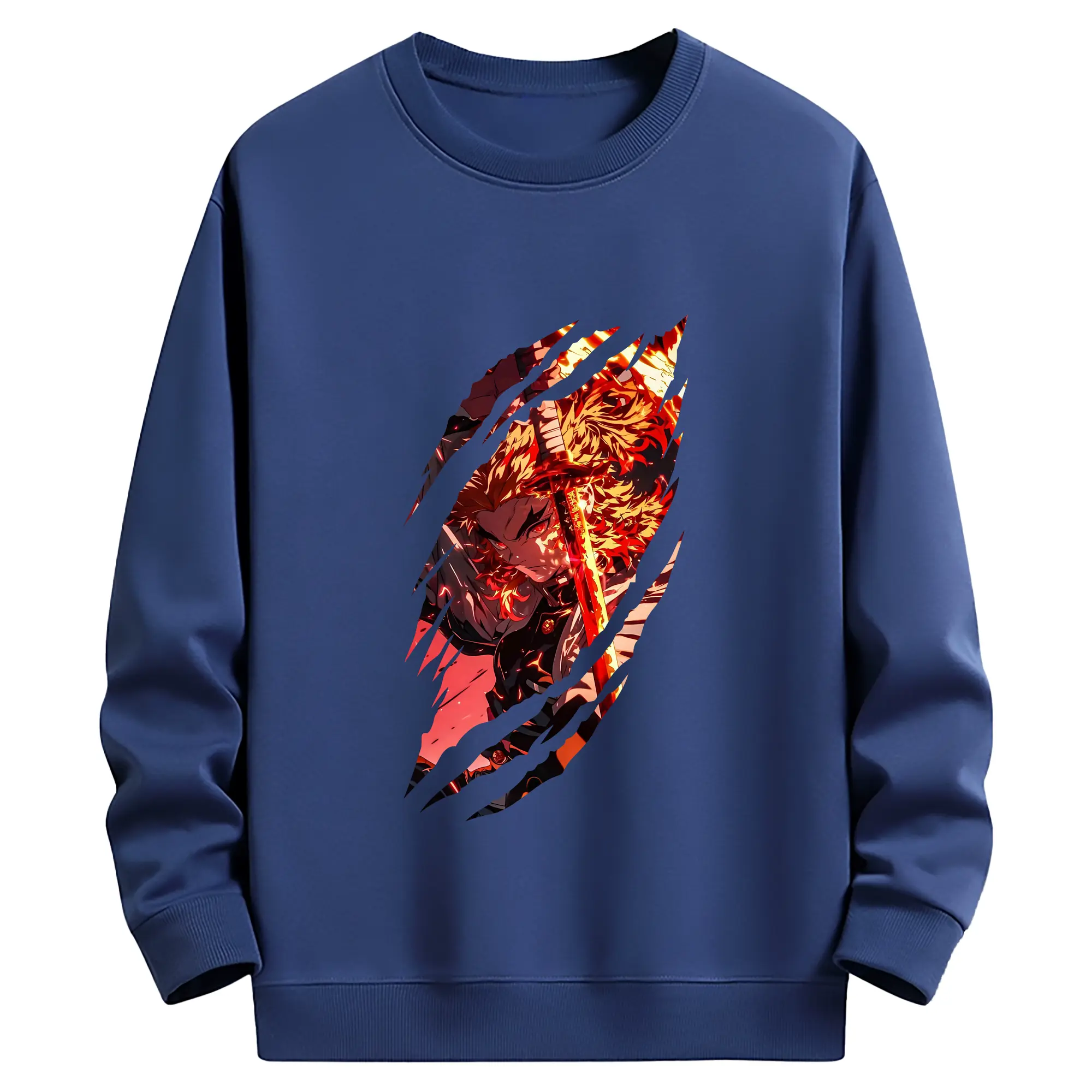 鬼滅の刃 グッズ,煉獄 杏寿郎 - 薄手 クルーネック スウェット 裏毛260g · ポリエステル 春秋向け カジュアル 男女兼用 · トレーナー デイリー スポーツ 散歩に最適