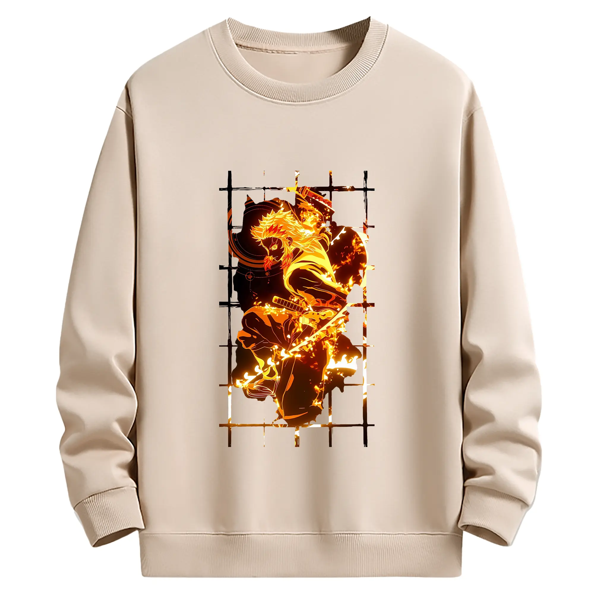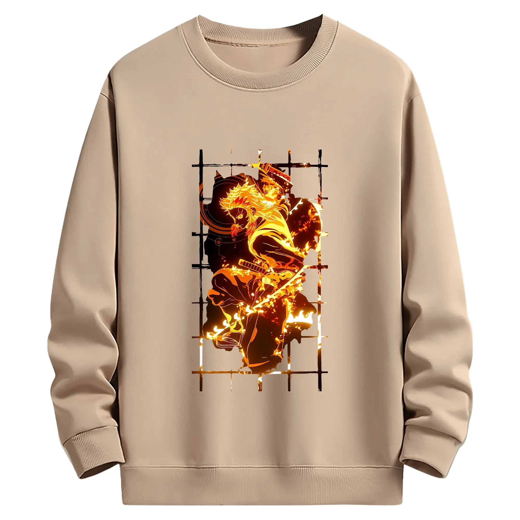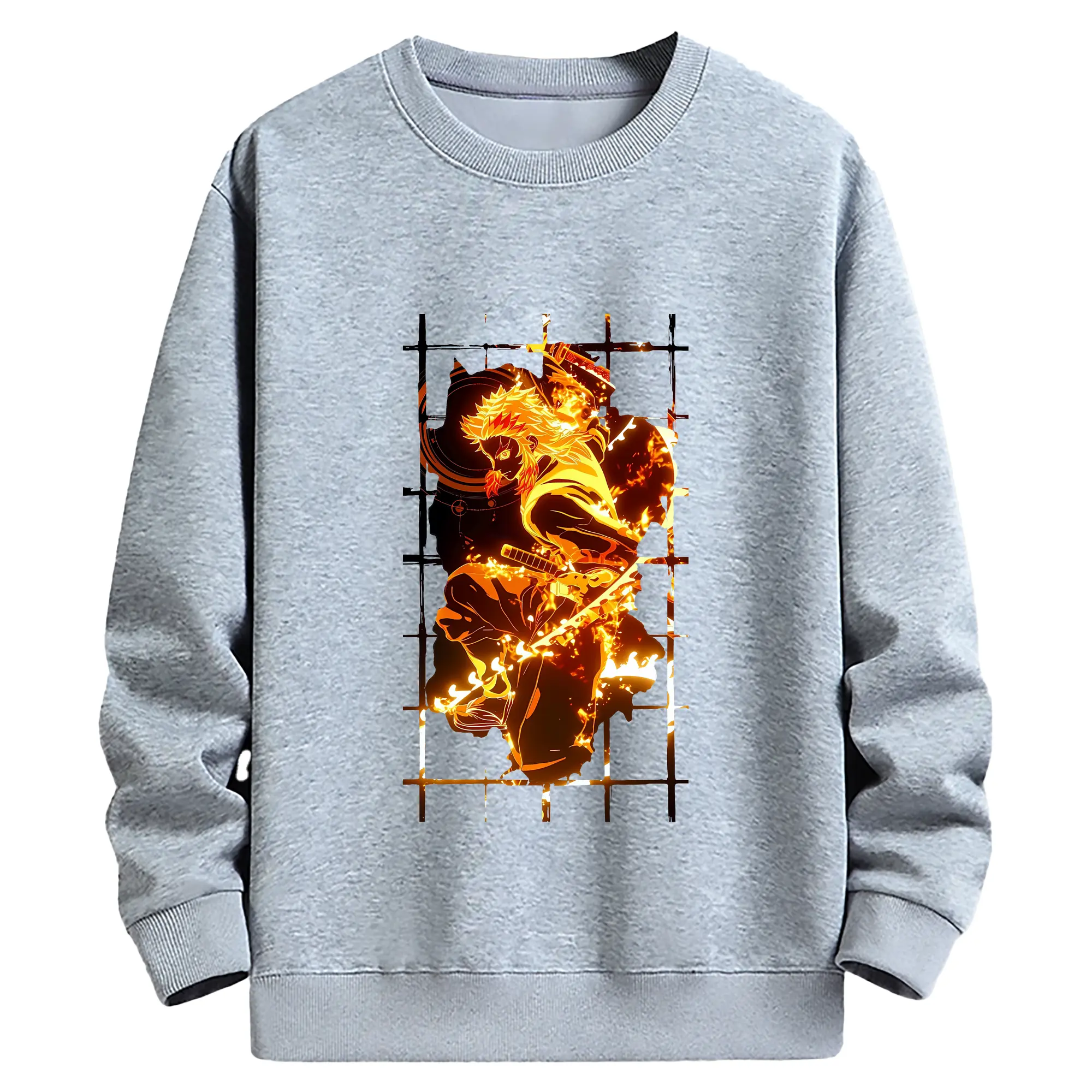鬼滅の刃 グッズ,煉獄 杏寿郎 - 薄手 クルーネック スウェット 裏毛260g · ポリエステル 春秋向け カジュアル 男女兼用 · トレーナー デイリー スポーツ 散歩に最適