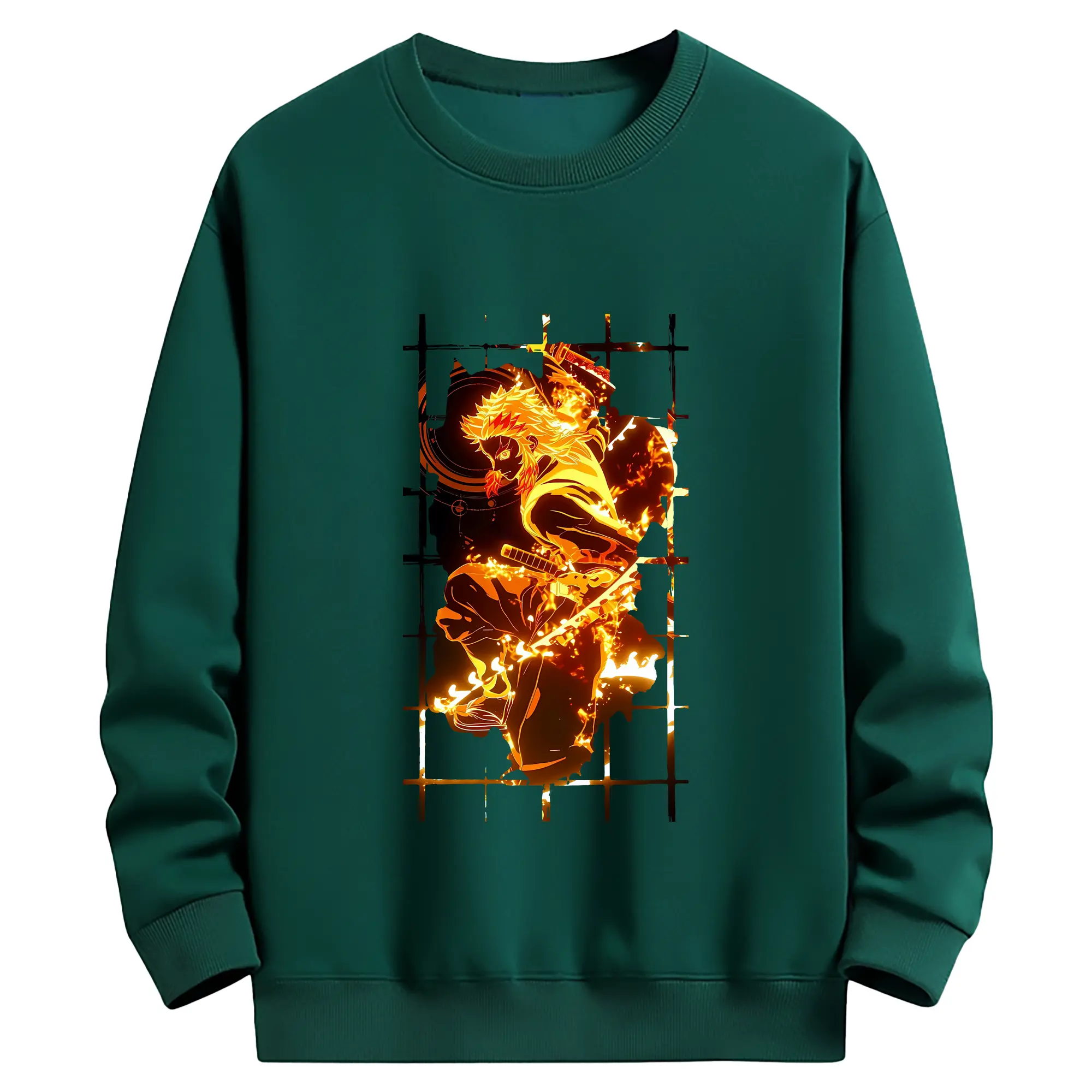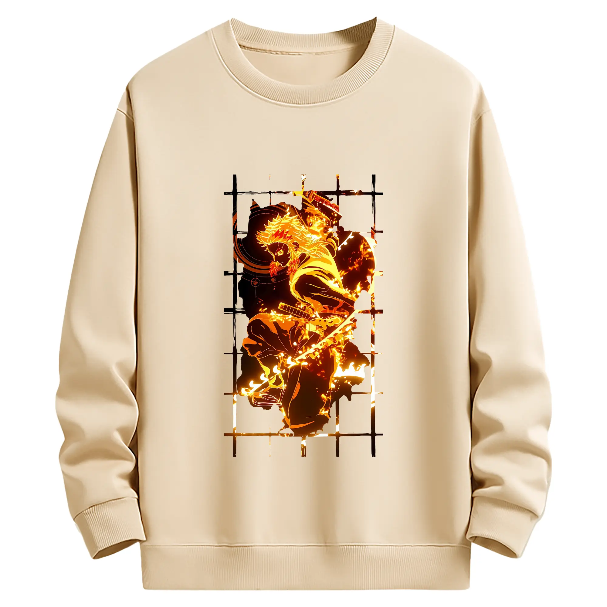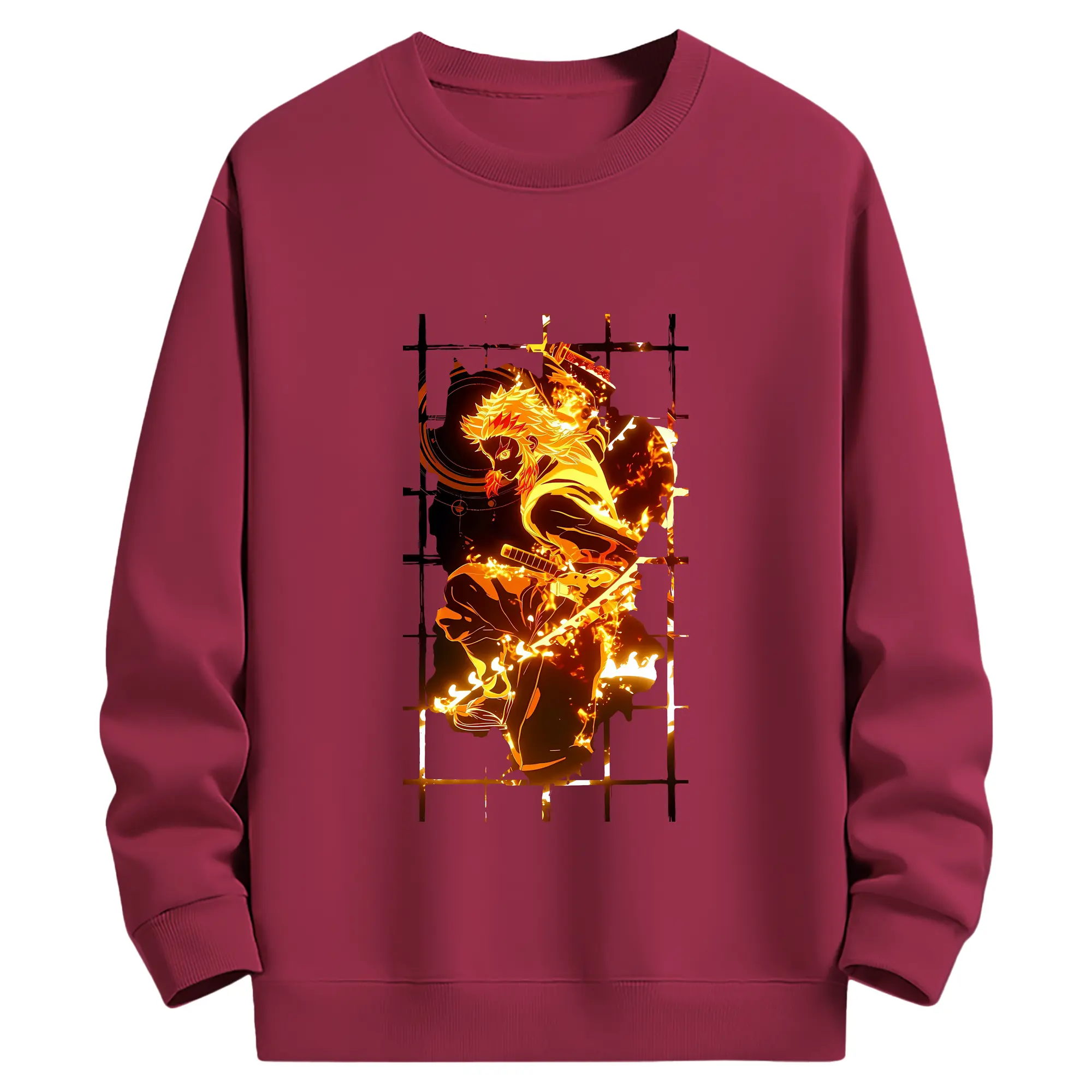 鬼滅の刃 グッズ,煉獄 杏寿郎 - 薄手 クルーネック スウェット 裏毛260g · ポリエステル 春秋向け カジュアル 男女兼用 · トレーナー デイリー スポーツ 散歩に最適