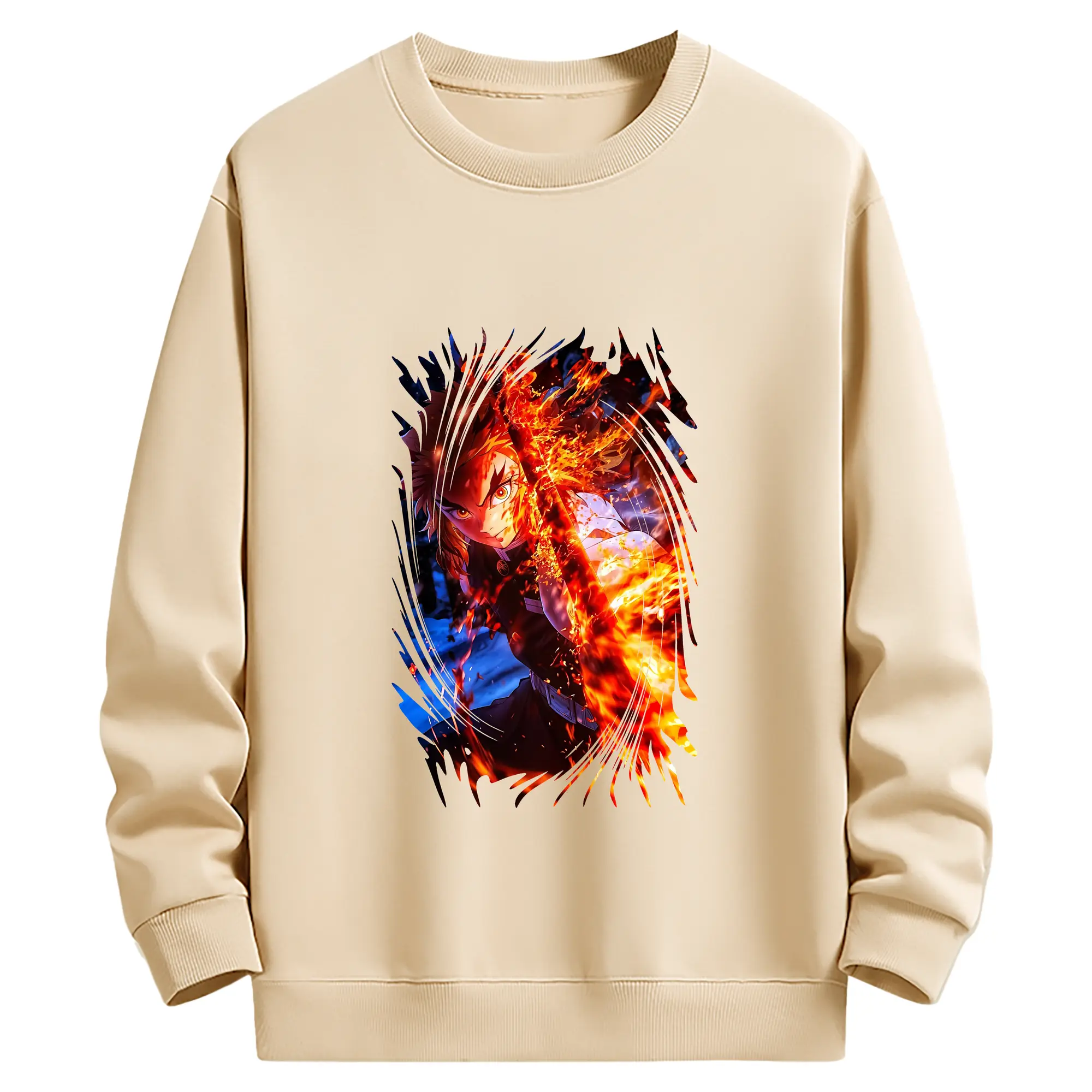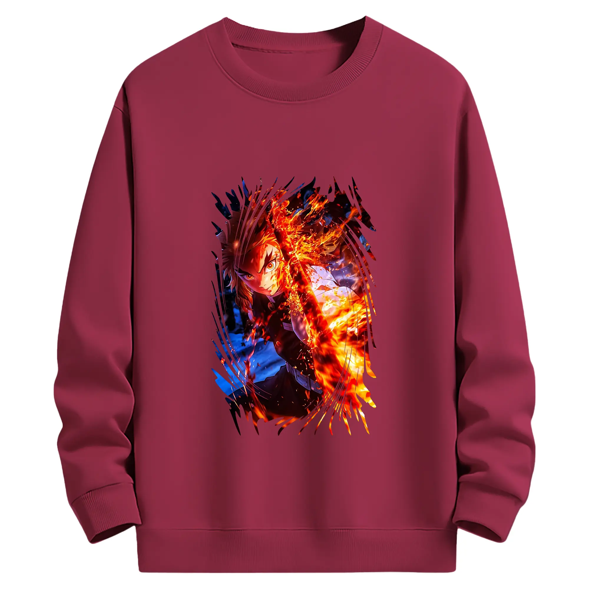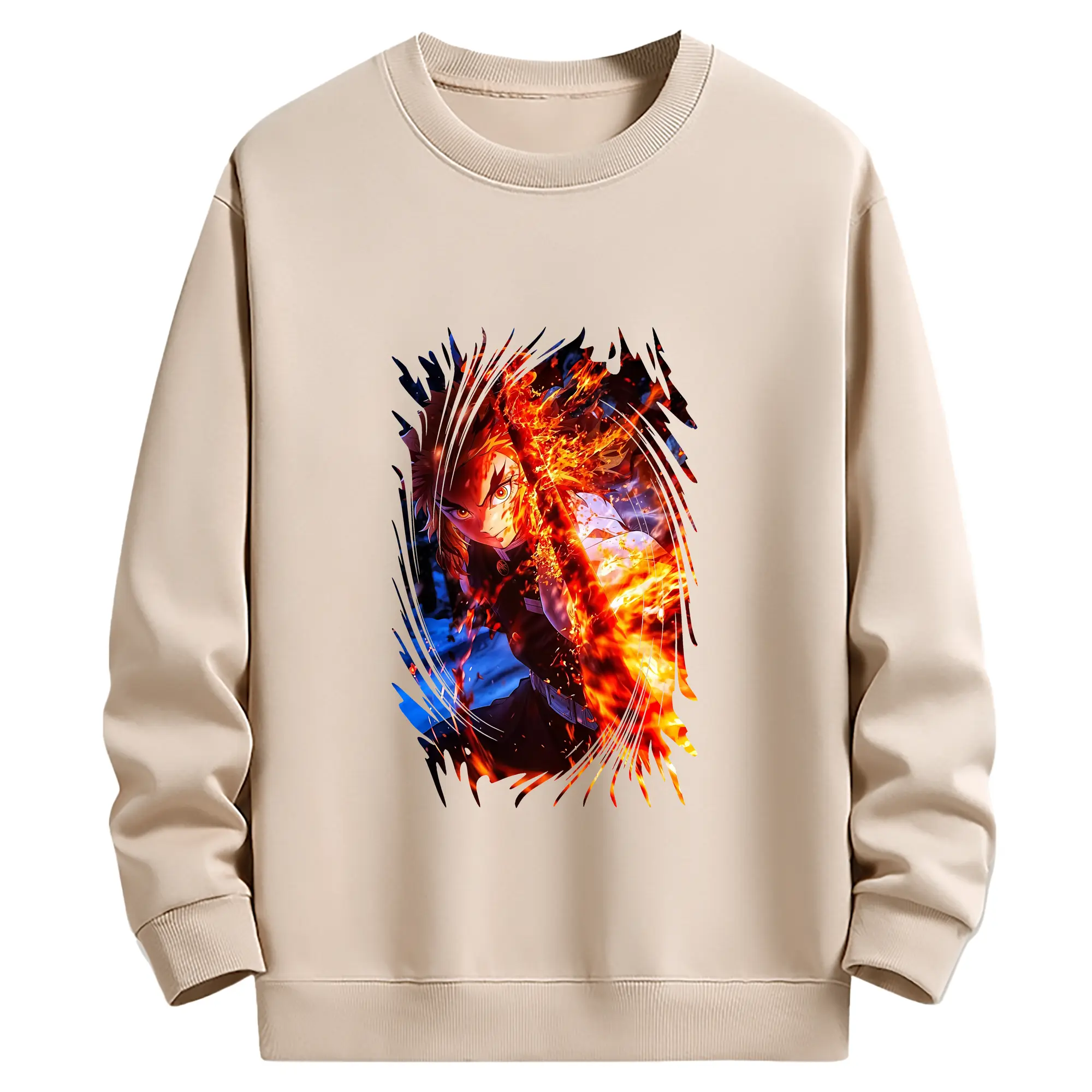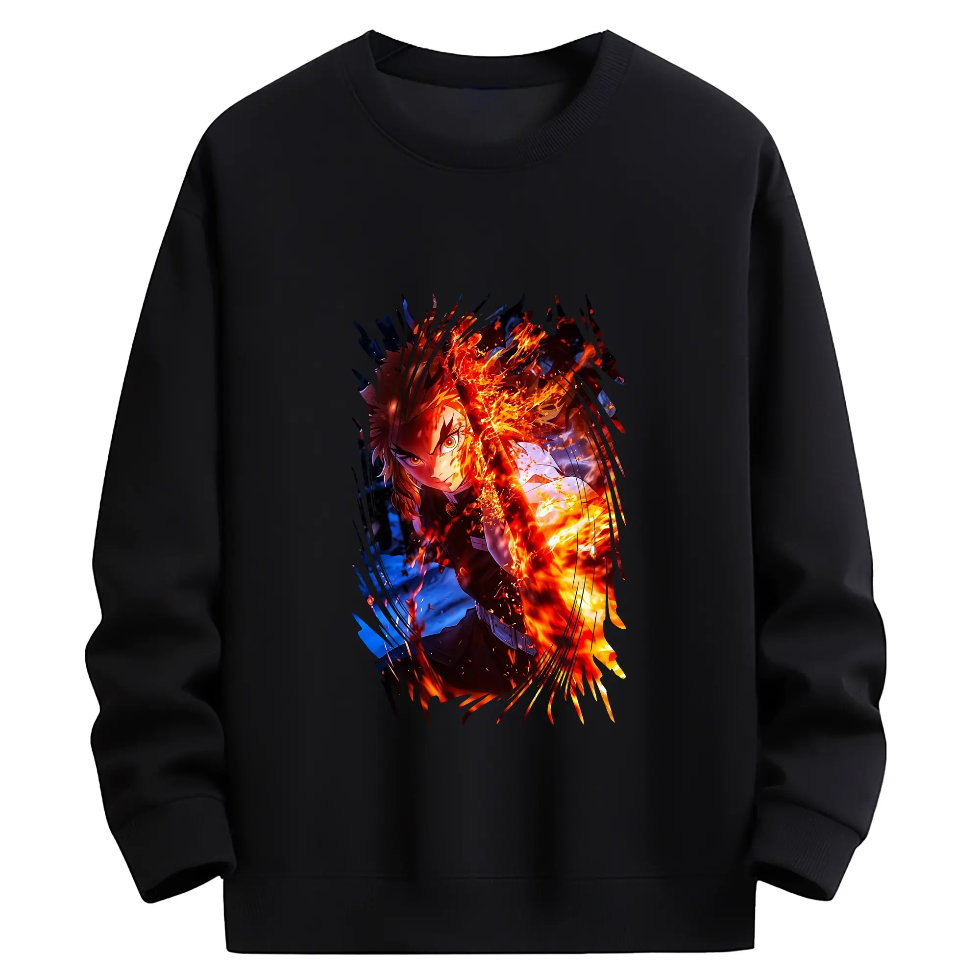 鬼滅の刃 グッズ,煉獄 杏寿郎 - 薄手 クルーネック スウェット 裏毛260g · ポリエステル 春秋向け カジュアル 男女兼用 · トレーナー デイリー スポーツ 散歩に最適