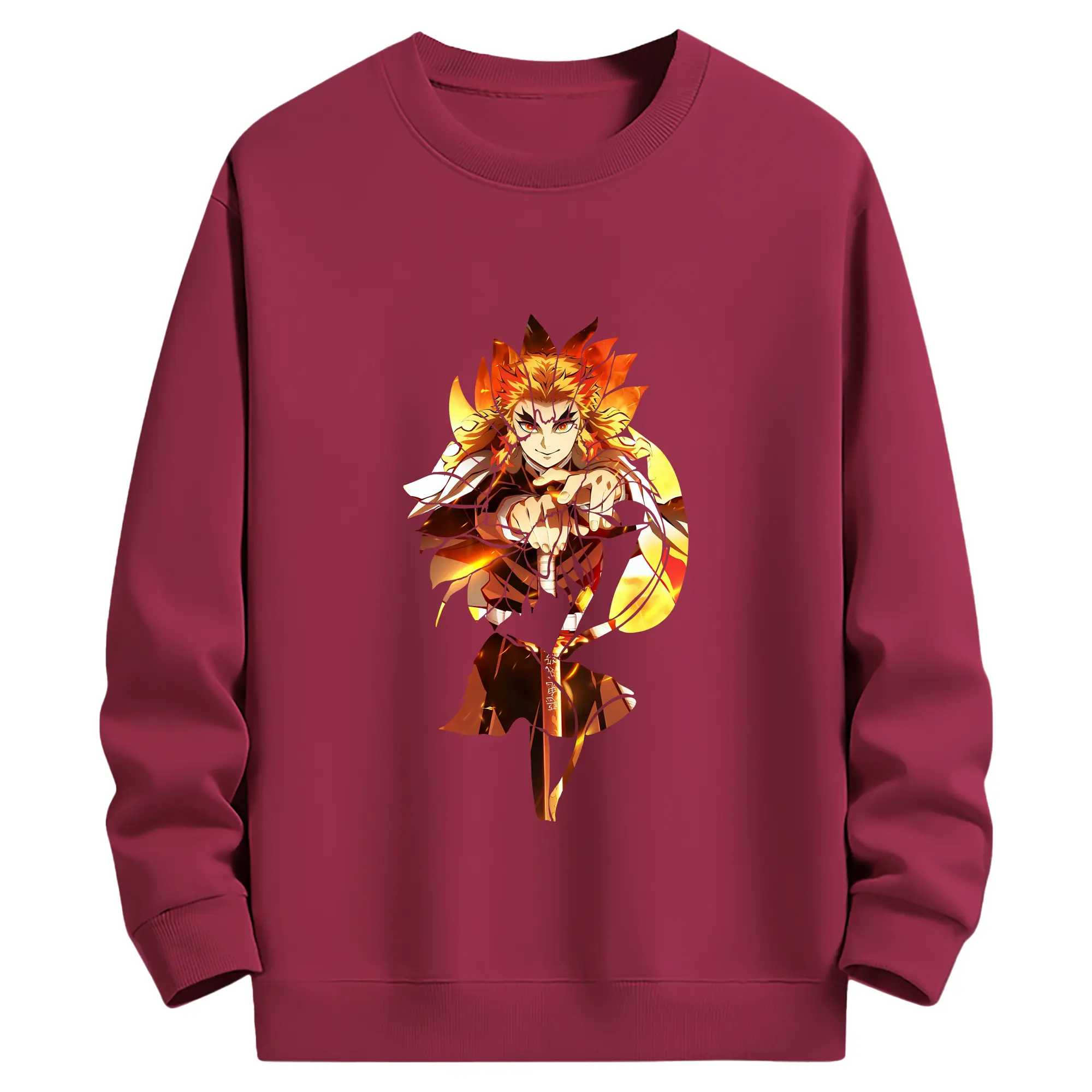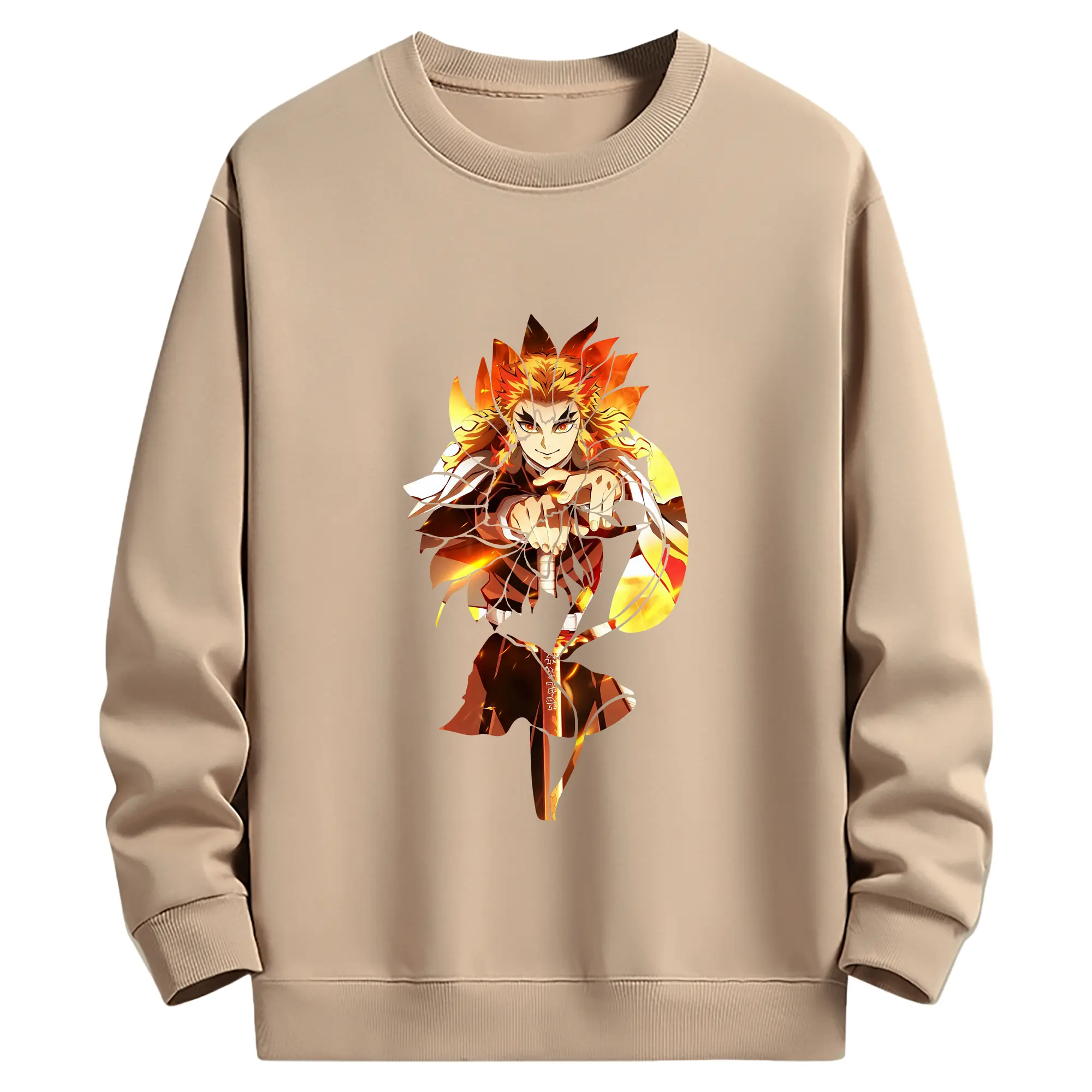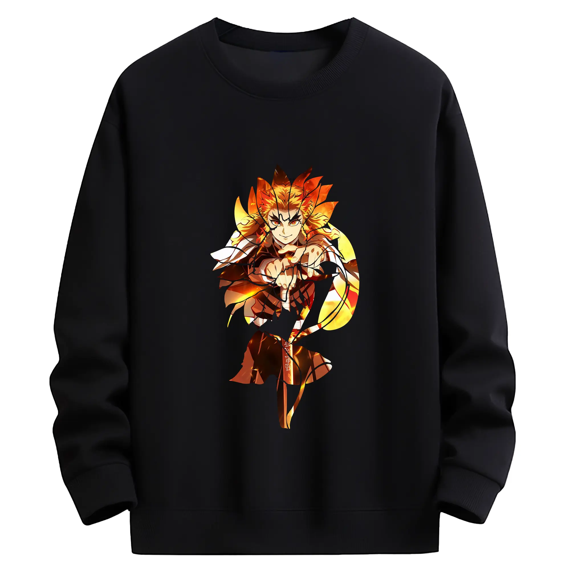 鬼滅の刃 グッズ,煉獄 杏寿郎 - 薄手 クルーネック スウェット 裏毛260g · ポリエステル 春秋向け カジュアル 男女兼用 · トレーナー デイリー スポーツ 散歩に最適