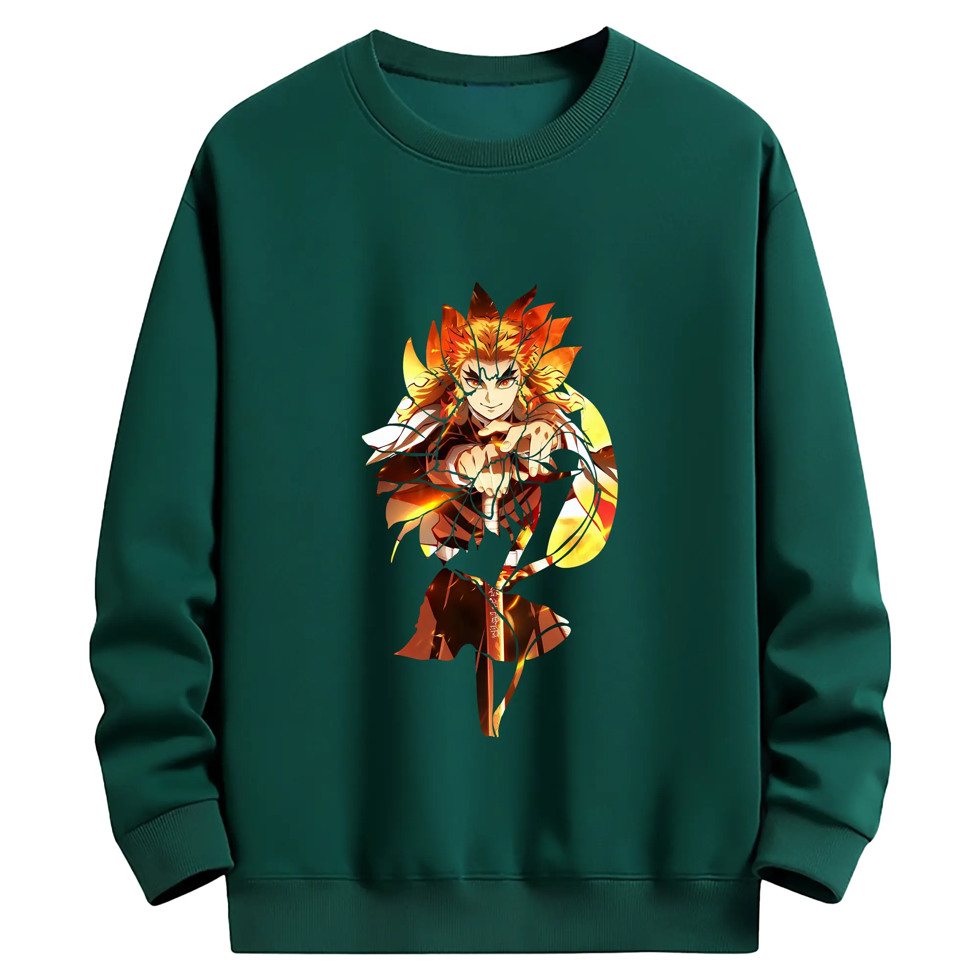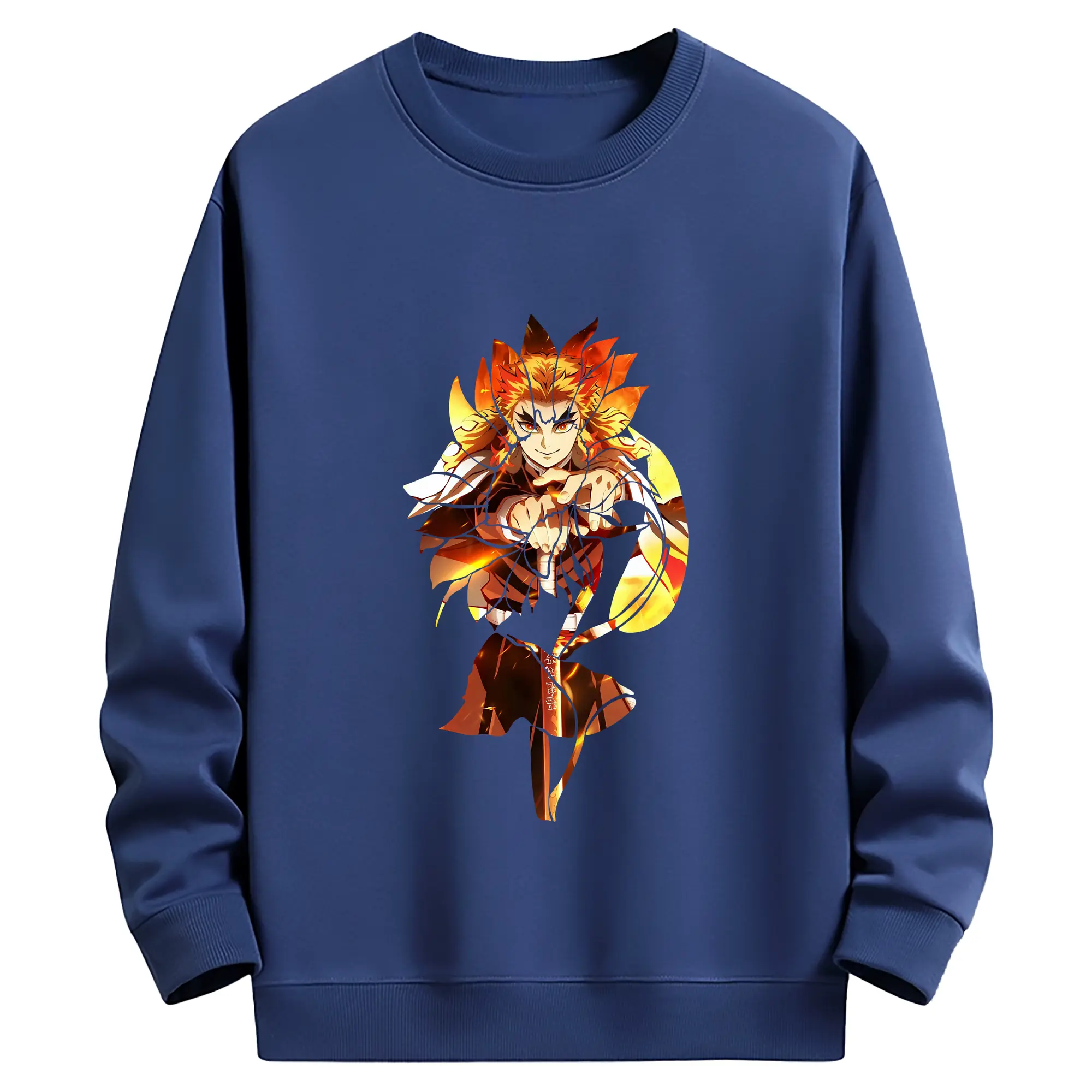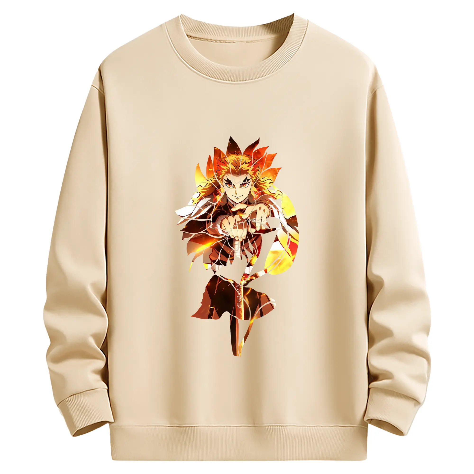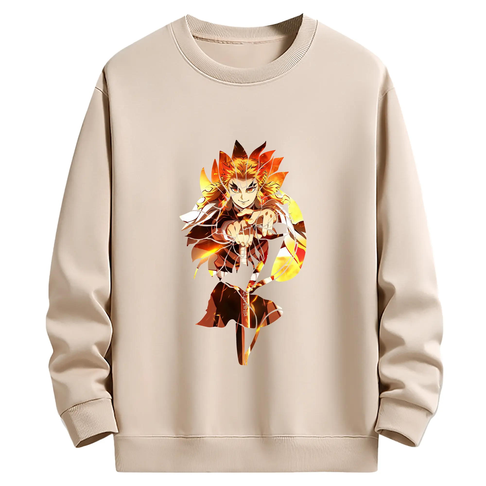 鬼滅の刃 グッズ,煉獄 杏寿郎 - 薄手 クルーネック スウェット 裏毛260g · ポリエステル 春秋向け カジュアル 男女兼用 · トレーナー デイリー スポーツ 散歩に最適