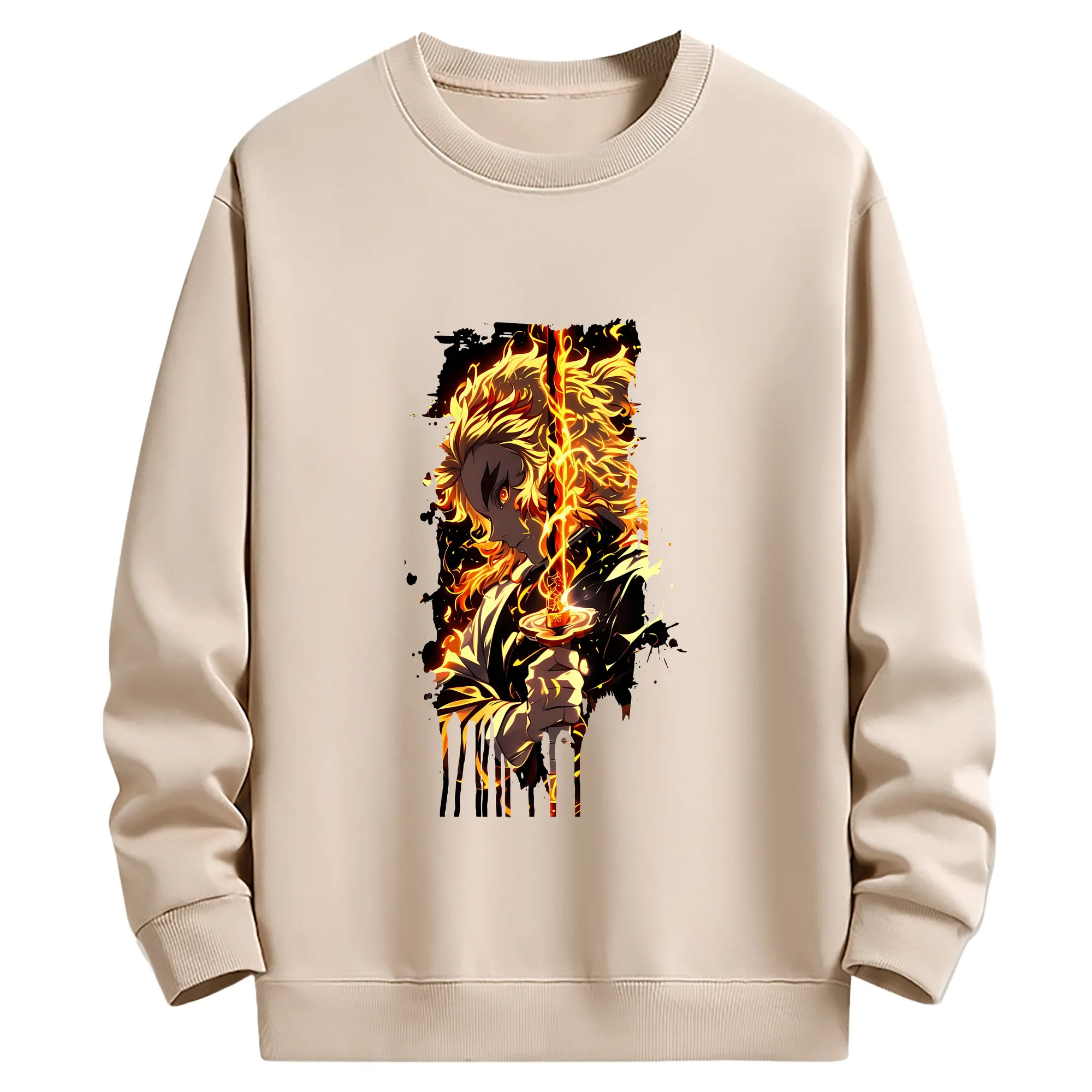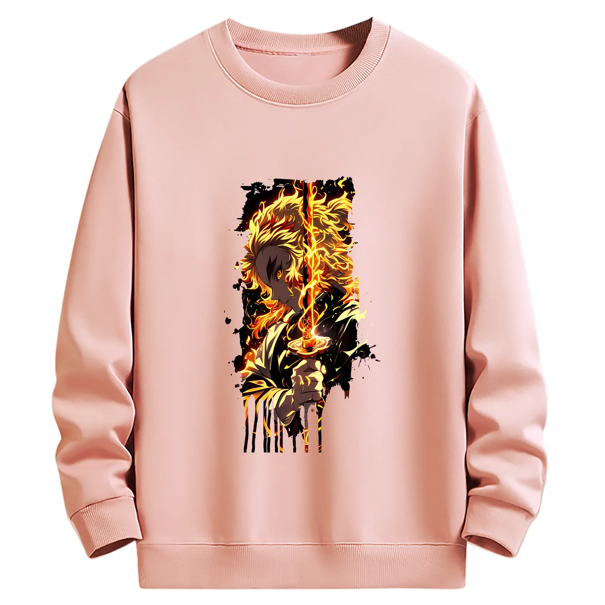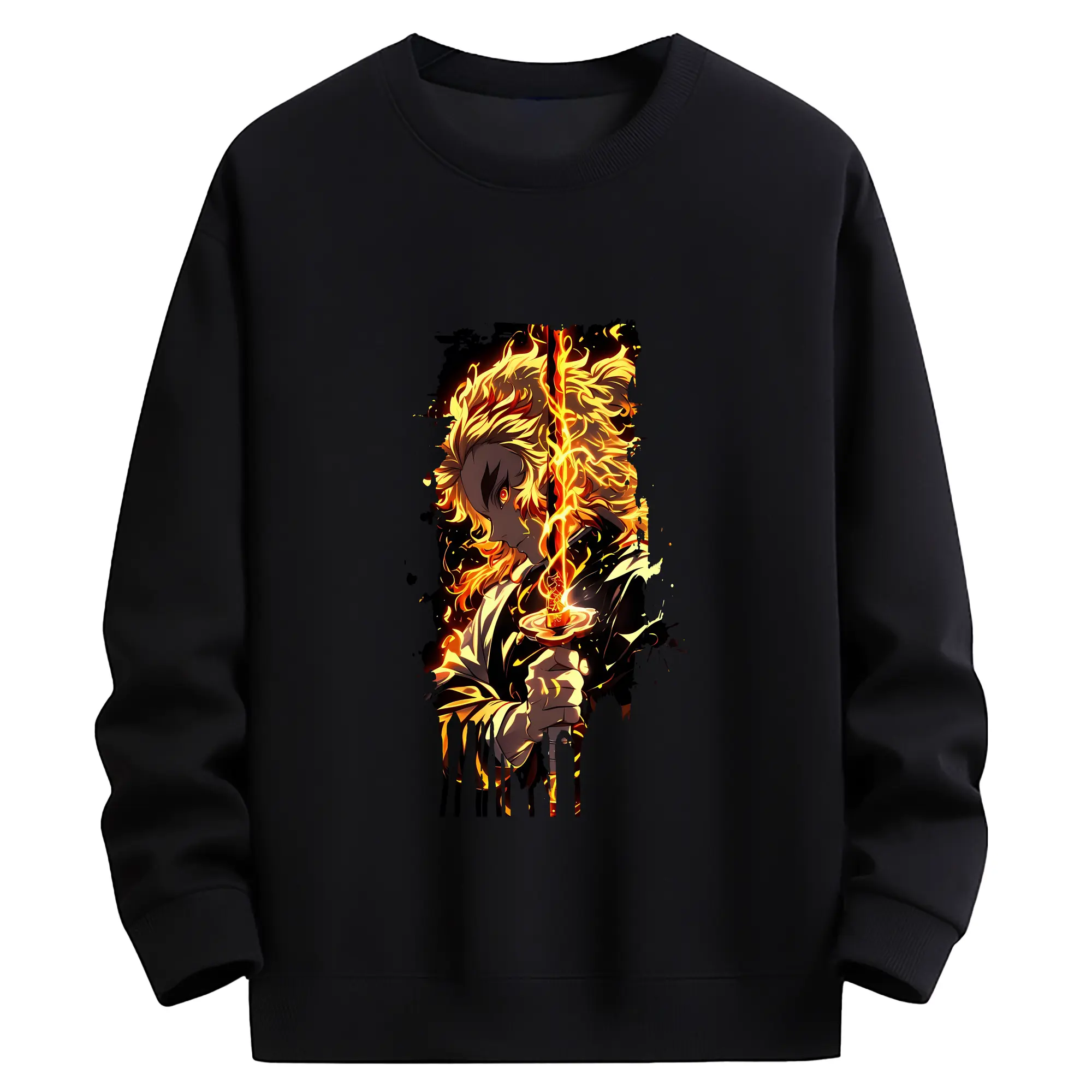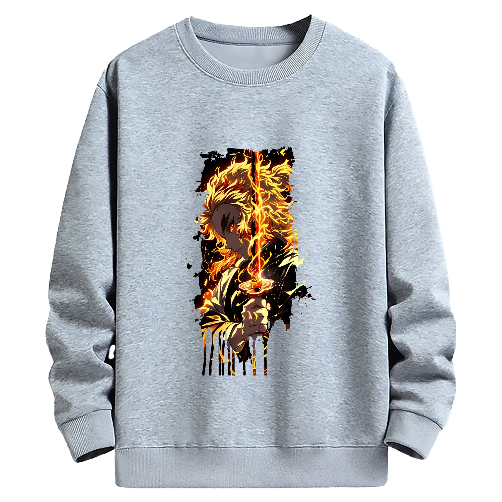 鬼滅の刃 グッズ,煉獄 杏寿郎 - 薄手 クルーネック スウェット 裏毛260g · ポリエステル 春秋向け カジュアル 男女兼用 · トレーナー デイリー スポーツ 散歩に最適