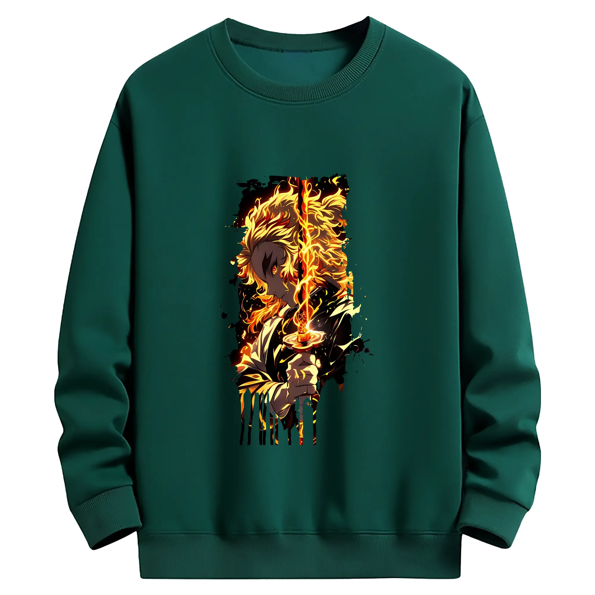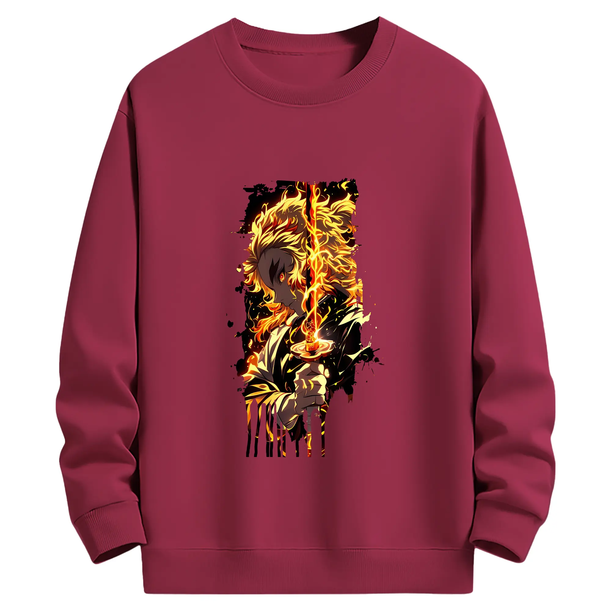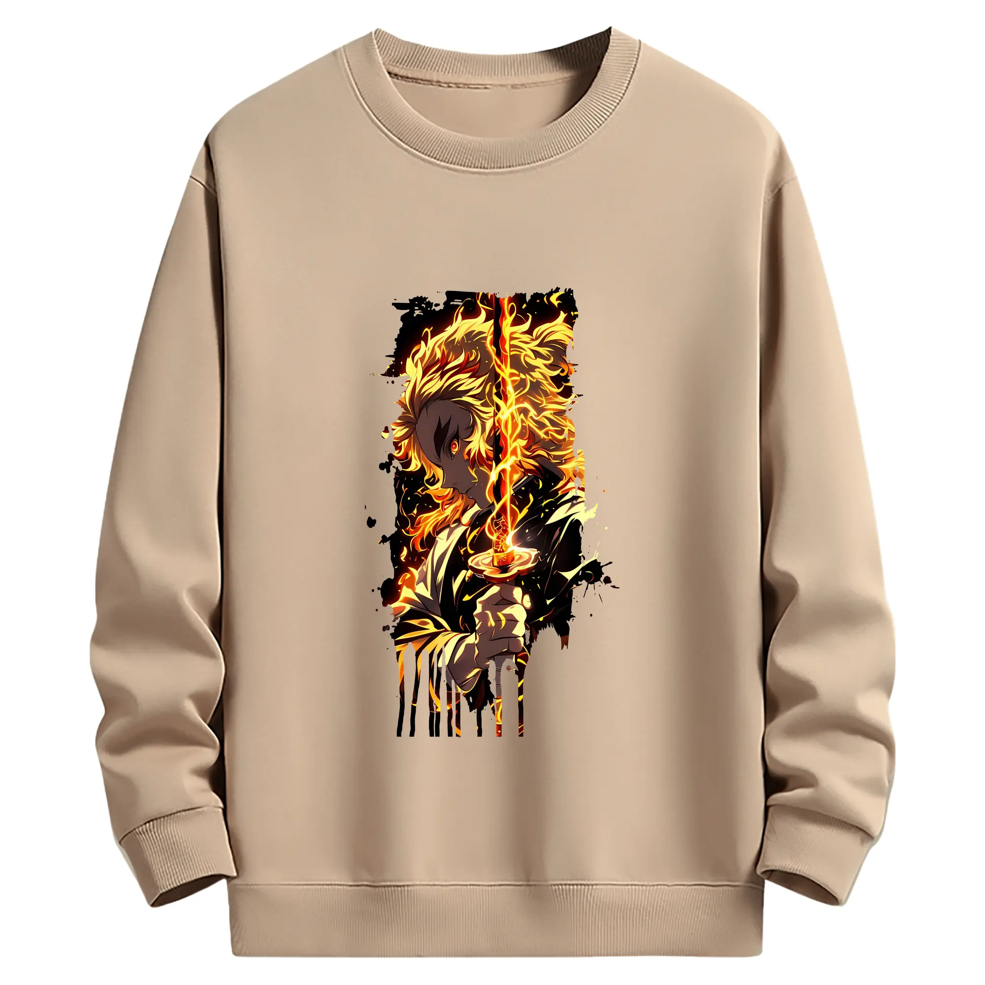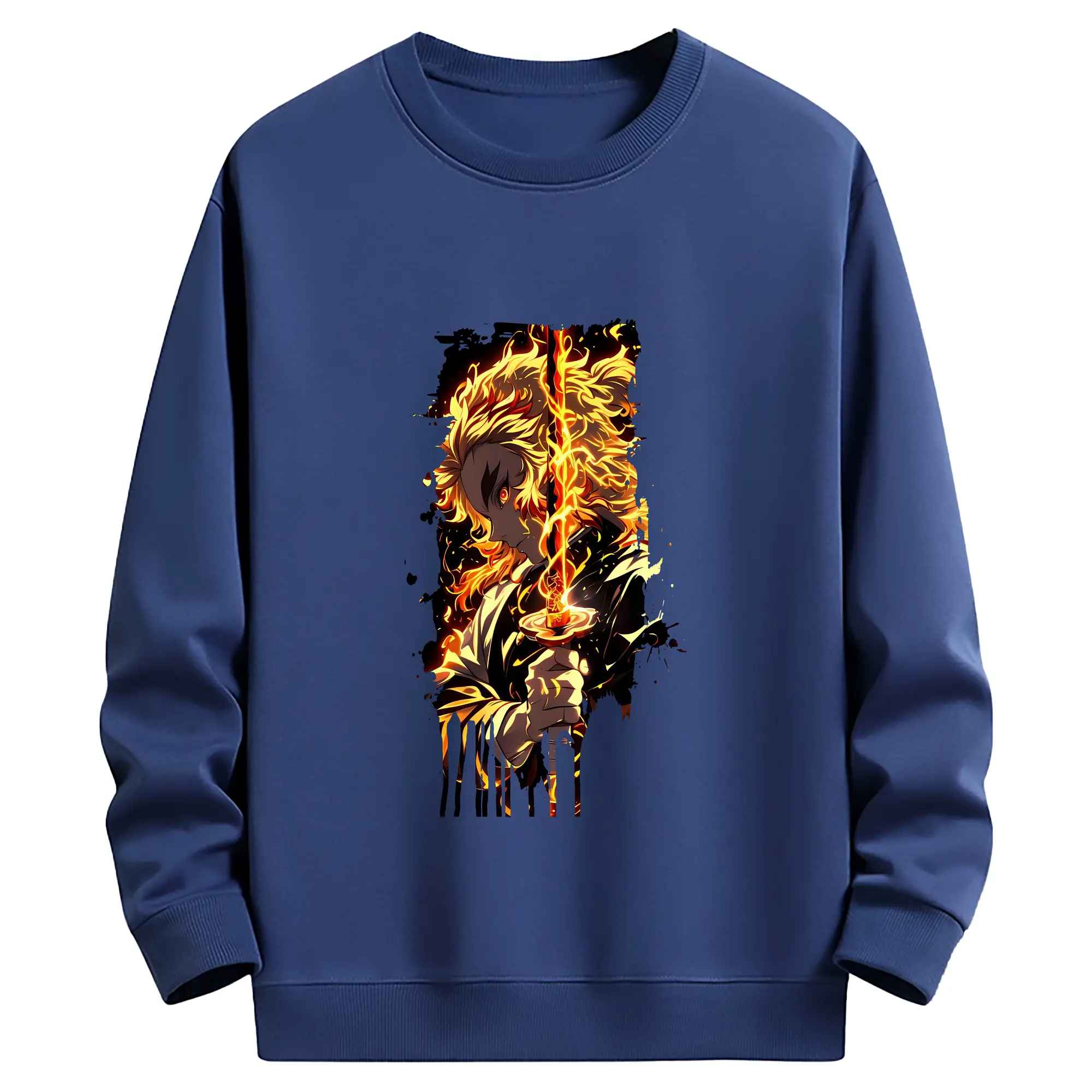 鬼滅の刃 グッズ,煉獄 杏寿郎 - 薄手 クルーネック スウェット 裏毛260g · ポリエステル 春秋向け カジュアル 男女兼用 · トレーナー デイリー スポーツ 散歩に最適