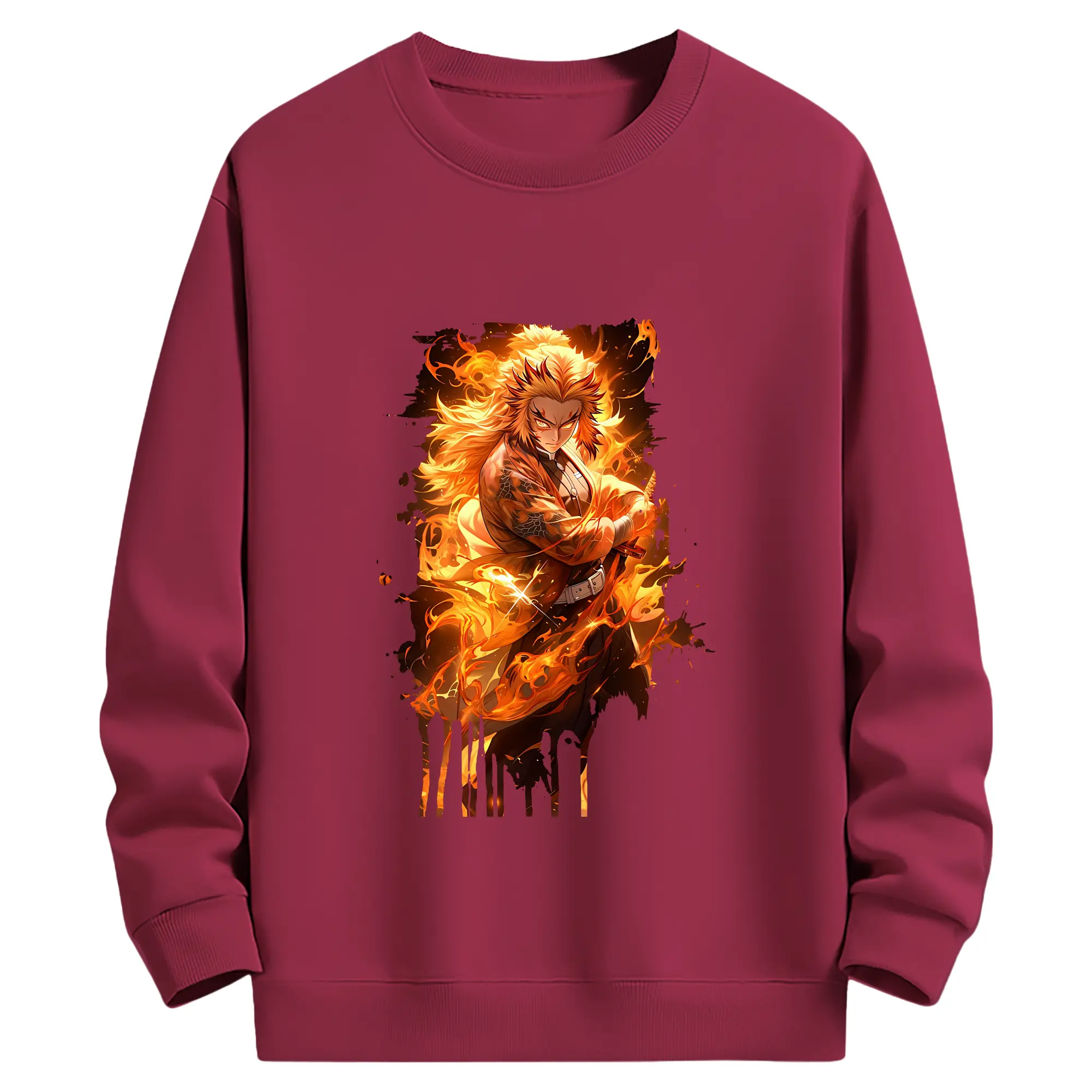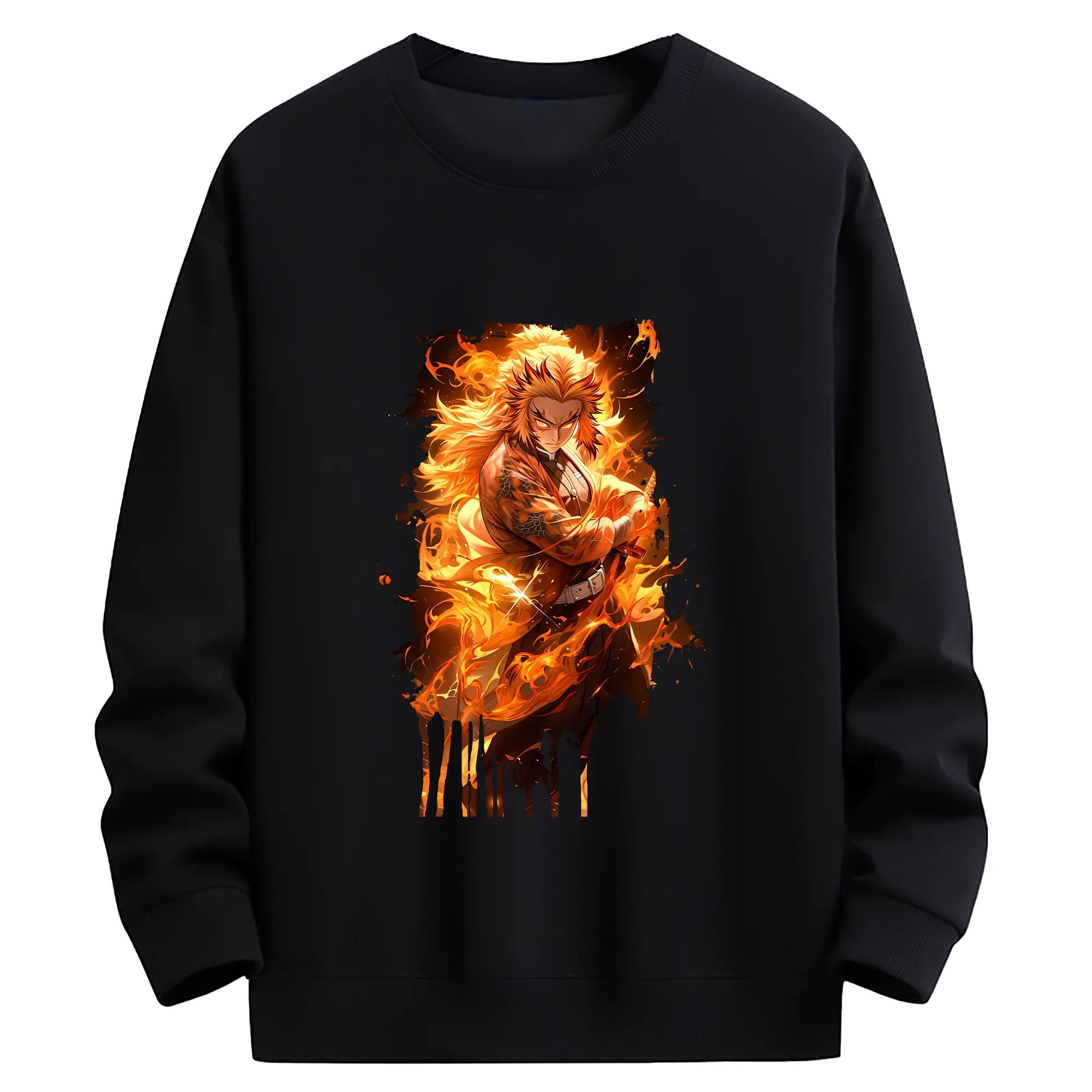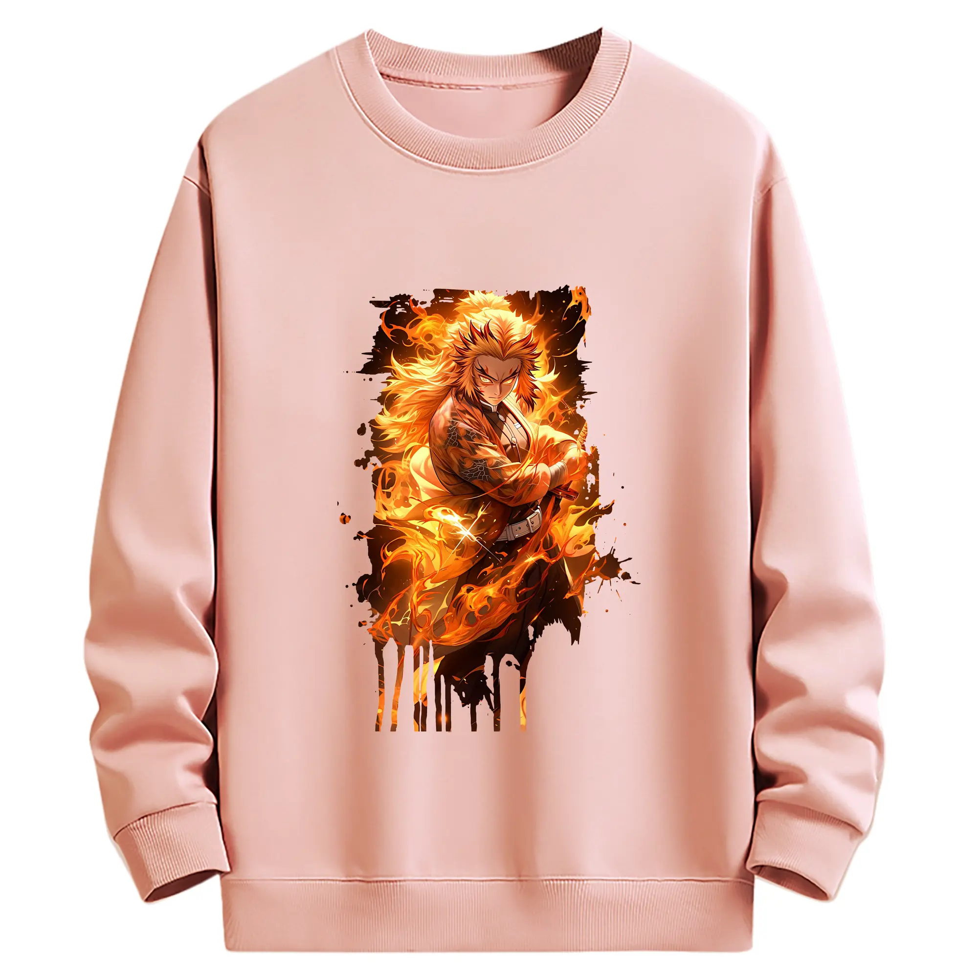 鬼滅の刃 グッズ,煉獄 杏寿郎 - 薄手 クルーネック スウェット 裏毛260g · ポリエステル 春秋向け カジュアル 男女兼用 · トレーナー デイリー スポーツ 散歩に最適