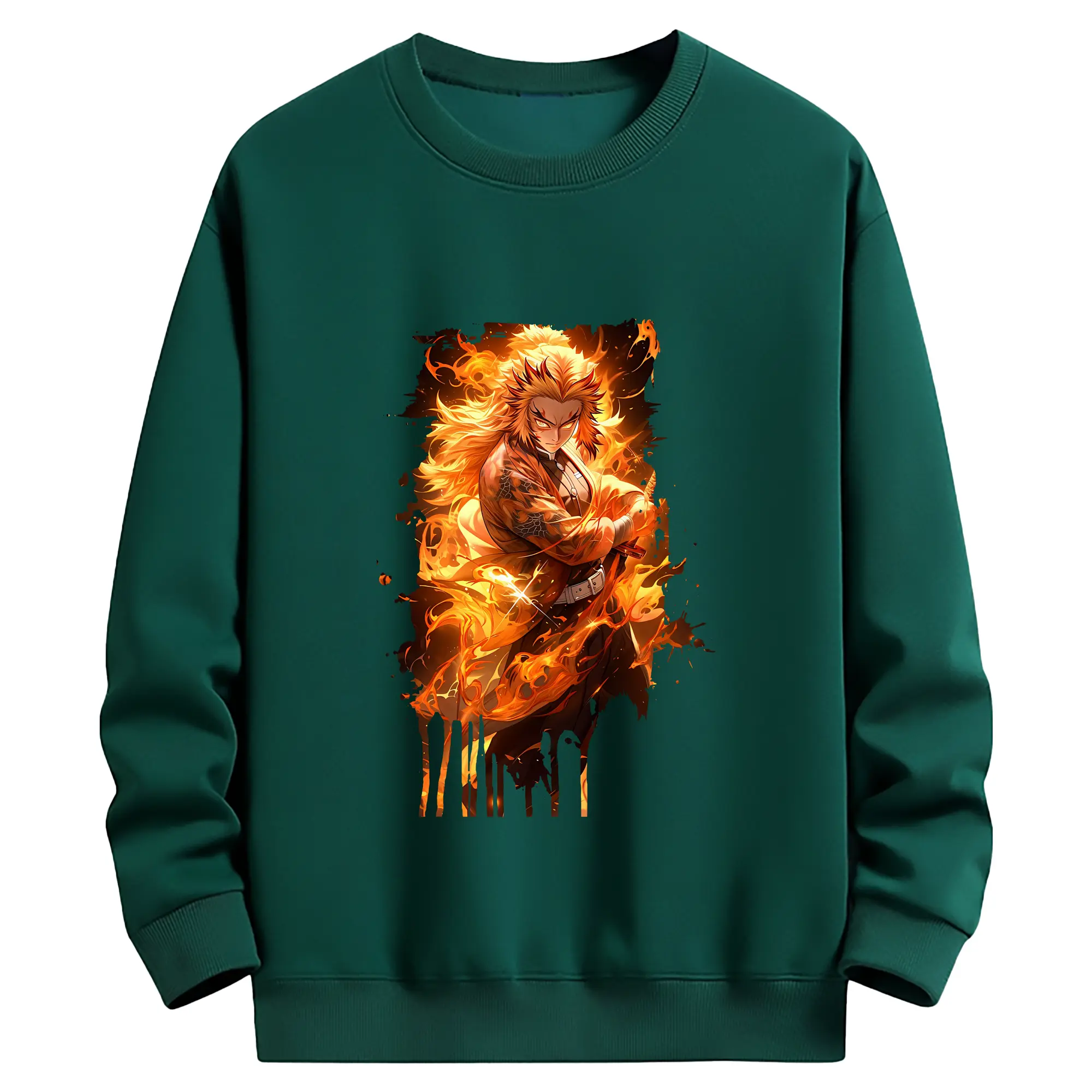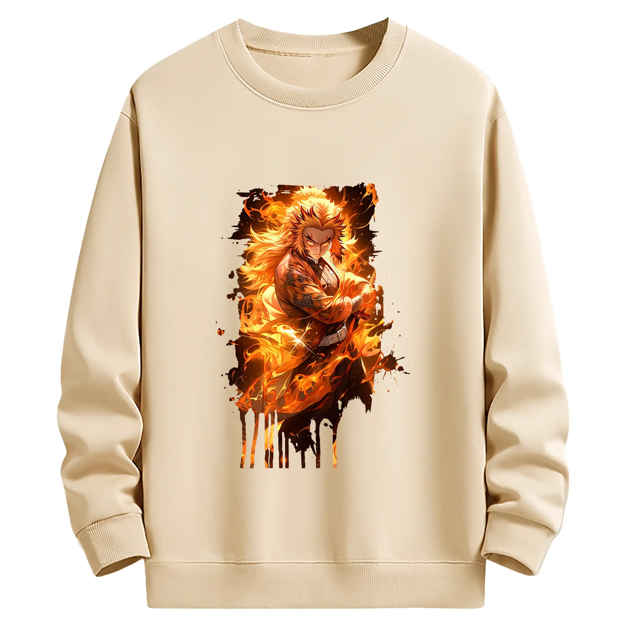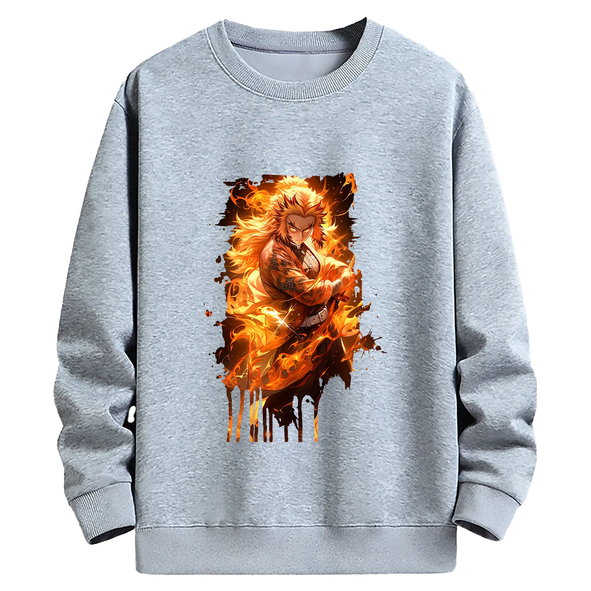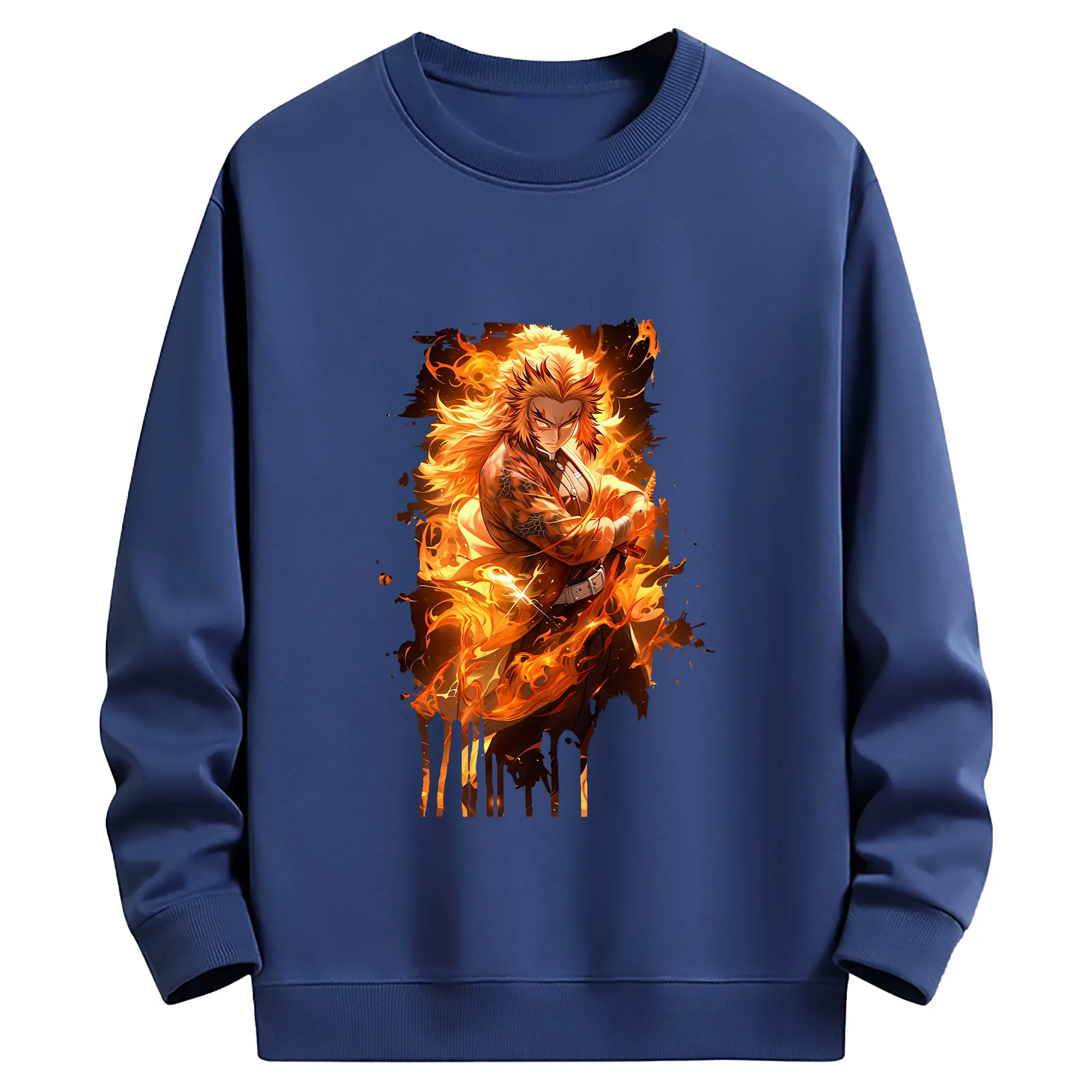鬼滅の刃 グッズ,煉獄 杏寿郎 - 薄手 クルーネック スウェット 裏毛260g · ポリエステル 春秋向け カジュアル 男女兼用 · トレーナー デイリー スポーツ 散歩に最適