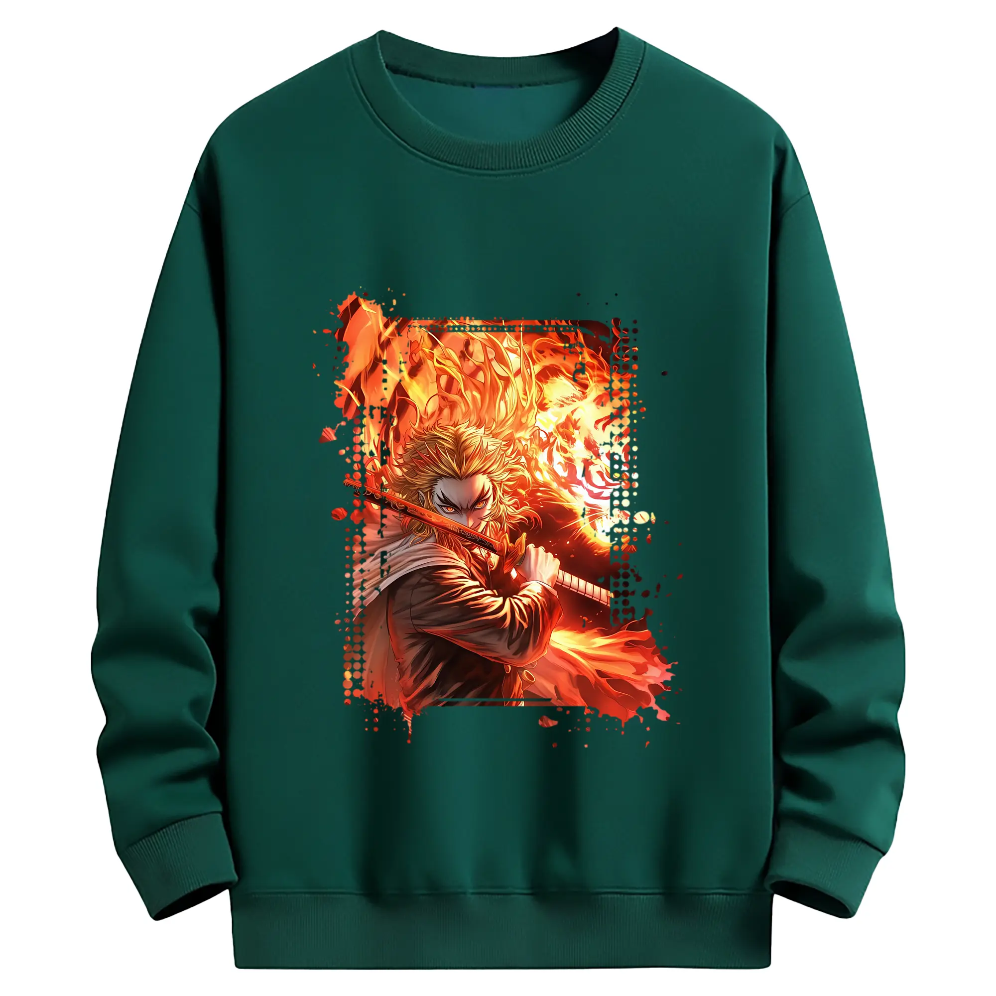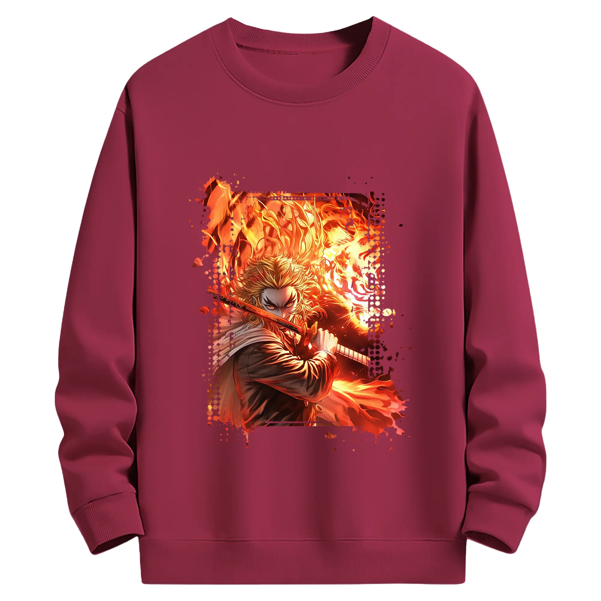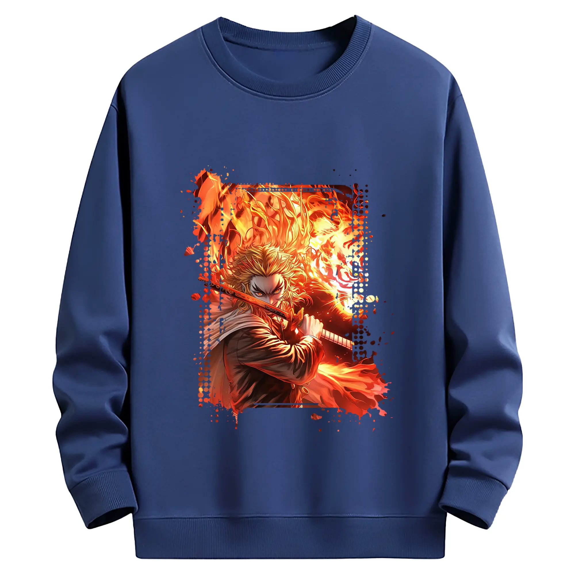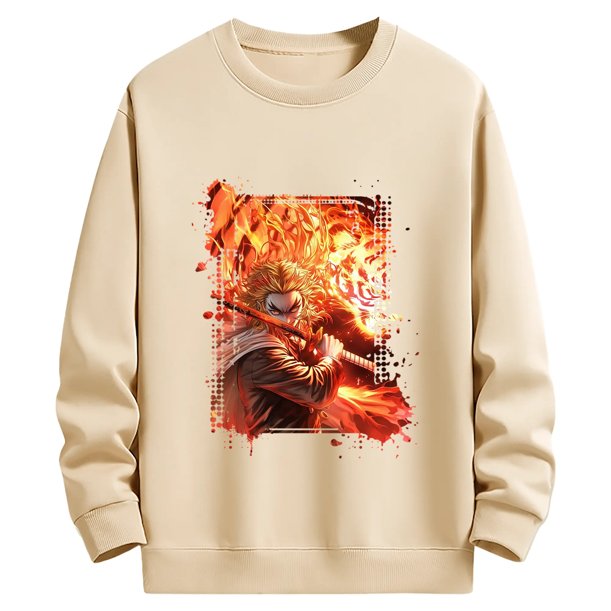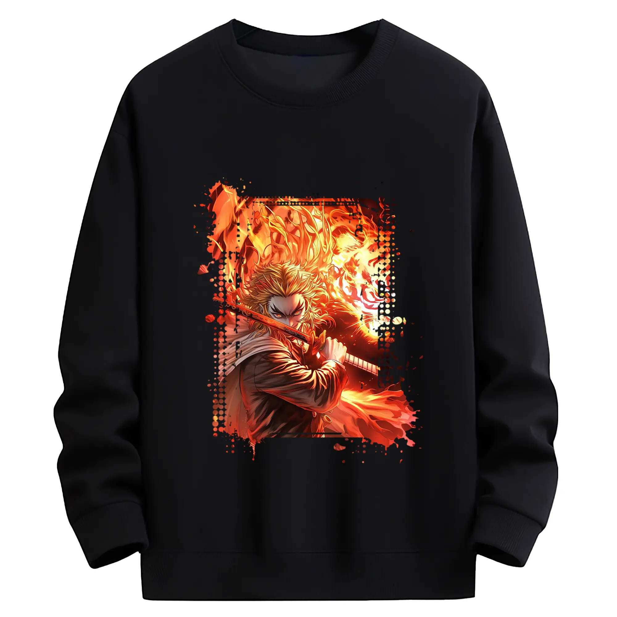 鬼滅の刃 グッズ,煉獄 杏寿郎 - 薄手 クルーネック スウェット 裏毛260g · ポリエステル 春秋向け カジュアル 男女兼用 · トレーナー デイリー スポーツ 散歩に最適