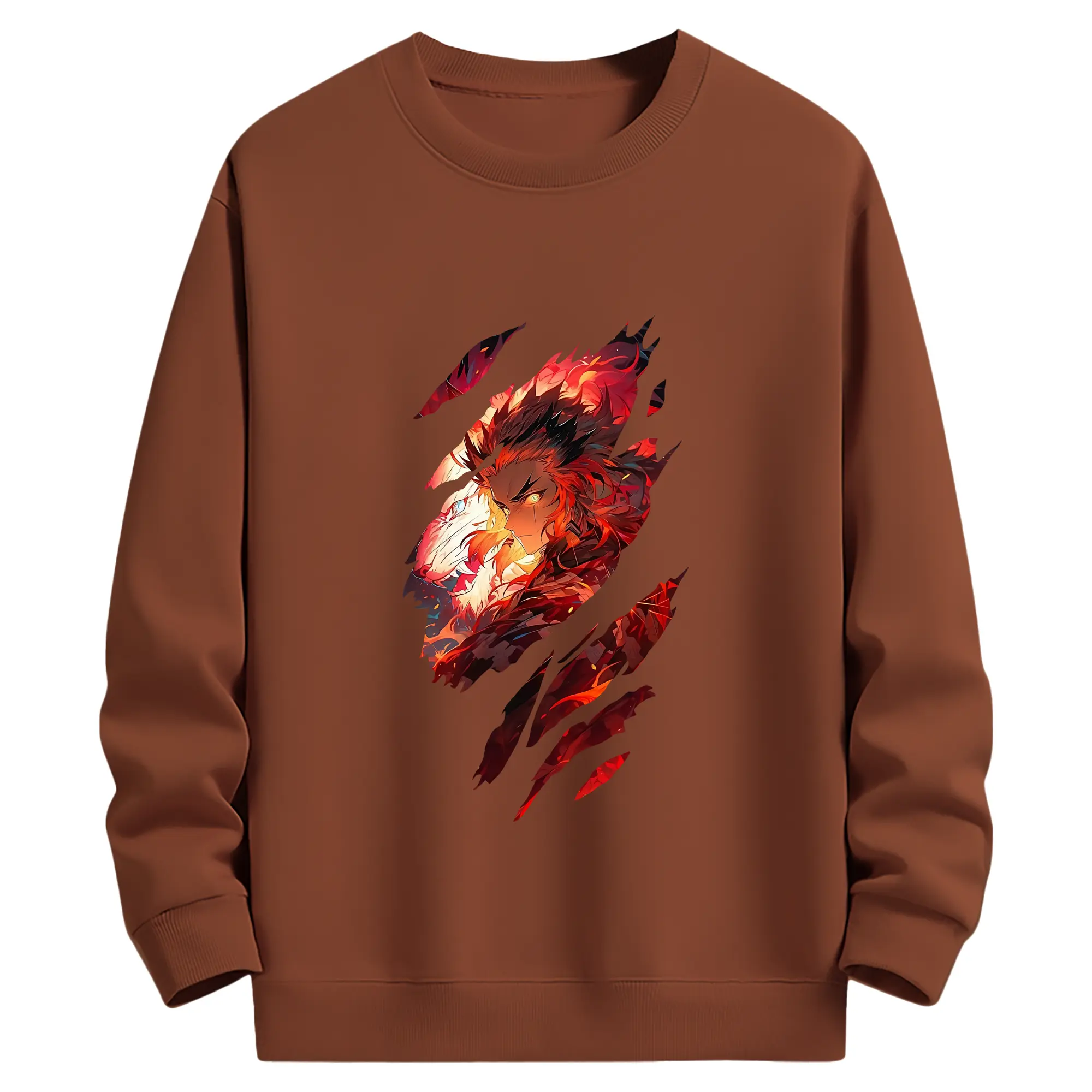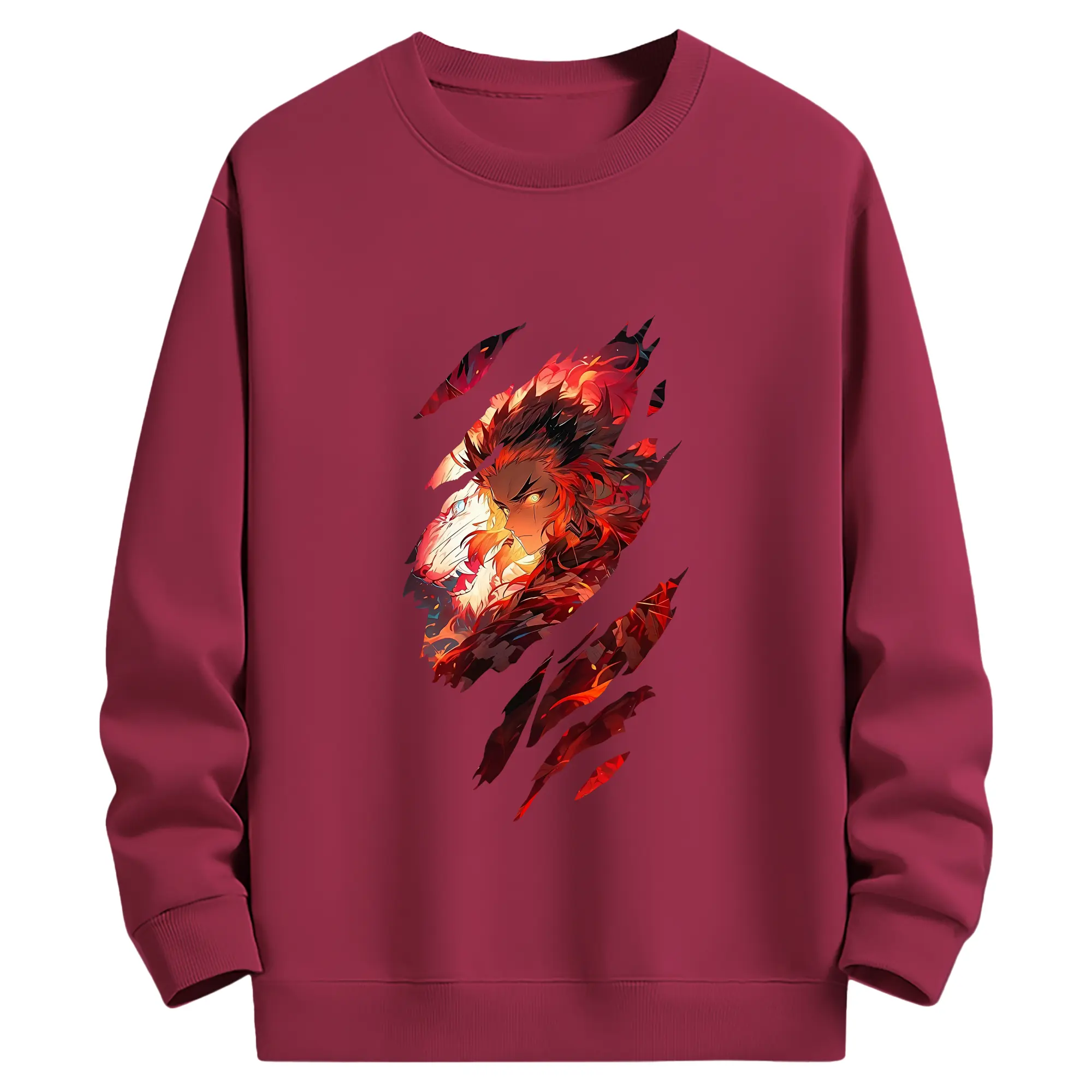 鬼滅の刃 グッズ,煉獄 杏寿郎 - 薄手 クルーネック スウェット 裏毛260g · ポリエステル 春秋向け カジュアル 男女兼用 · トレーナー デイリー スポーツ 散歩に最適