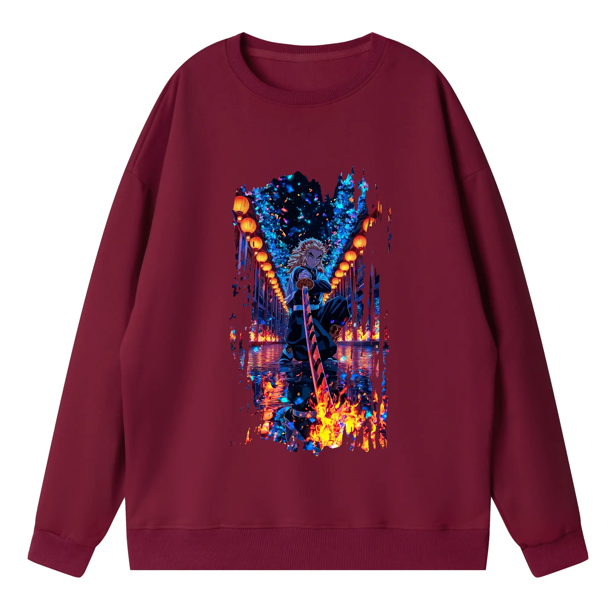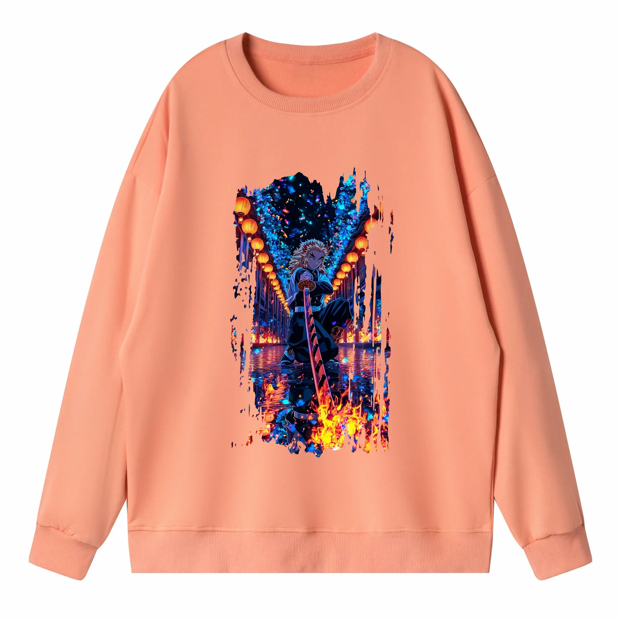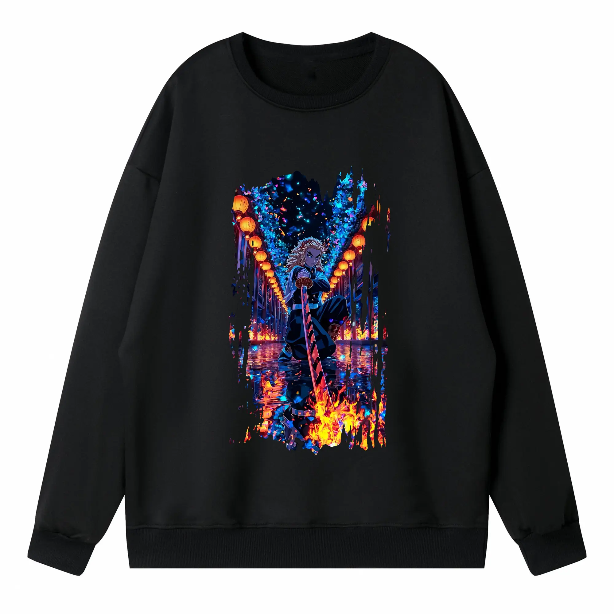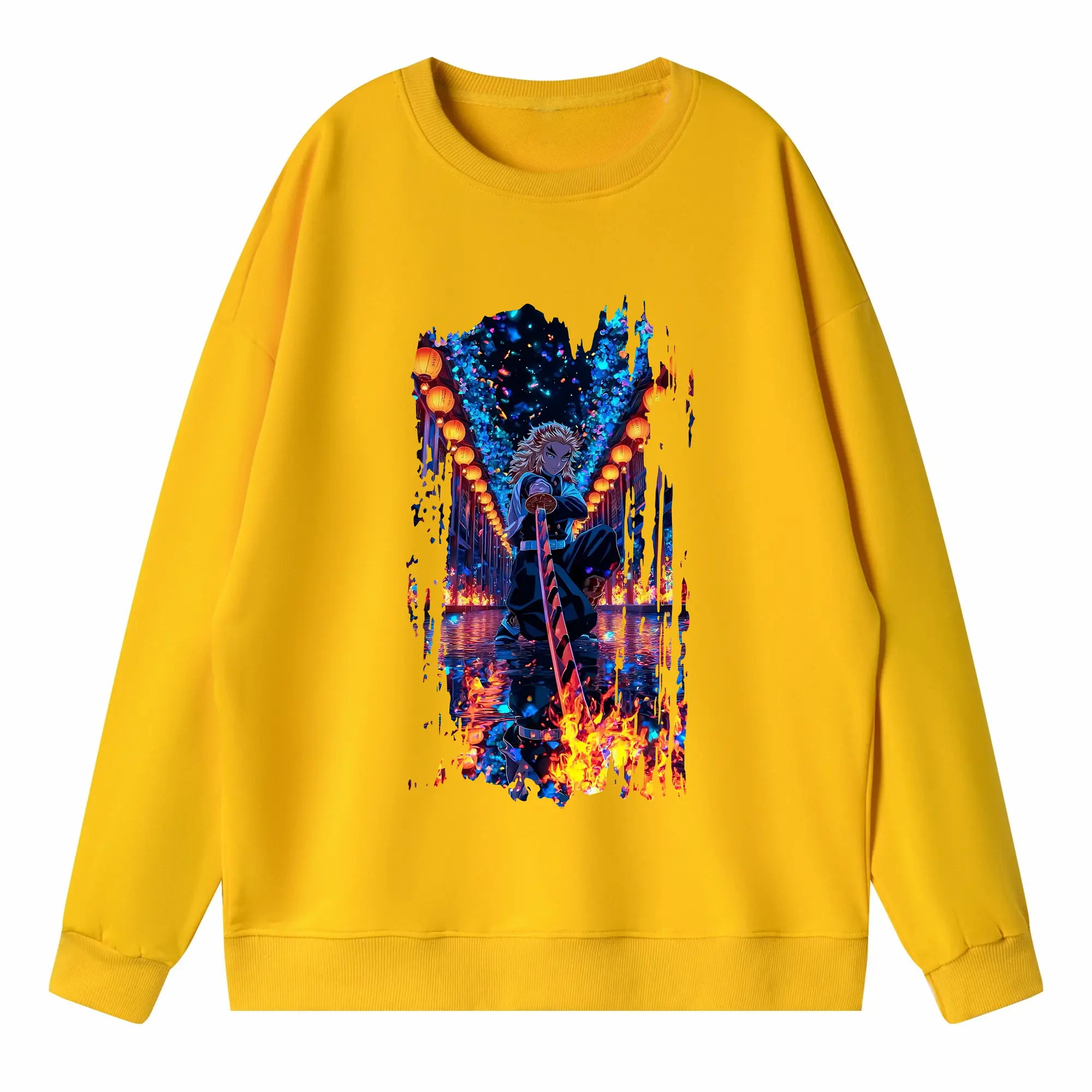 鬼滅の刃 グッズ,煉獄 杏寿郎 - 高品質 クルーネック スウェット ・ コットン59% ポリエステル41% ・ ユニセックス 長袖 トレーナー ・ カジュアル デイリー スポーツ 散歩用