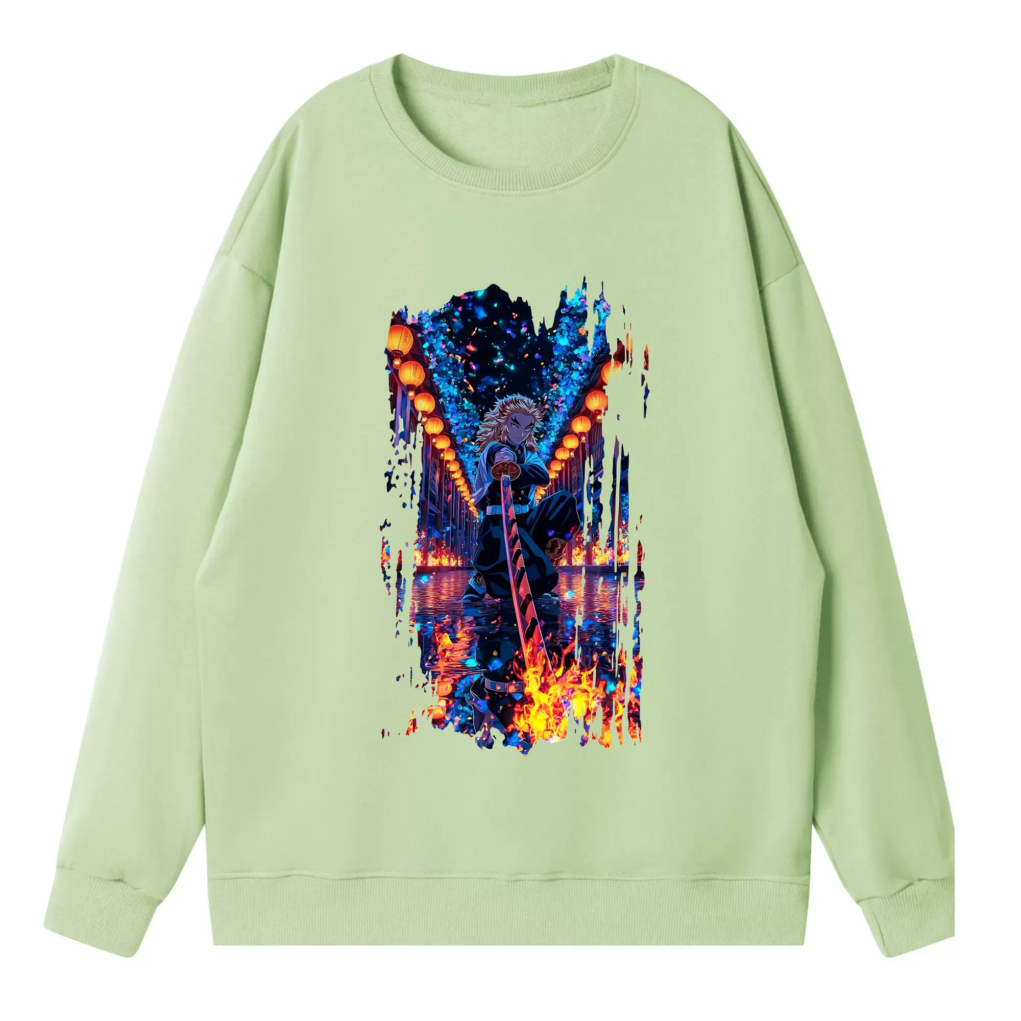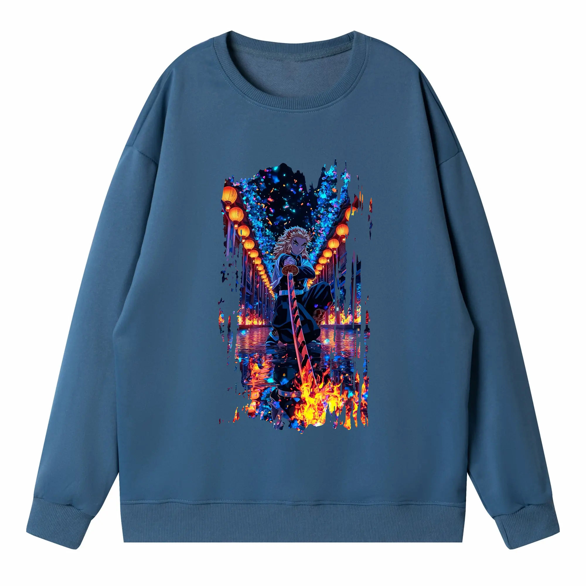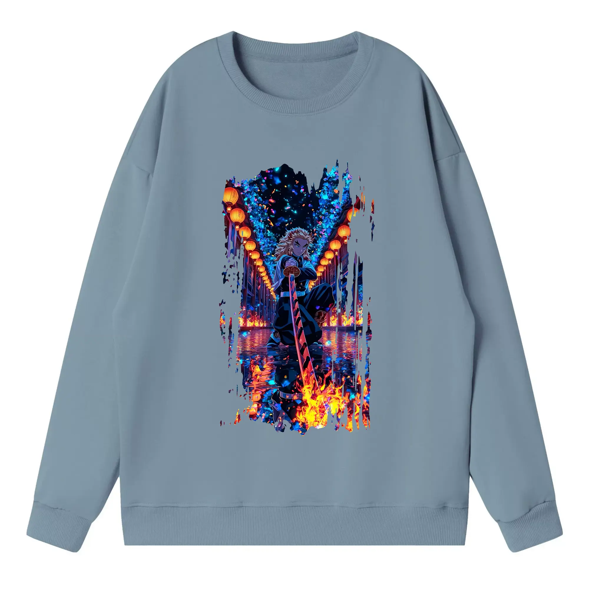 鬼滅の刃 グッズ,煉獄 杏寿郎 - 高品質 クルーネック スウェット ・ コットン59% ポリエステル41% ・ ユニセックス 長袖 トレーナー ・ カジュアル デイリー スポーツ 散歩用
