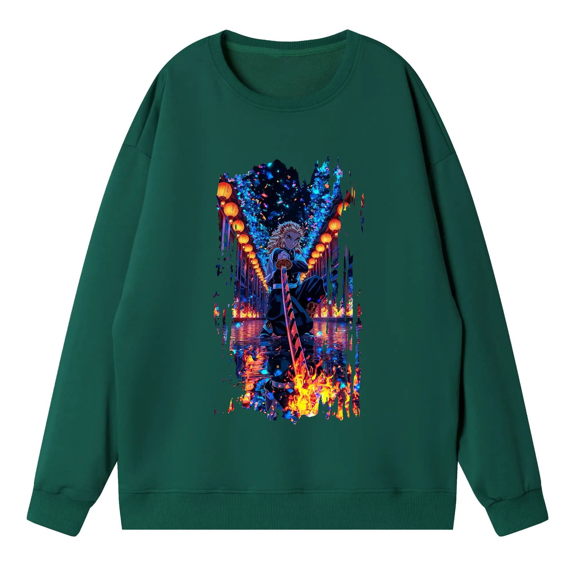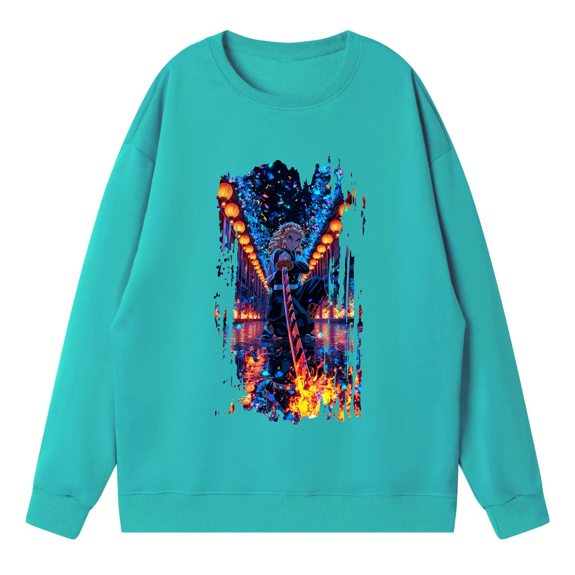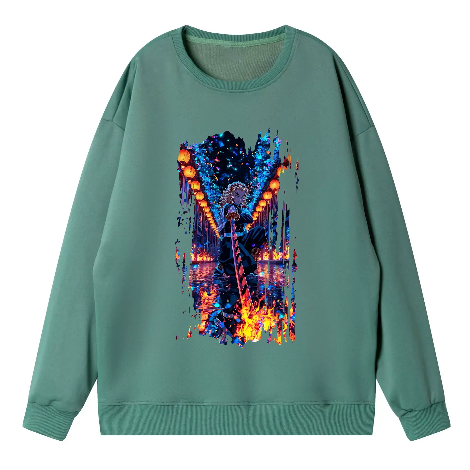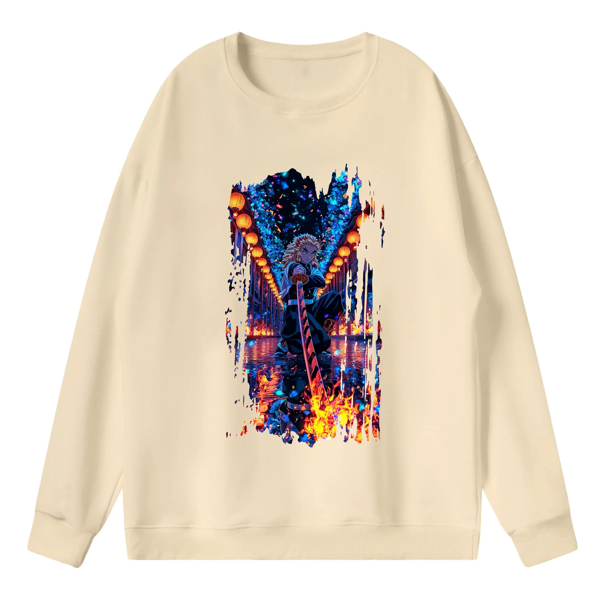鬼滅の刃 グッズ,煉獄 杏寿郎 - 高品質 クルーネック スウェット ・ コットン59% ポリエステル41% ・ ユニセックス 長袖 トレーナー ・ カジュアル デイリー スポーツ 散歩用