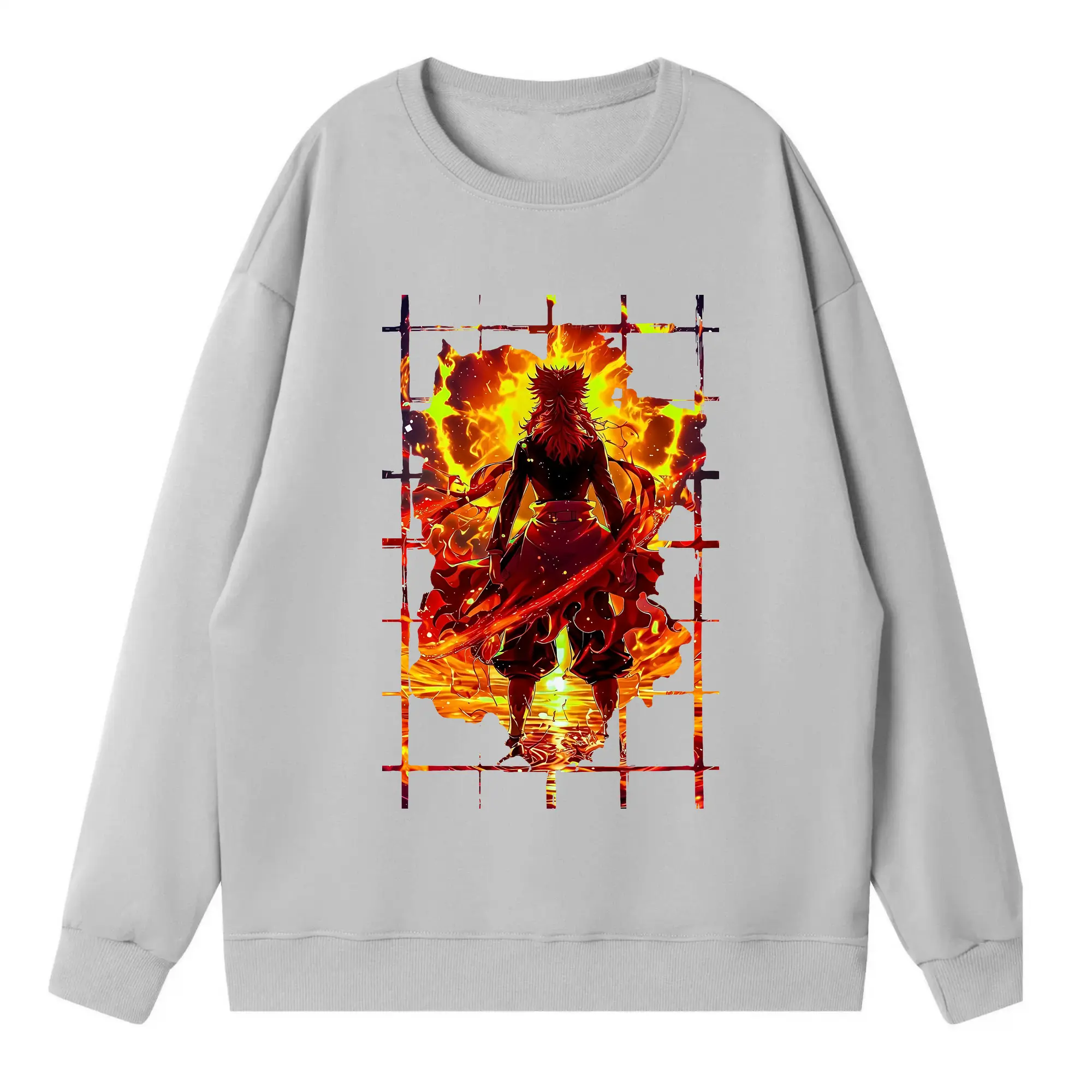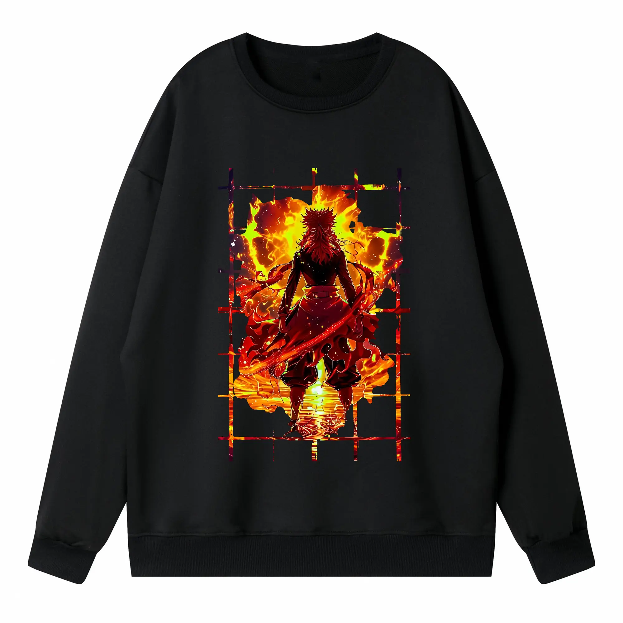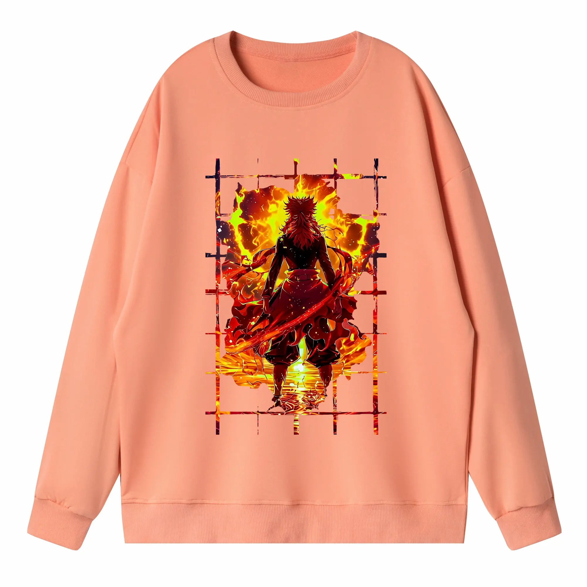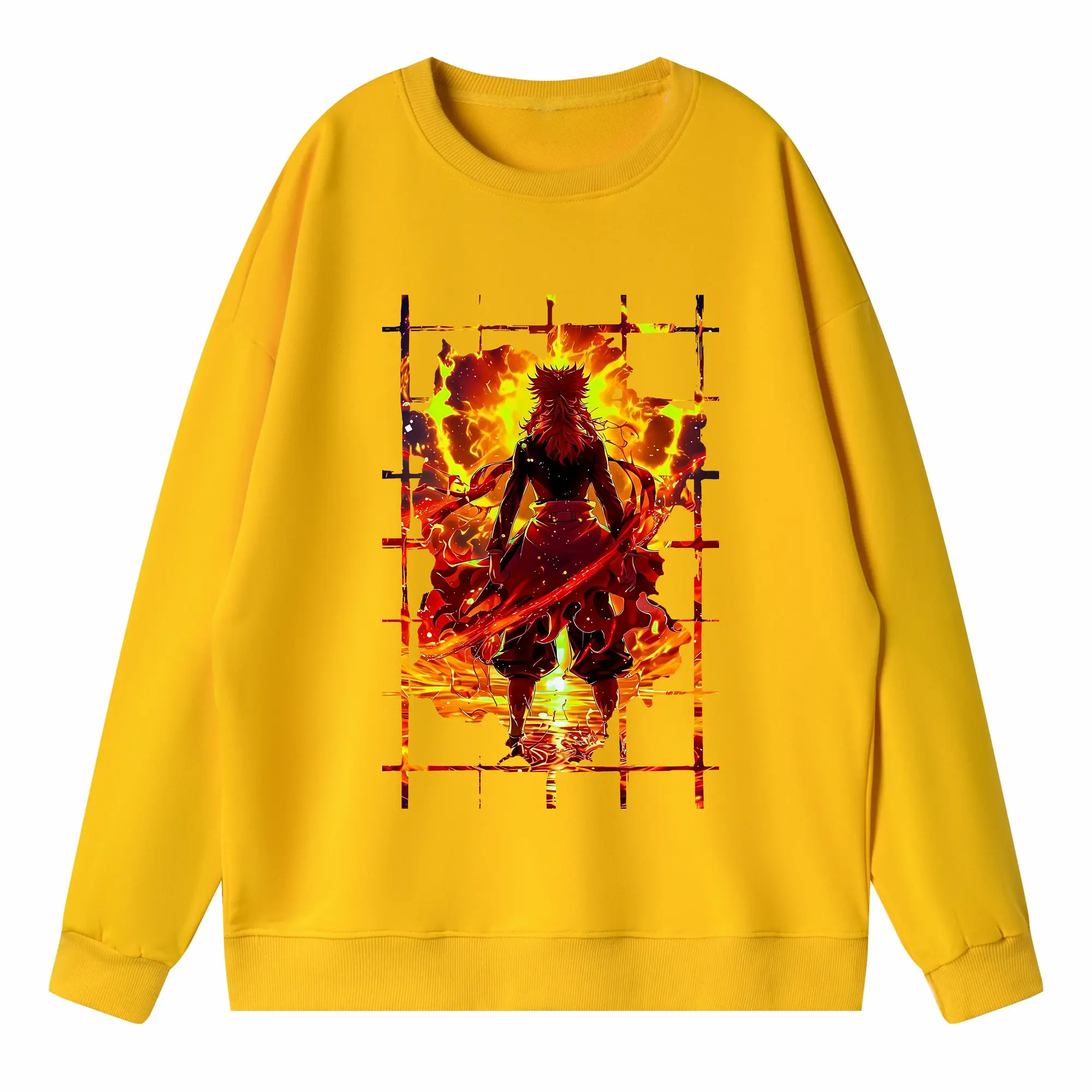 鬼滅の刃 グッズ,煉獄 杏寿郎 - 高品質 クルーネック スウェット ・ コットン59% ポリエステル41% ・ ユニセックス 長袖 トレーナー ・ カジュアル デイリー スポーツ 散歩用