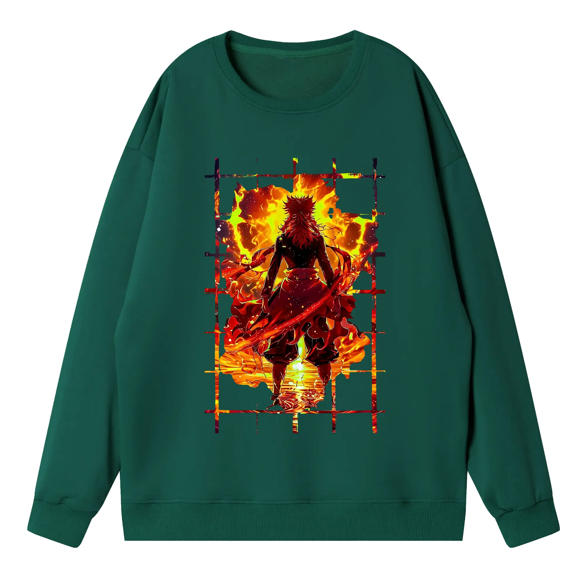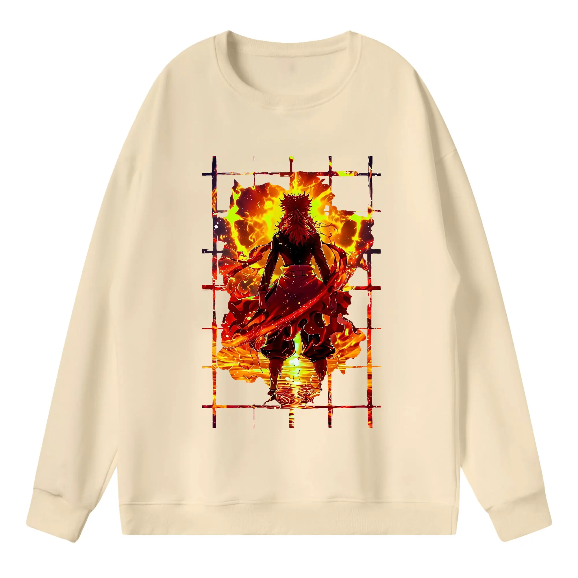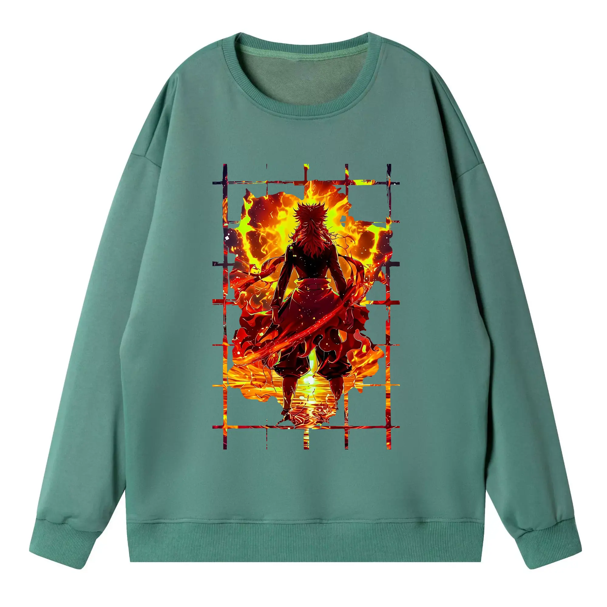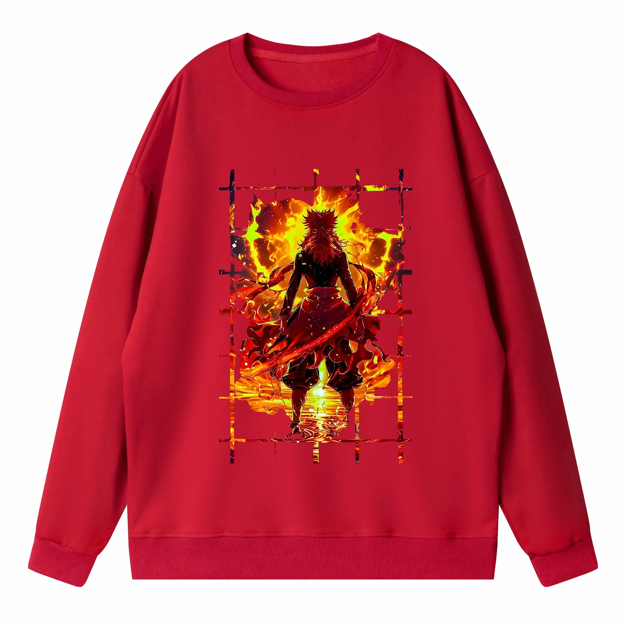 鬼滅の刃 グッズ,煉獄 杏寿郎 - 高品質 クルーネック スウェット ・ コットン59% ポリエステル41% ・ ユニセックス 長袖 トレーナー ・ カジュアル デイリー スポーツ 散歩用
