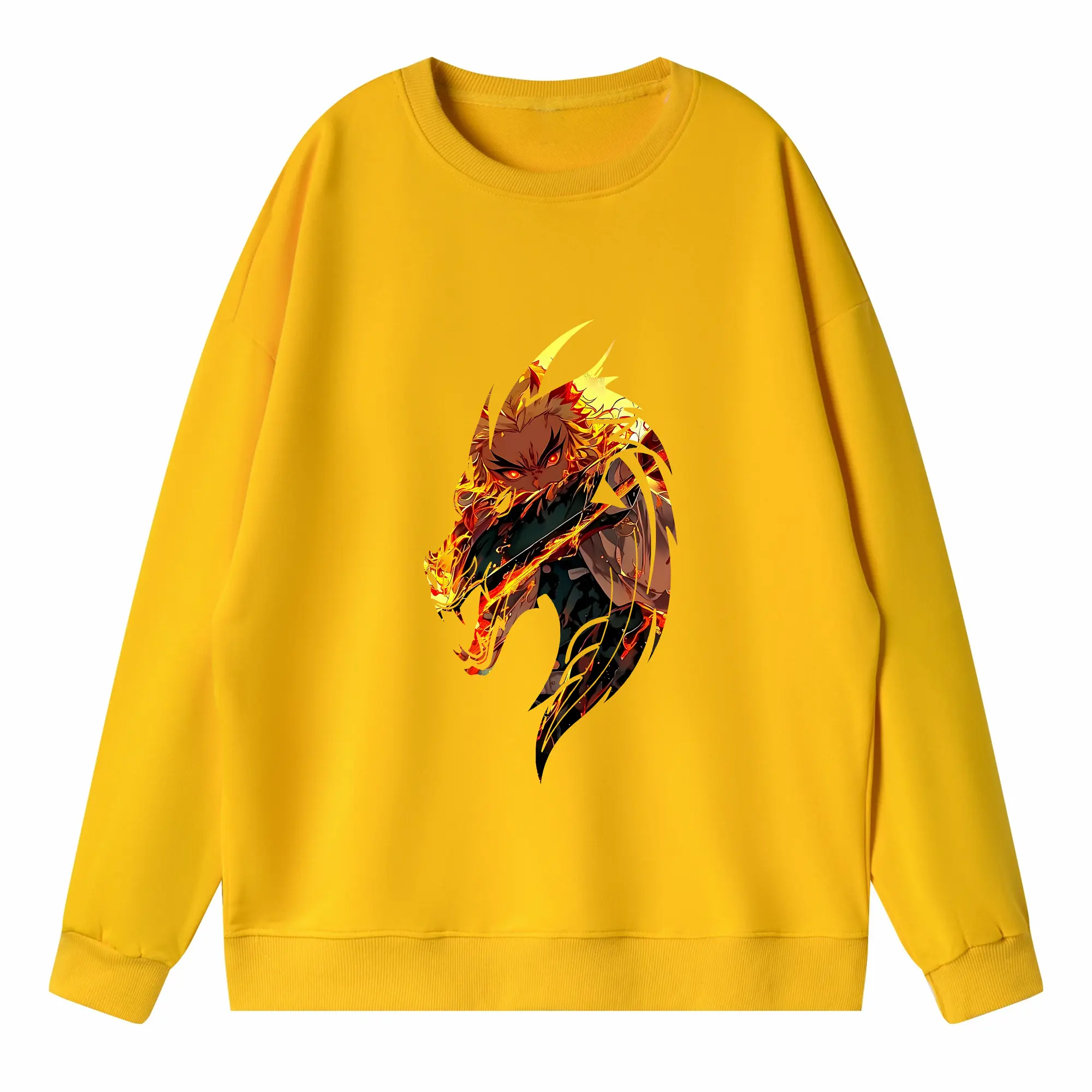 鬼滅の刃 グッズ,煉獄 杏寿郎 - 高品質 クルーネック スウェット ・ コットン59% ポリエステル41% ・ ユニセックス 長袖 トレーナー ・ カジュアル デイリー スポーツ 散歩用
