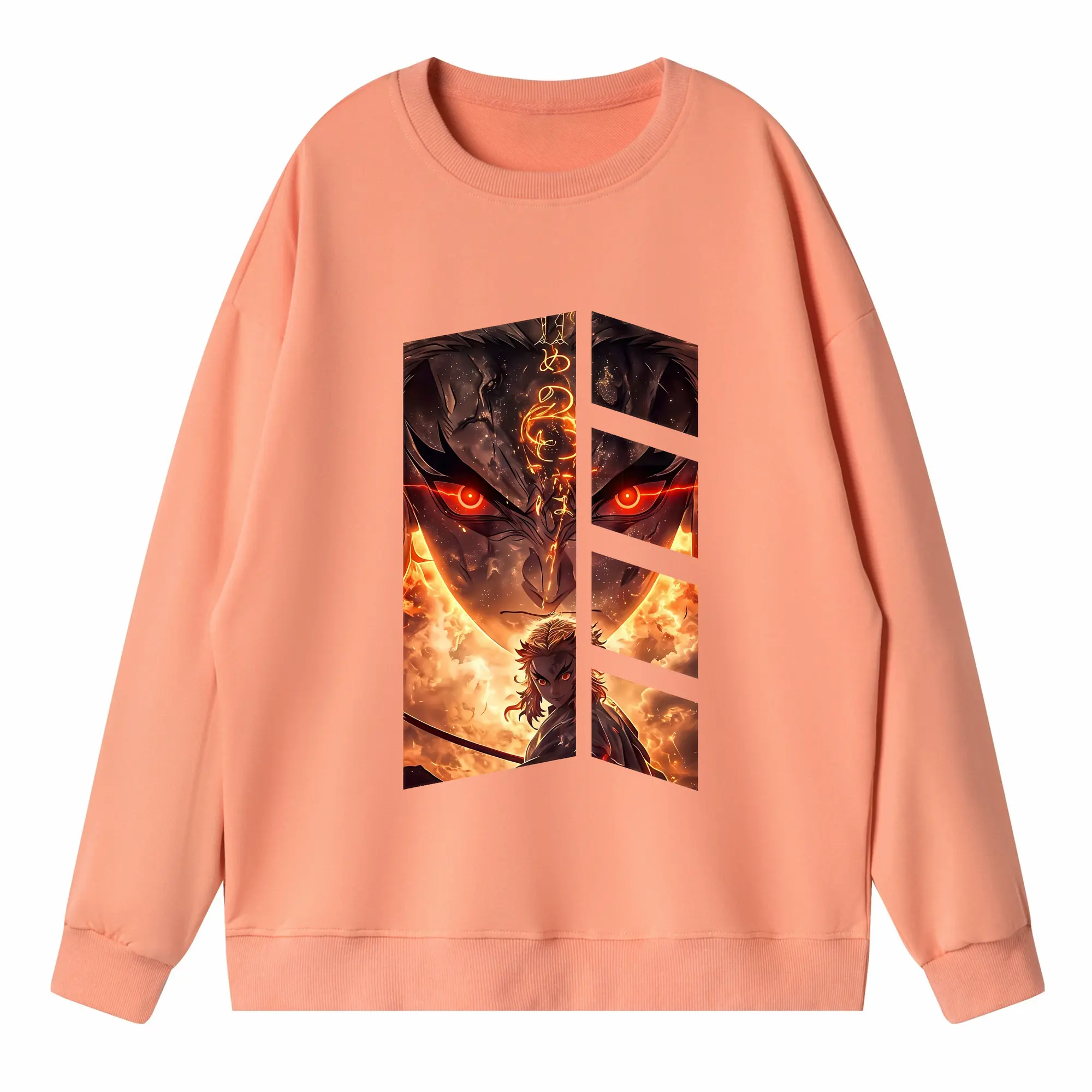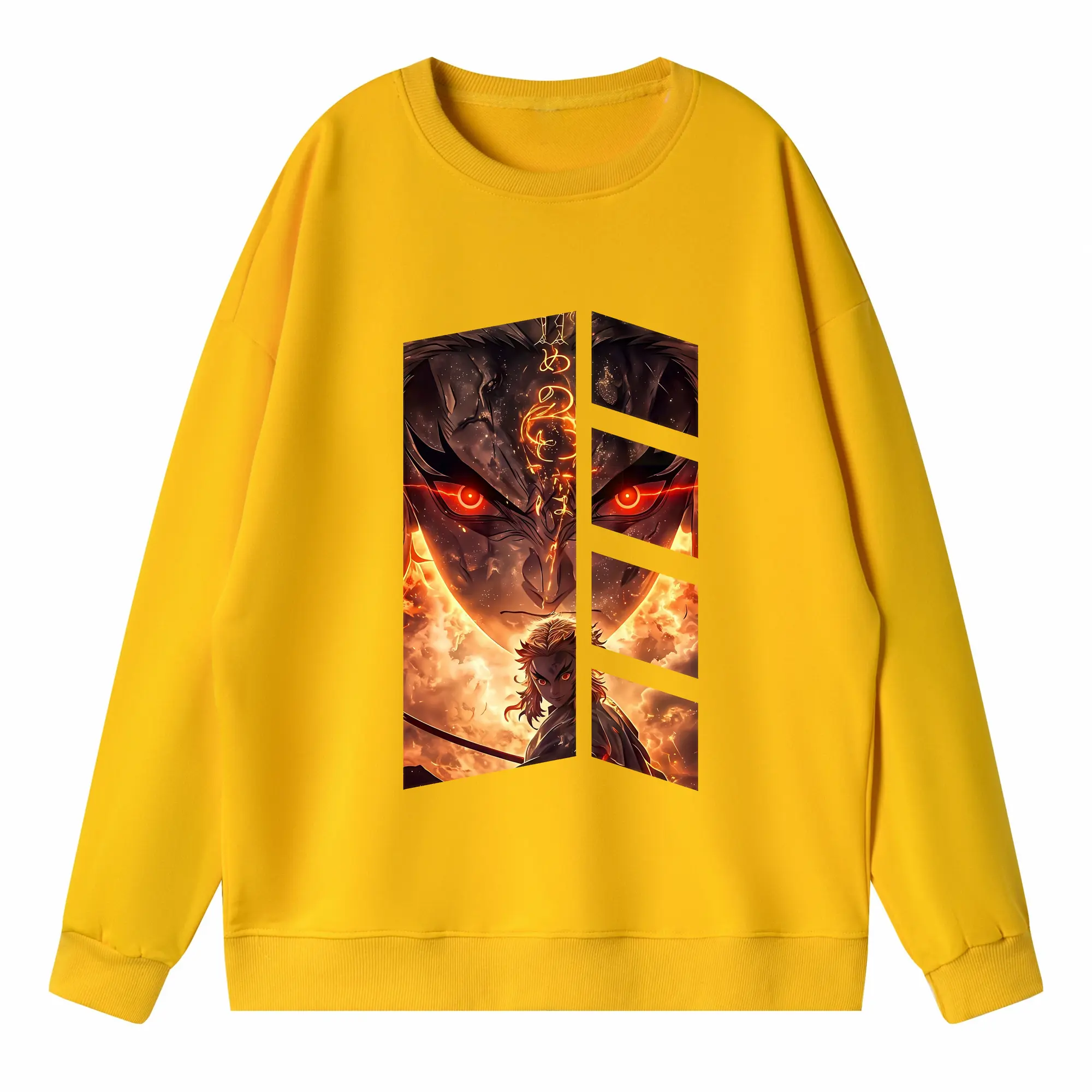 鬼滅の刃 グッズ,煉獄 杏寿郎 - 高品質 クルーネック スウェット ・ コットン59% ポリエステル41% ・ ユニセックス 長袖 トレーナー ・ カジュアル デイリー スポーツ 散歩用