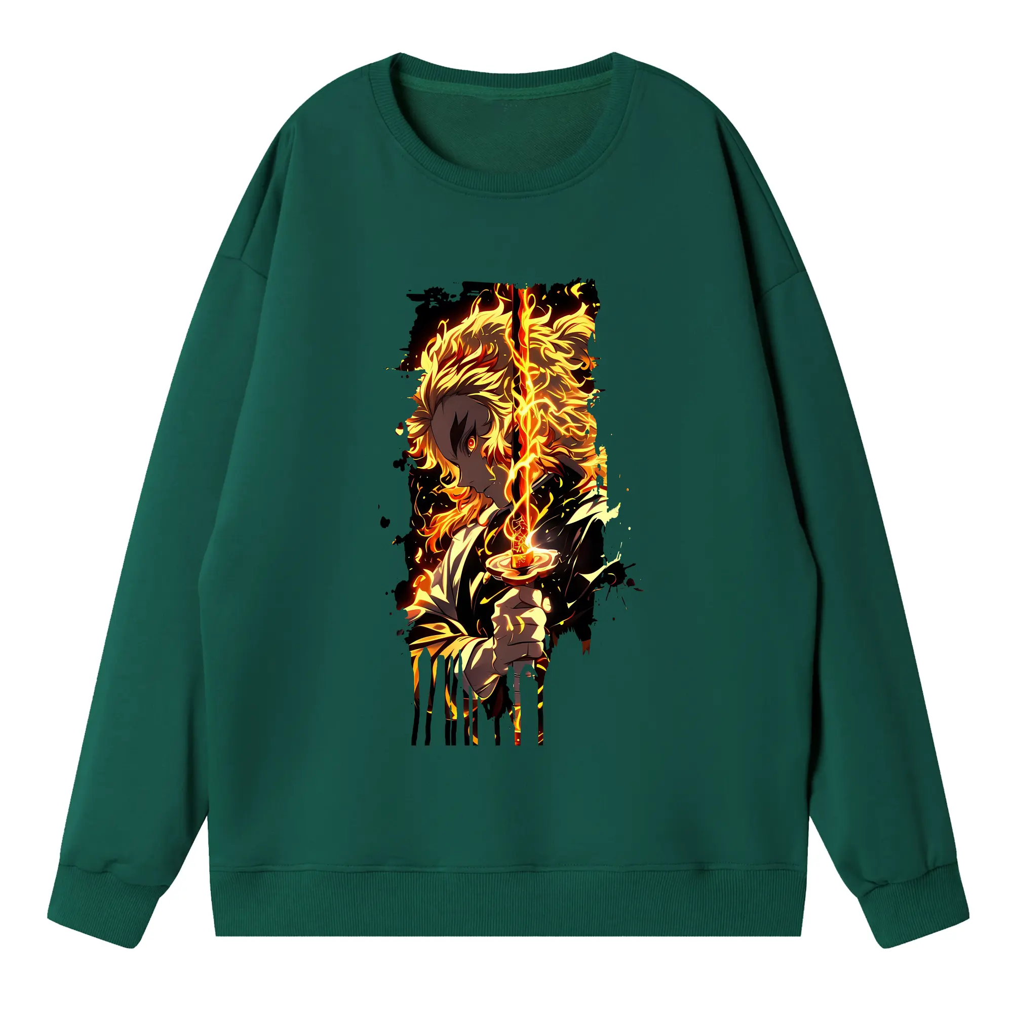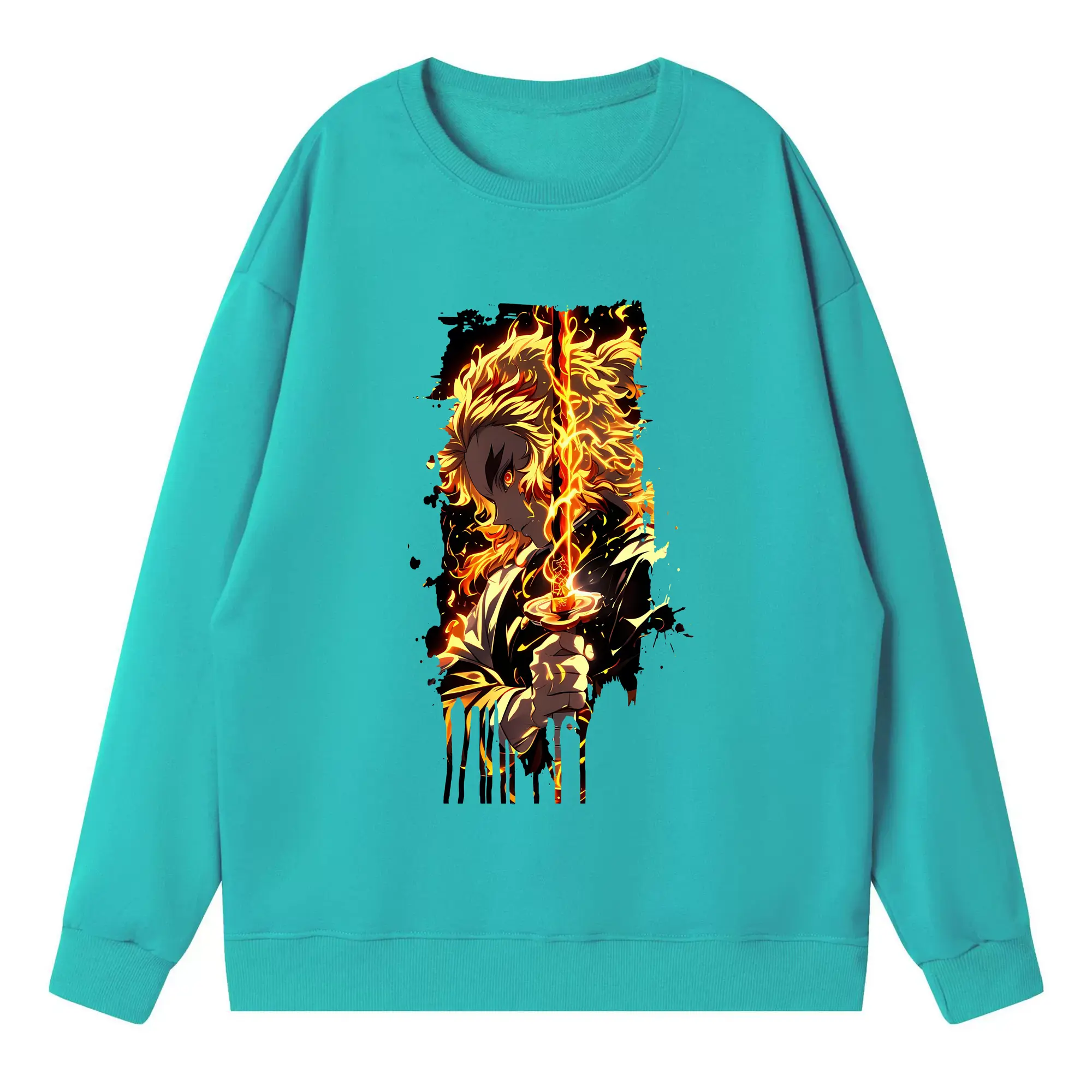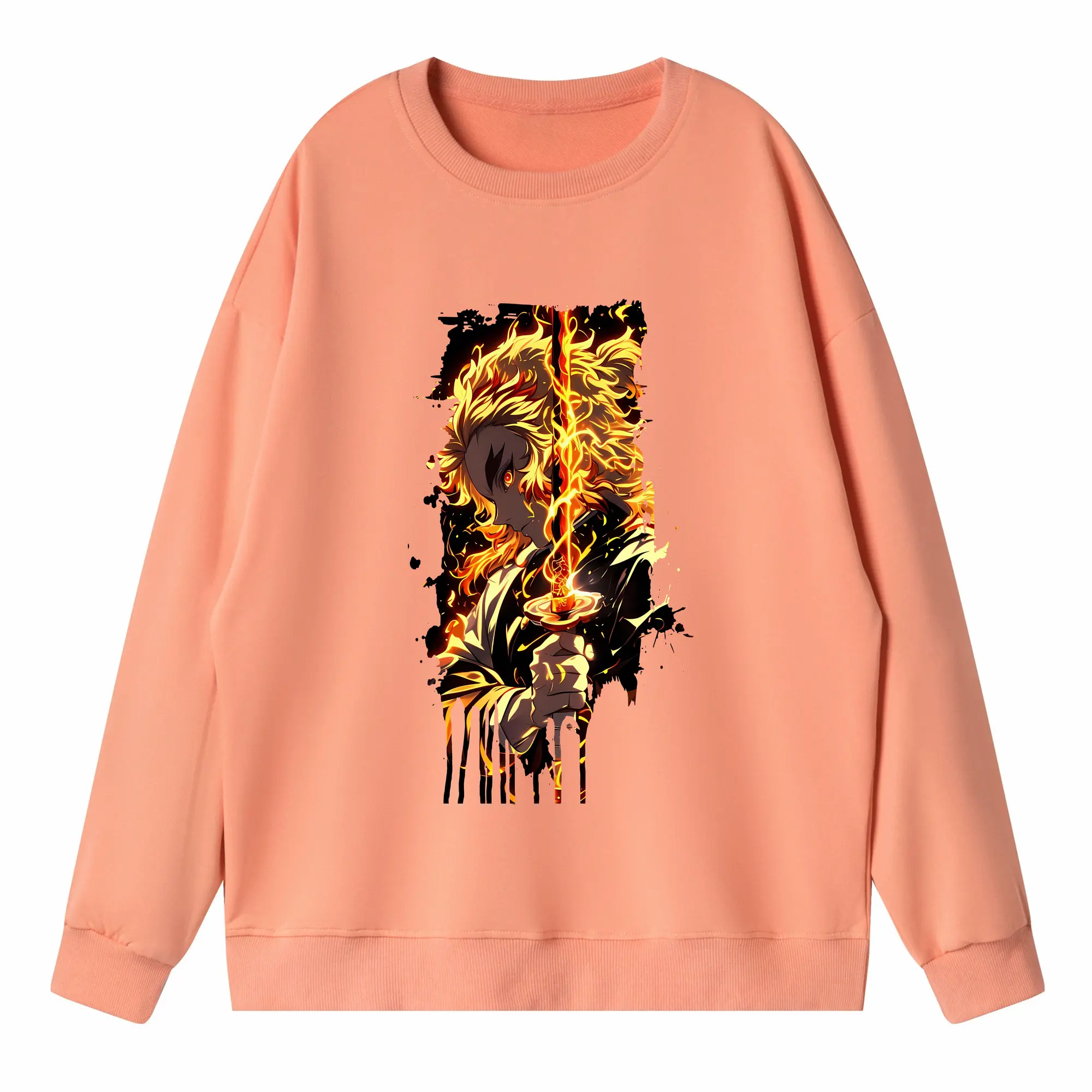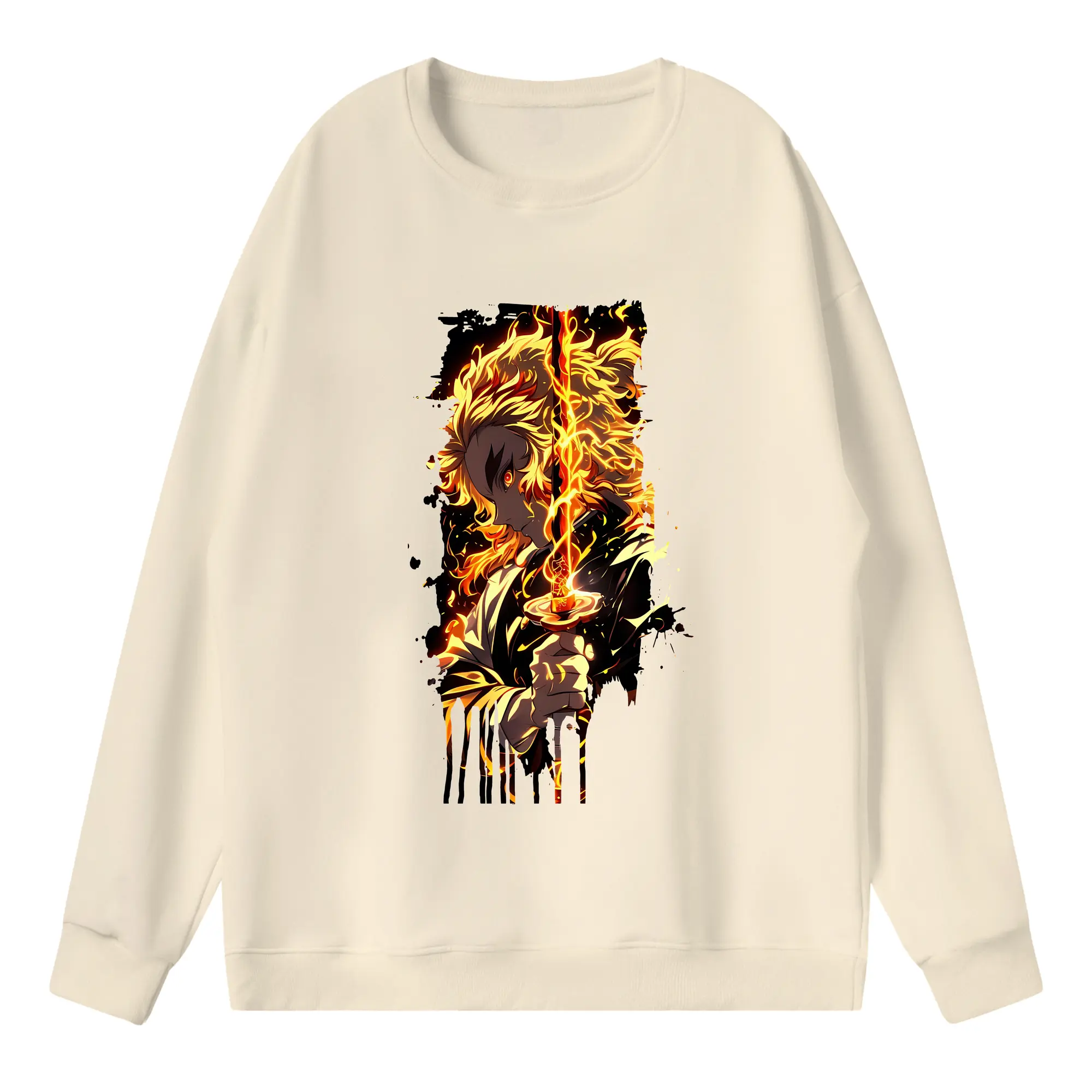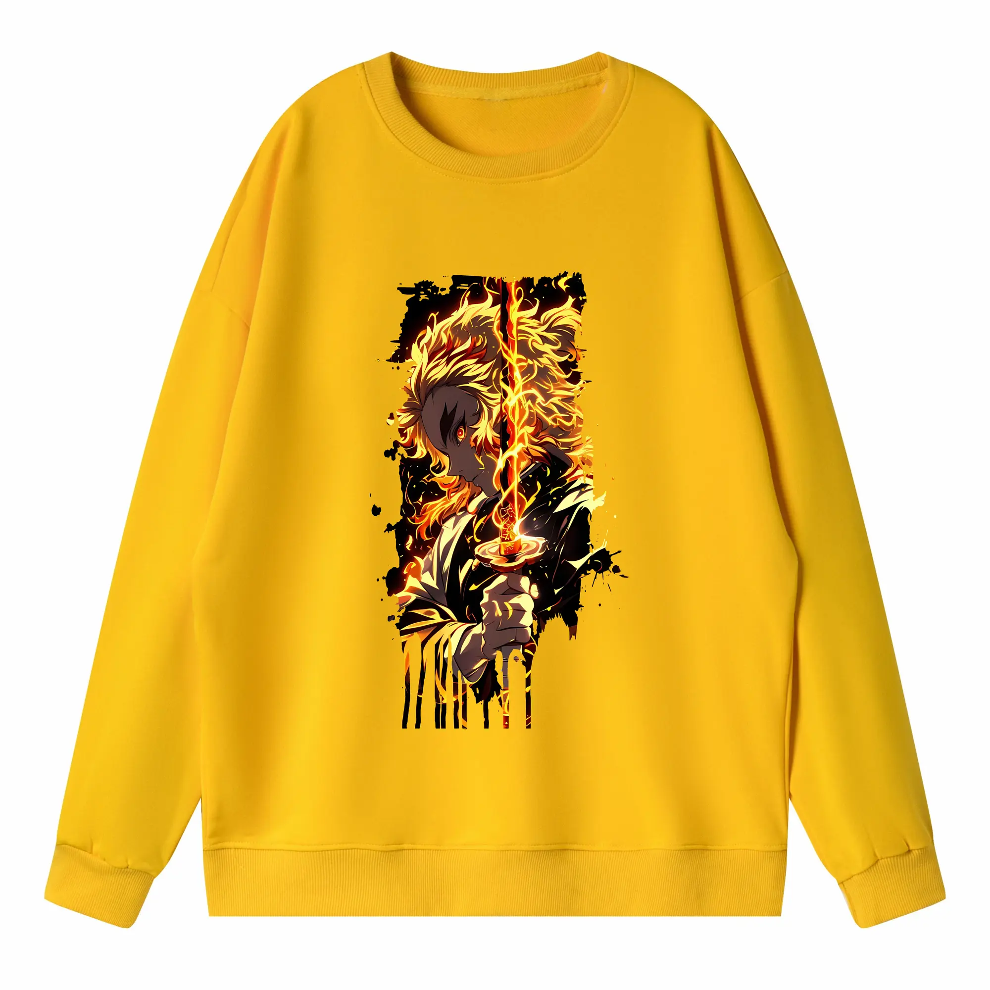 鬼滅の刃 グッズ,煉獄 杏寿郎 - 高品質 クルーネック スウェット ・ コットン59% ポリエステル41% ・ ユニセックス 長袖 トレーナー ・ カジュアル デイリー スポーツ 散歩用