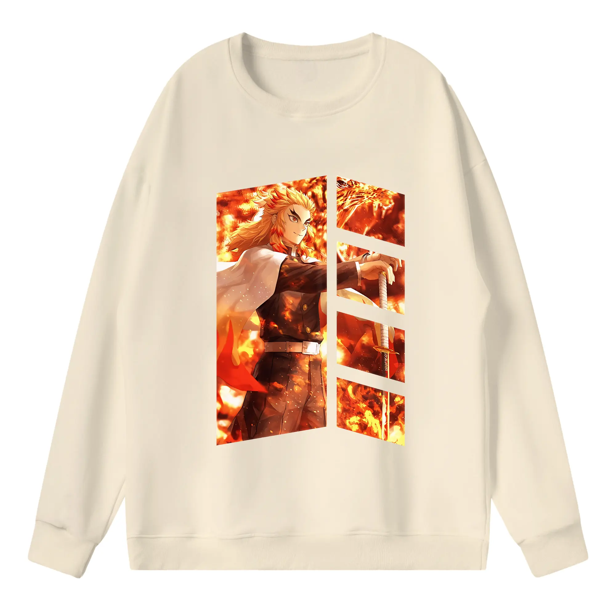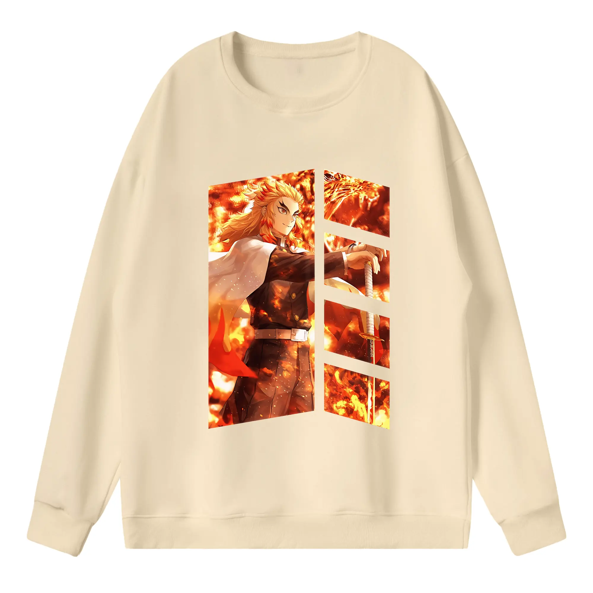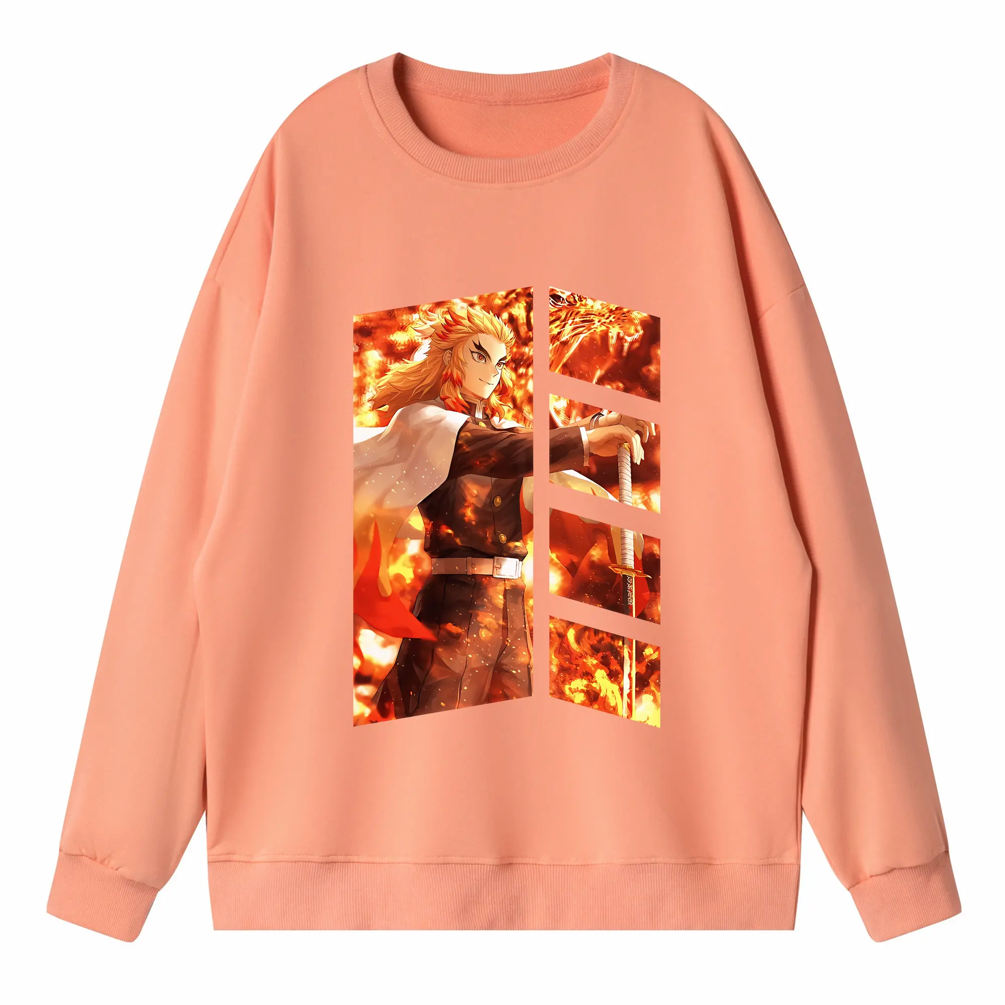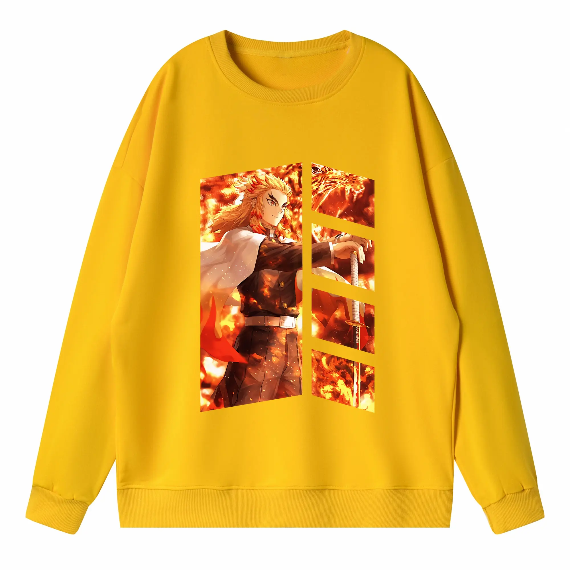 鬼滅の刃 グッズ,煉獄 杏寿郎 - 高品質 クルーネック スウェット ・ コットン59% ポリエステル41% ・ ユニセックス 長袖 トレーナー ・ カジュアル デイリー スポーツ 散歩用