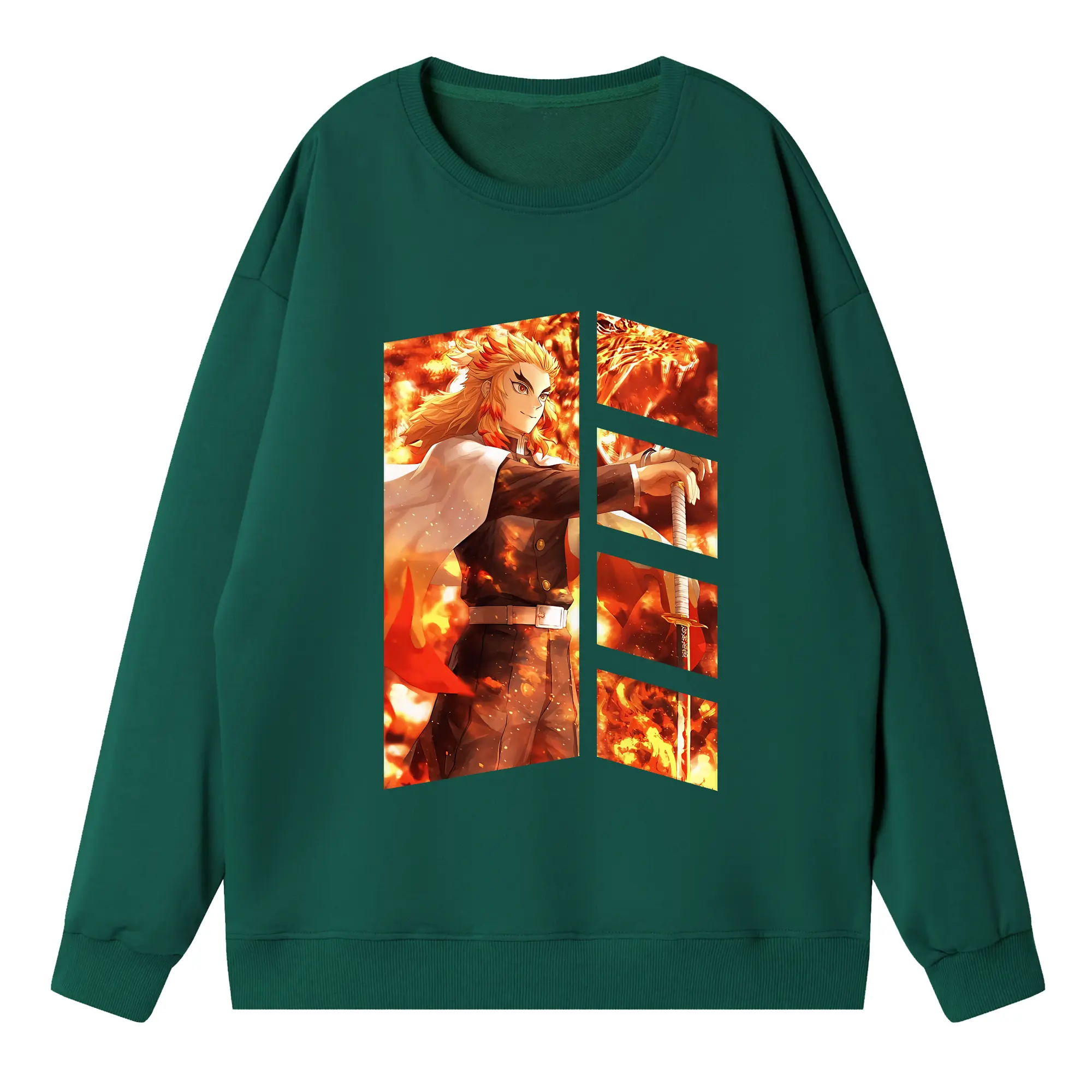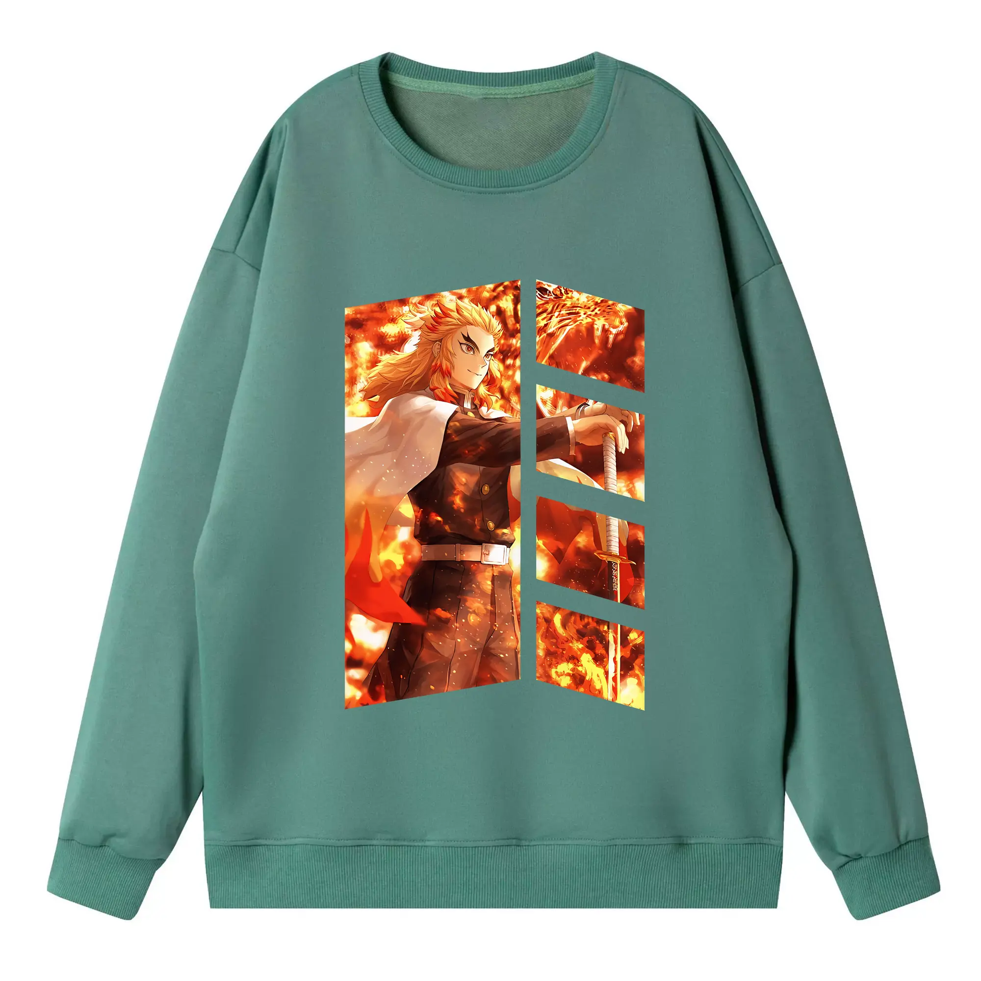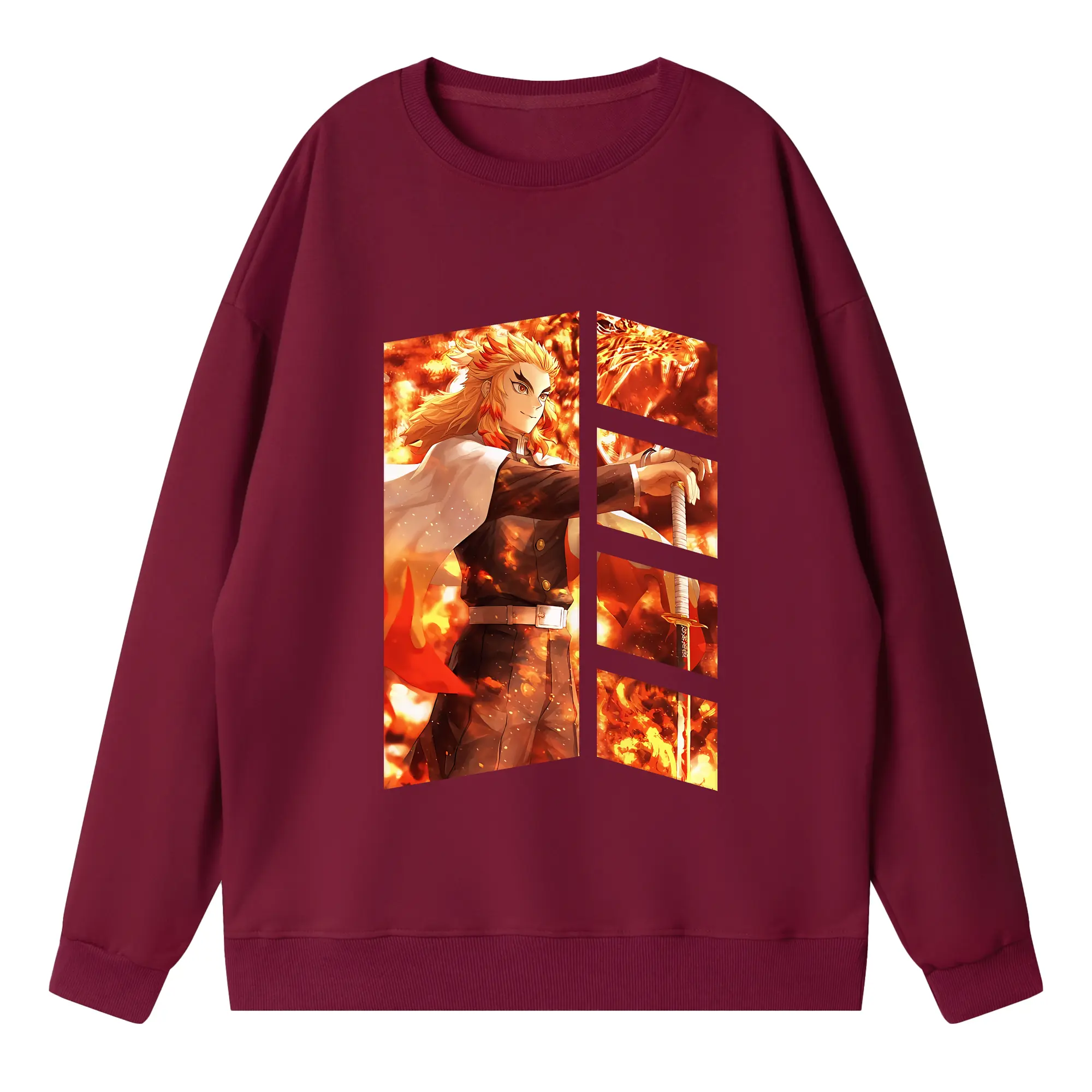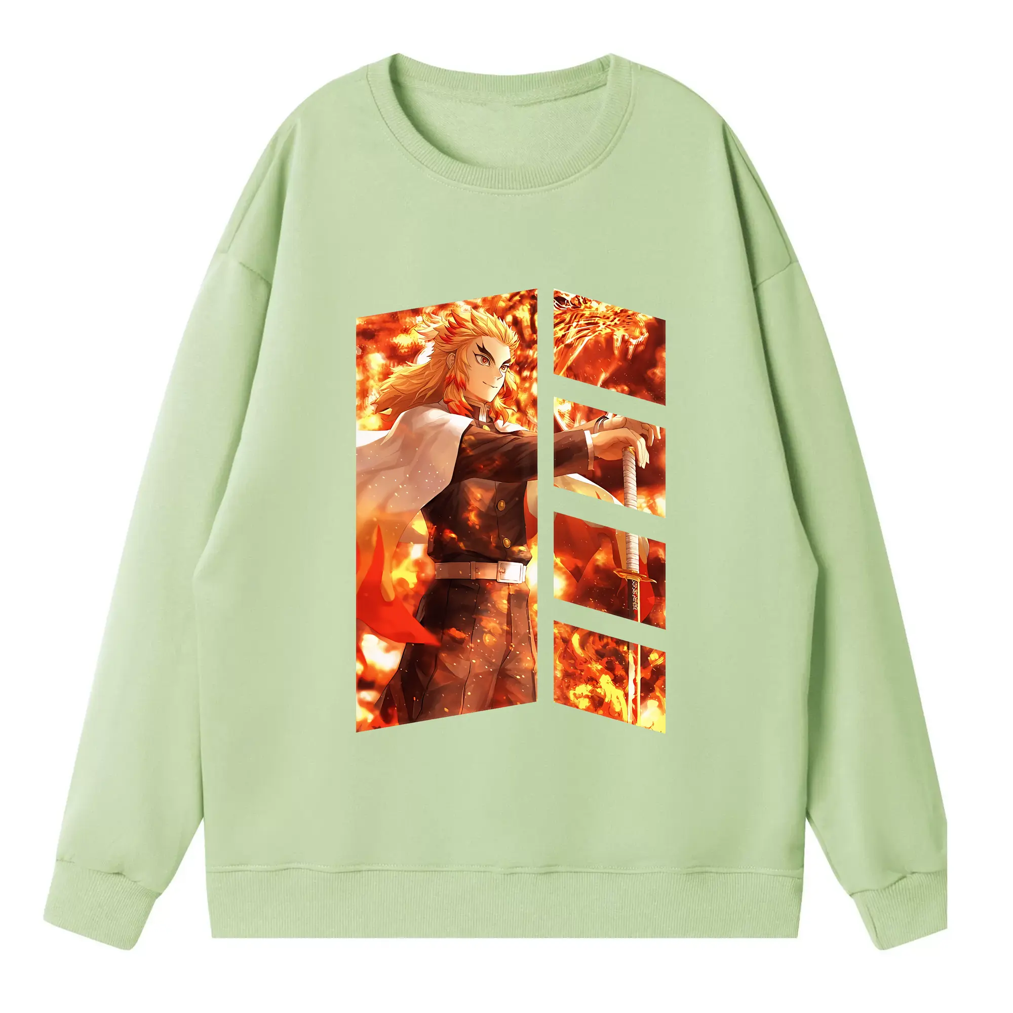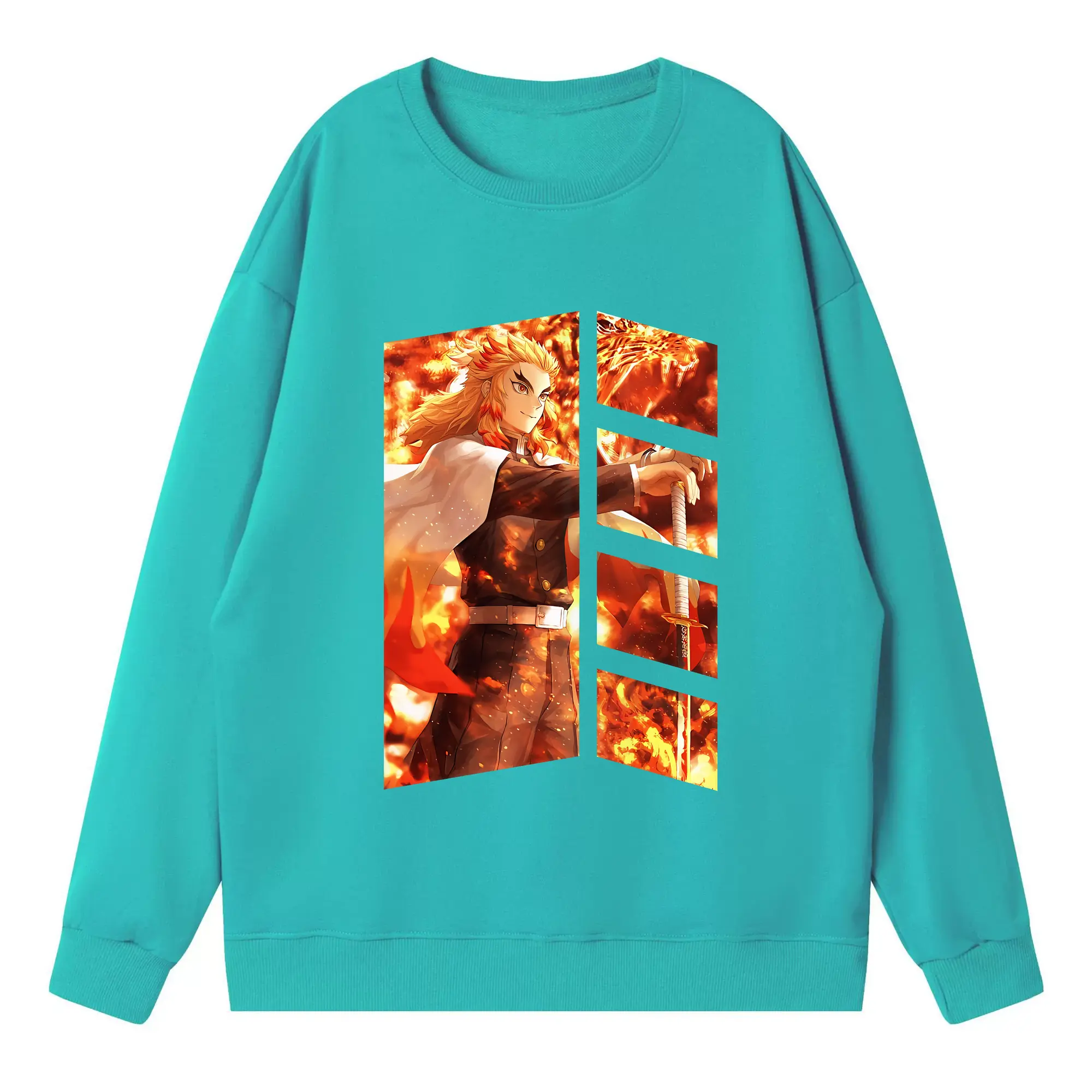 鬼滅の刃 グッズ,煉獄 杏寿郎 - 高品質 クルーネック スウェット ・ コットン59% ポリエステル41% ・ ユニセックス 長袖 トレーナー ・ カジュアル デイリー スポーツ 散歩用