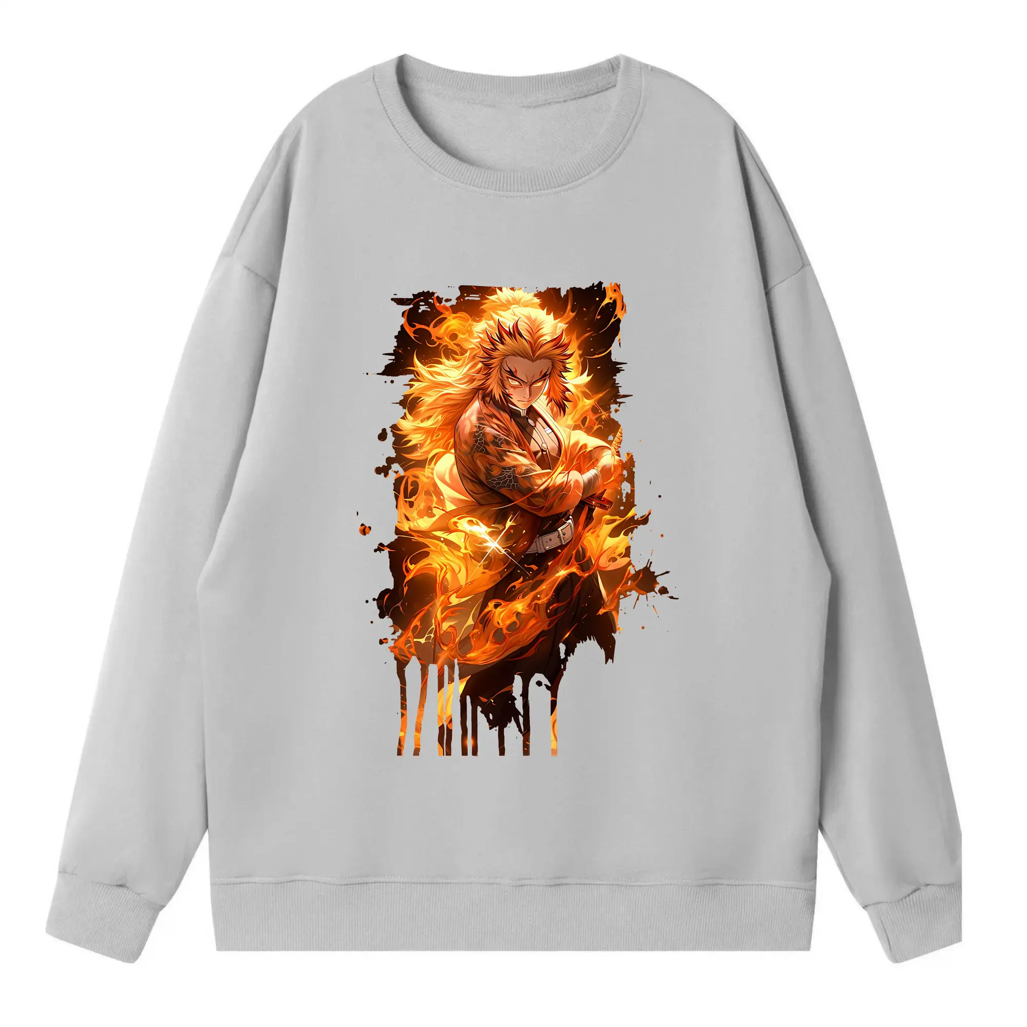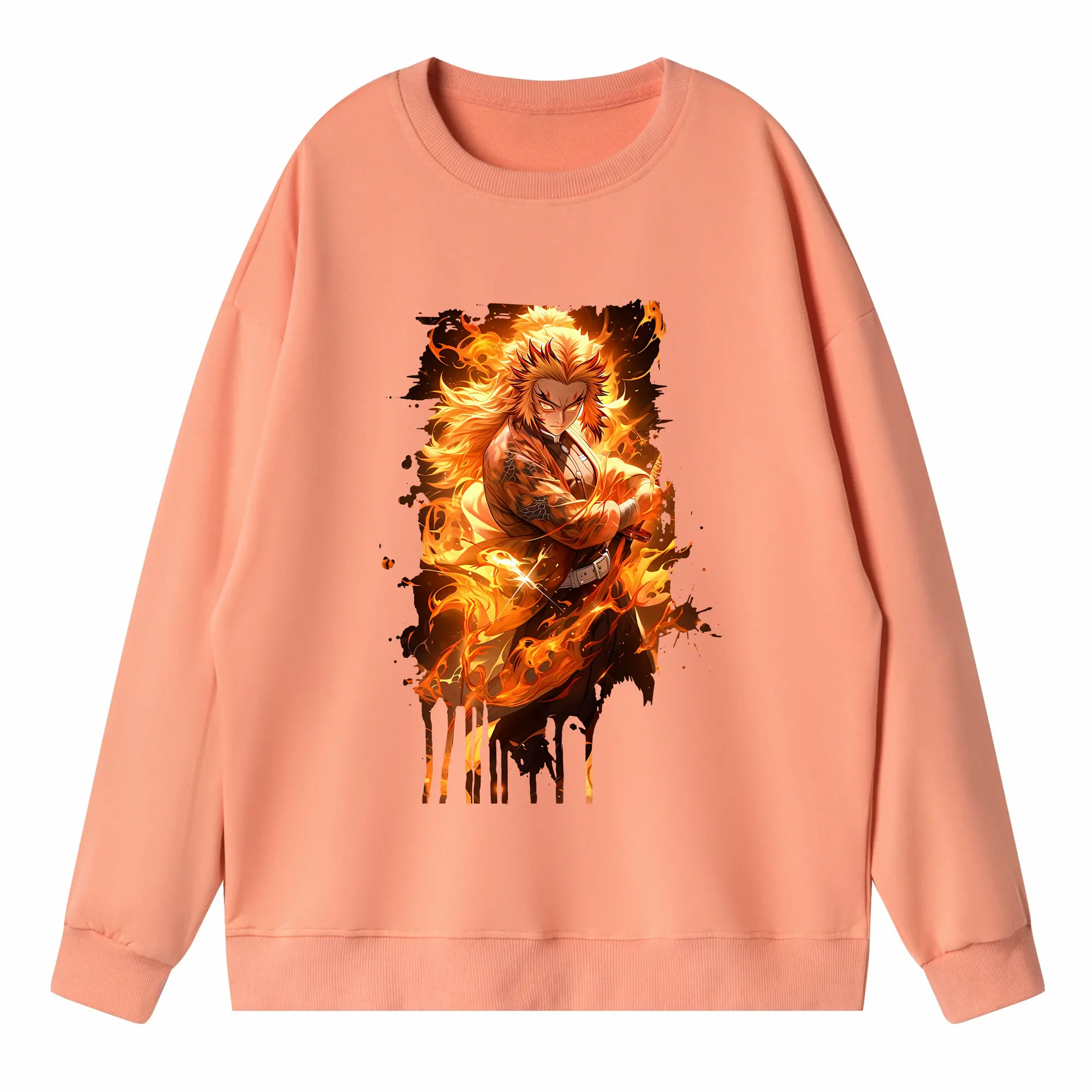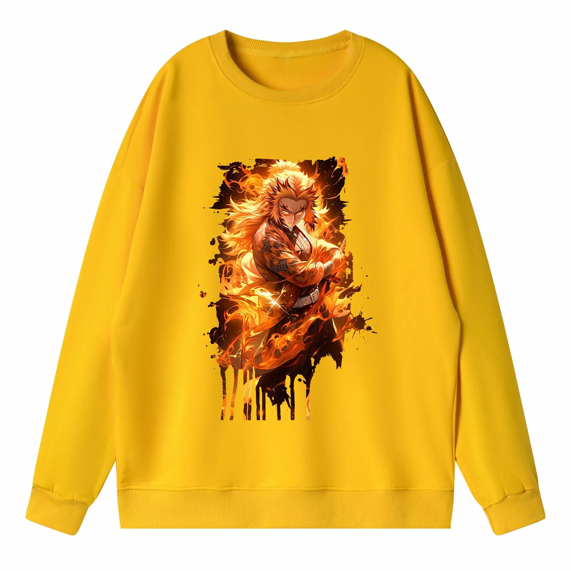 鬼滅の刃 グッズ,煉獄 杏寿郎 - 高品質 クルーネック スウェット ・ コットン59% ポリエステル41% ・ ユニセックス 長袖 トレーナー ・ カジュアル デイリー スポーツ 散歩用