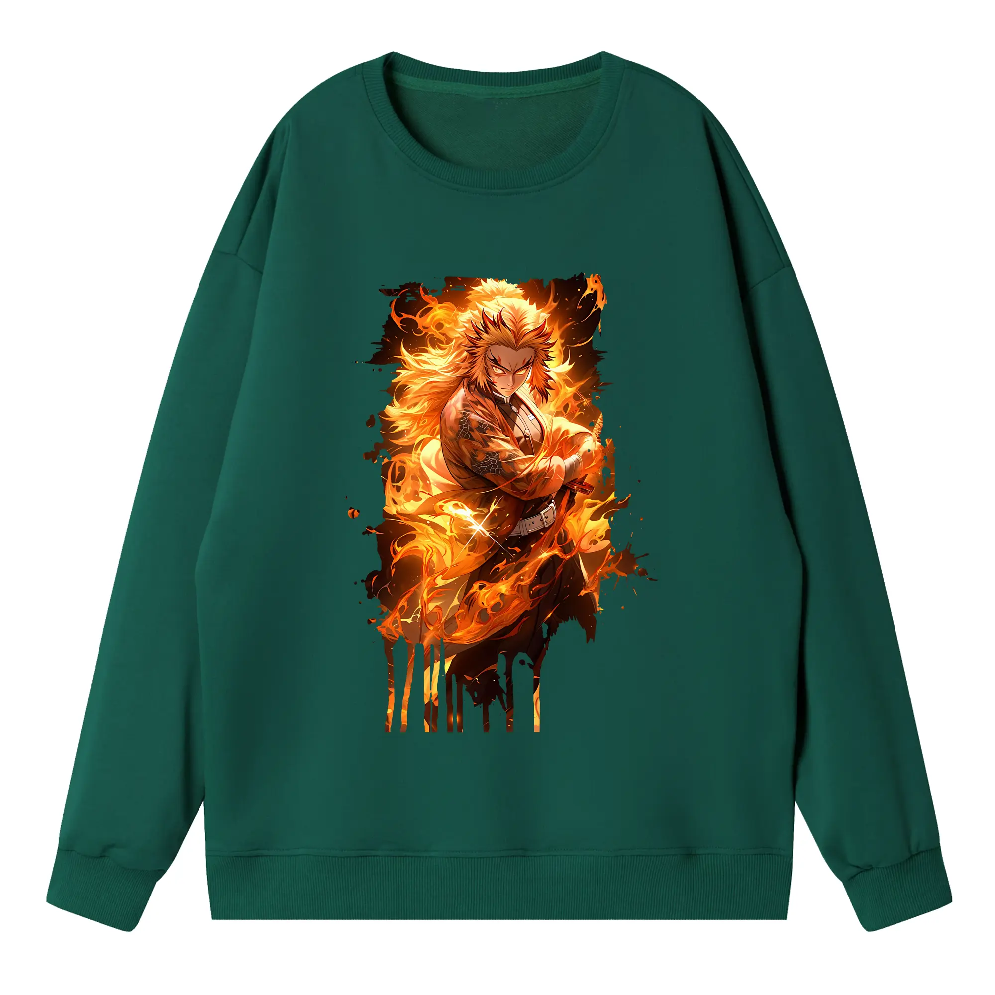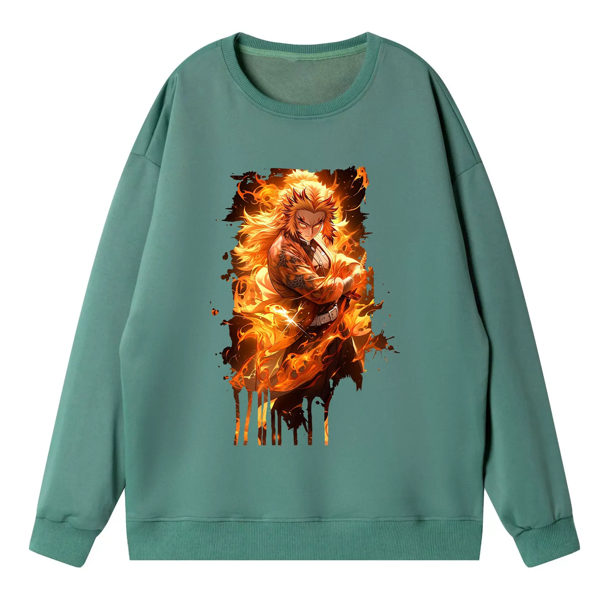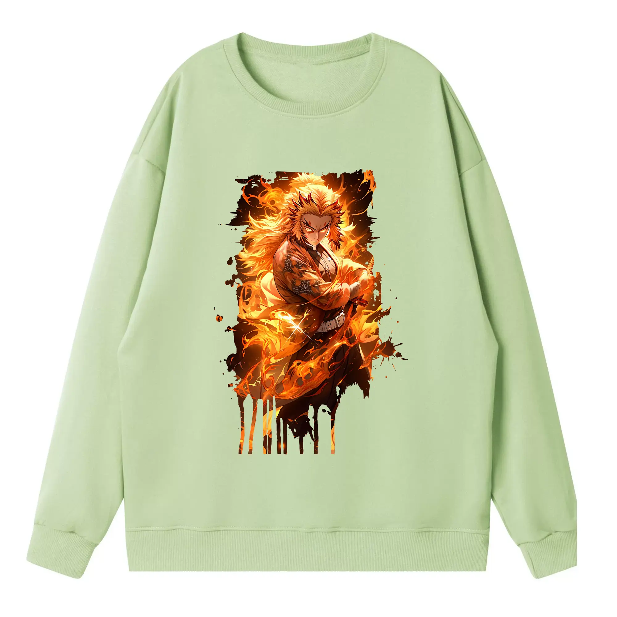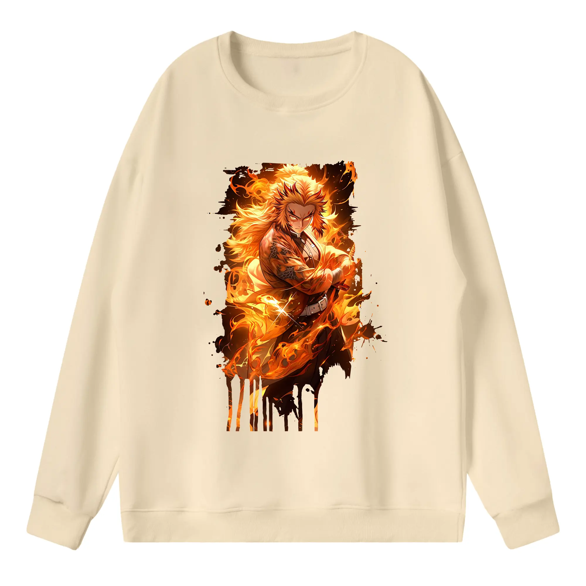 鬼滅の刃 グッズ,煉獄 杏寿郎 - 高品質 クルーネック スウェット ・ コットン59% ポリエステル41% ・ ユニセックス 長袖 トレーナー ・ カジュアル デイリー スポーツ 散歩用